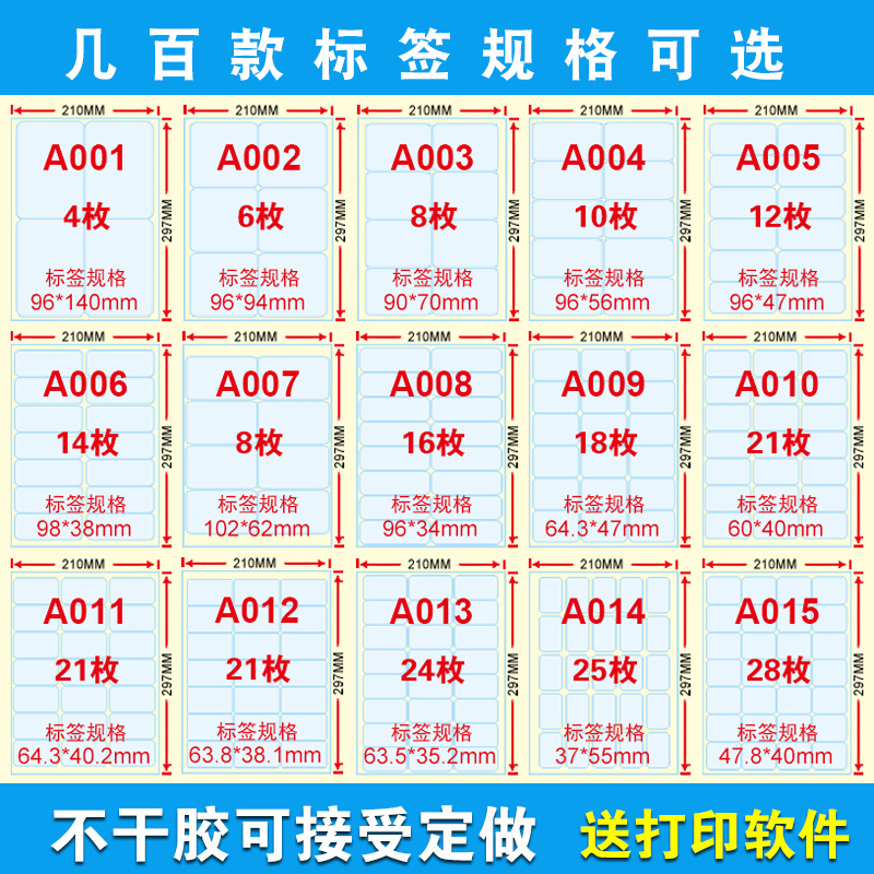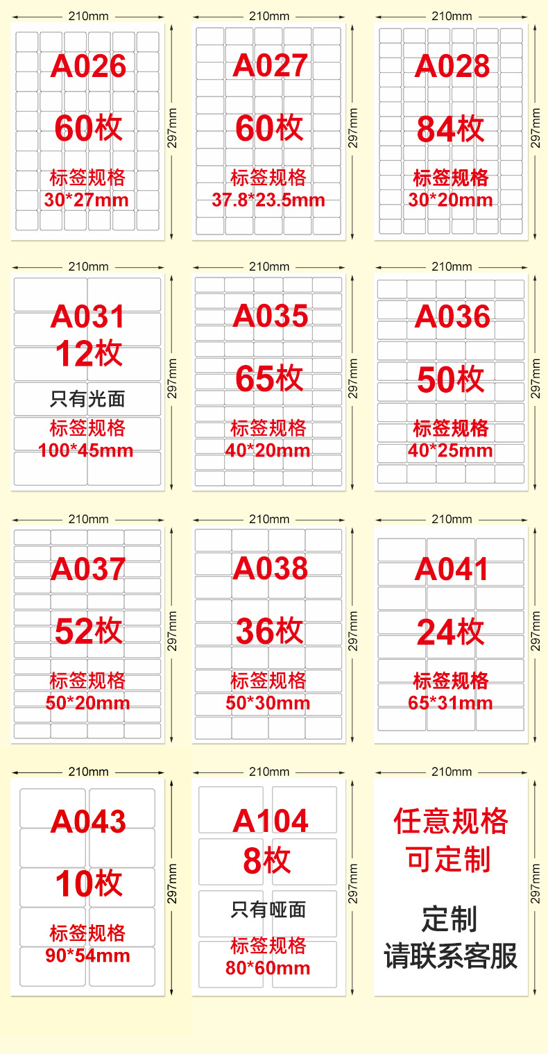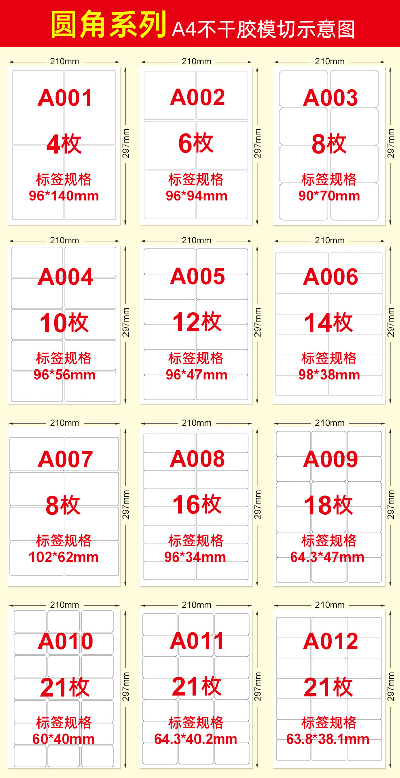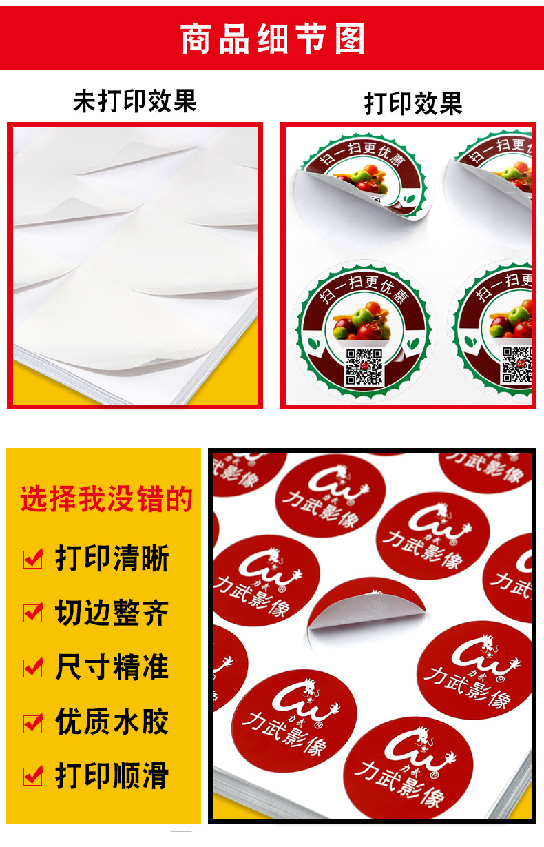 适用范围 A4 不干胶打印
