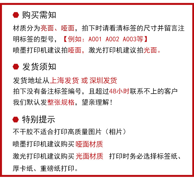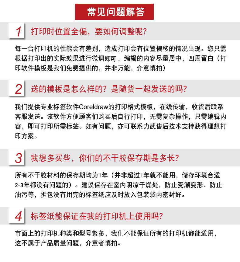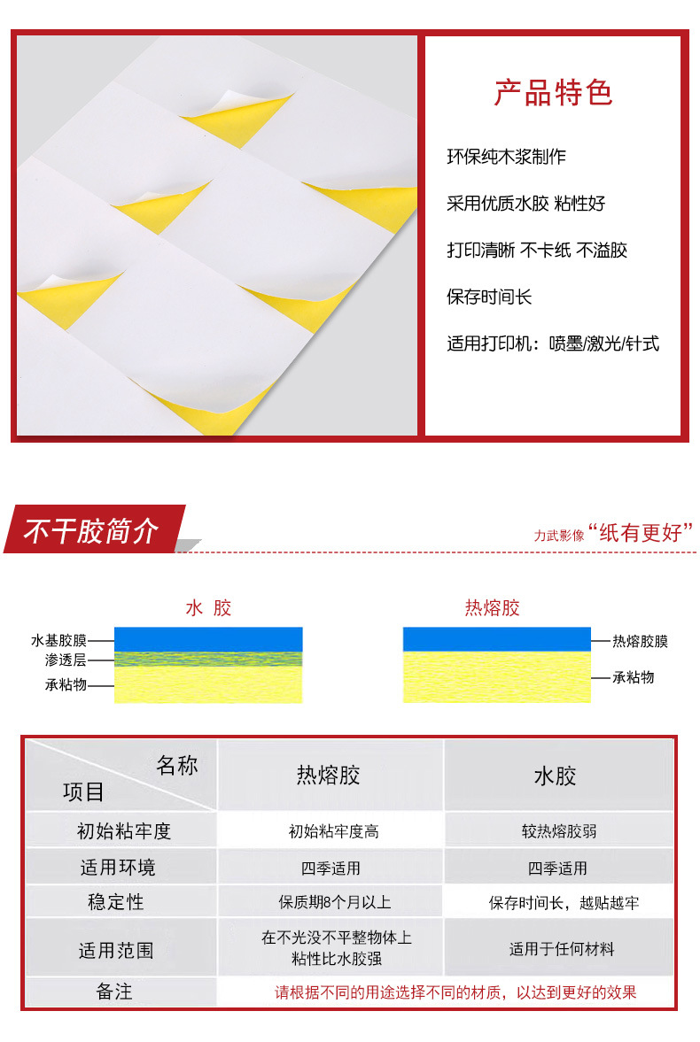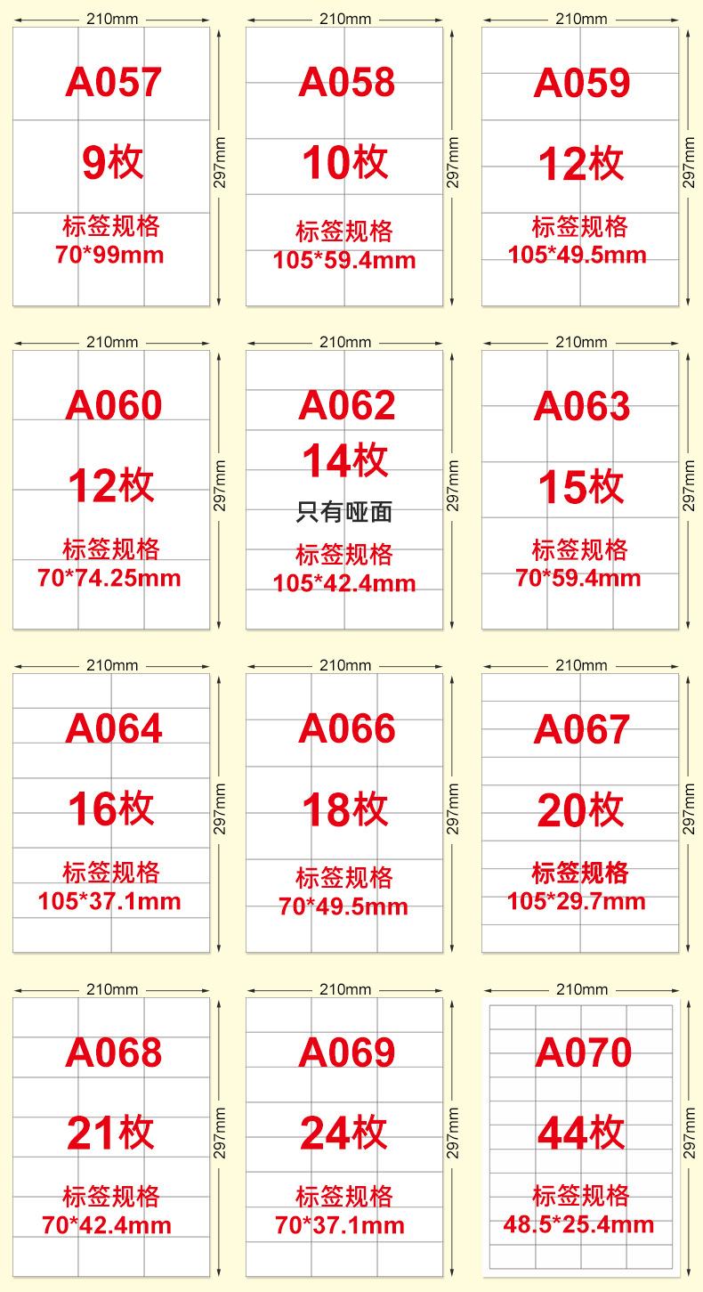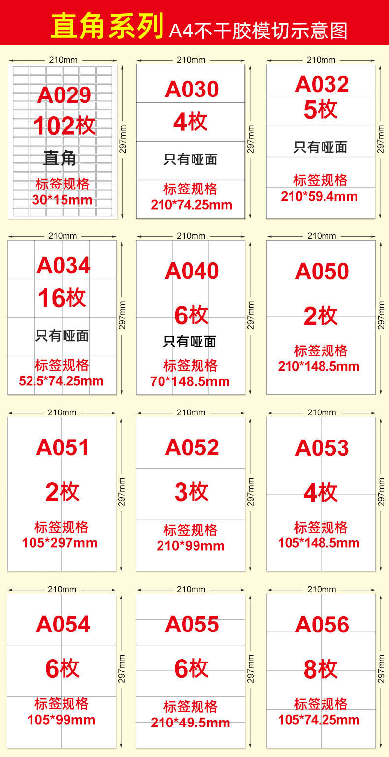适用范围 A4 不干胶打印