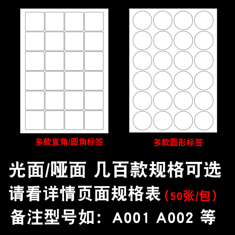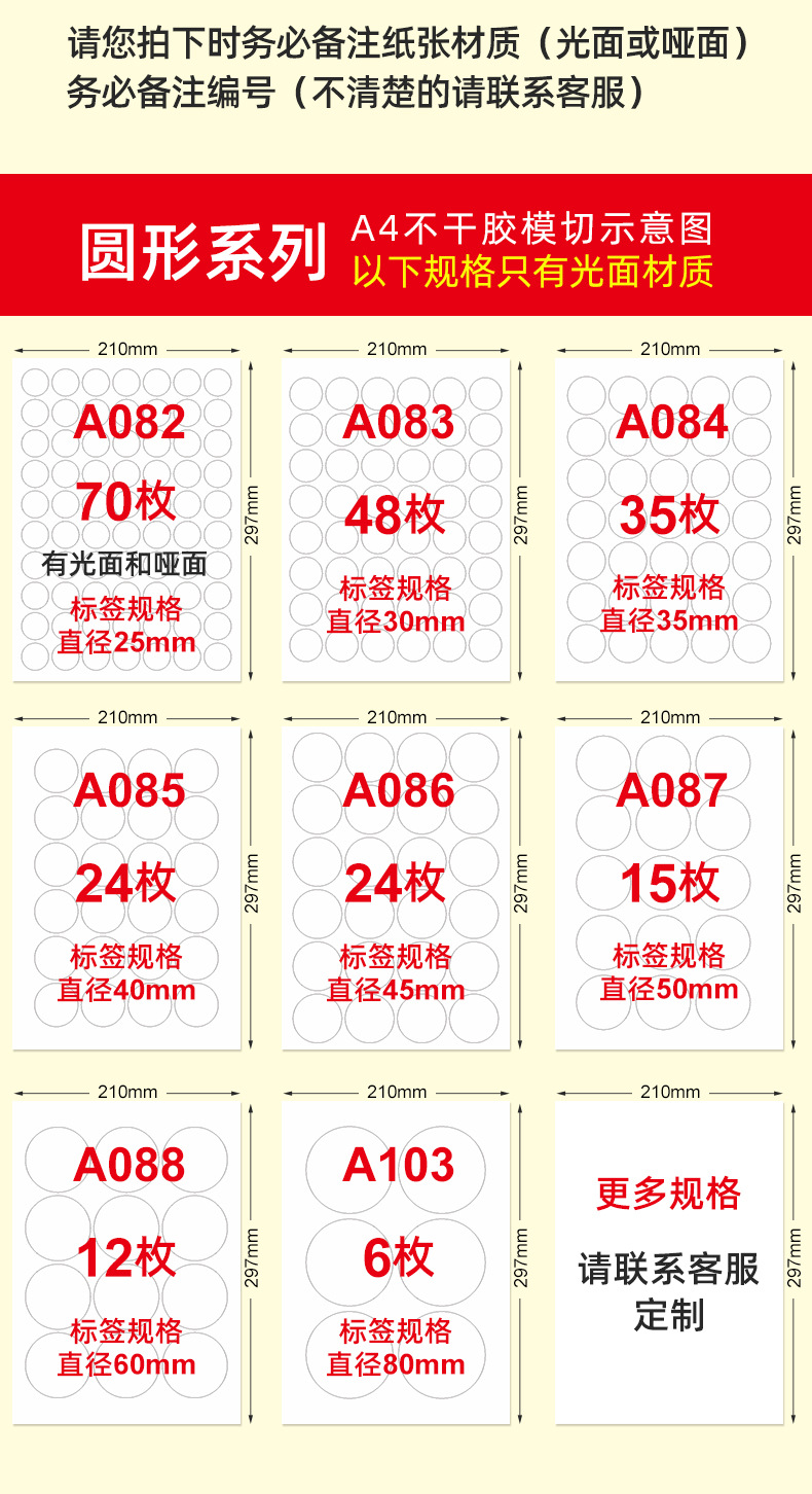 内切割A4不干胶打印纸a4光面哑面圆形空白标签贴纸激光喷墨背胶纸