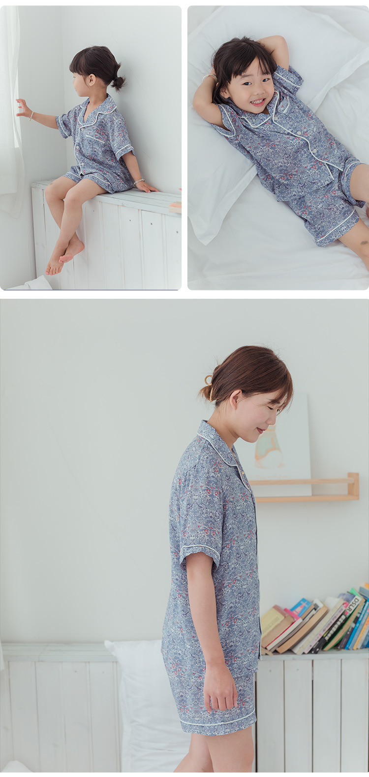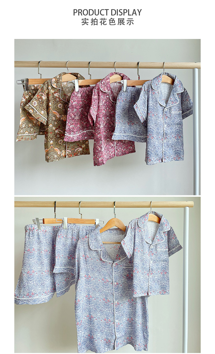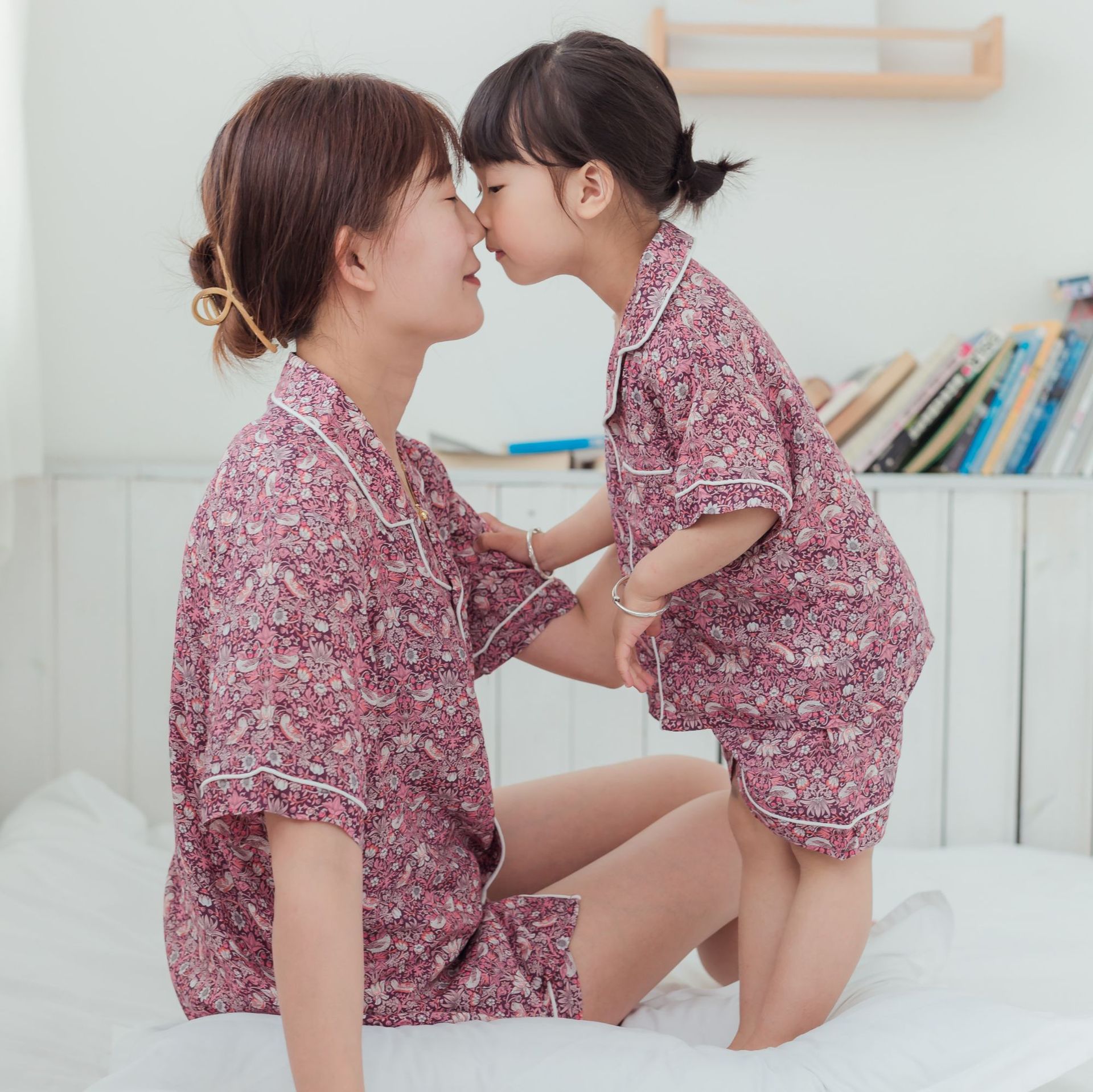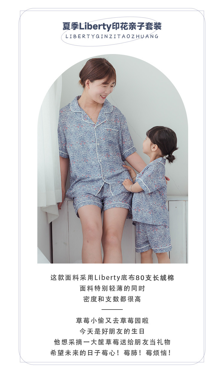 英国Liberty 花型儿童夏季短袖短裤套装全棉亲子装家居服空调睡衣