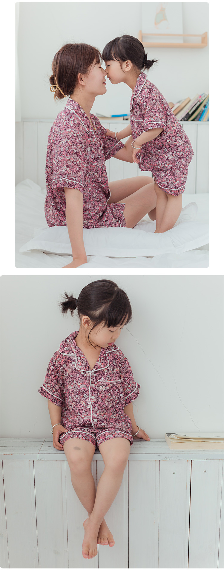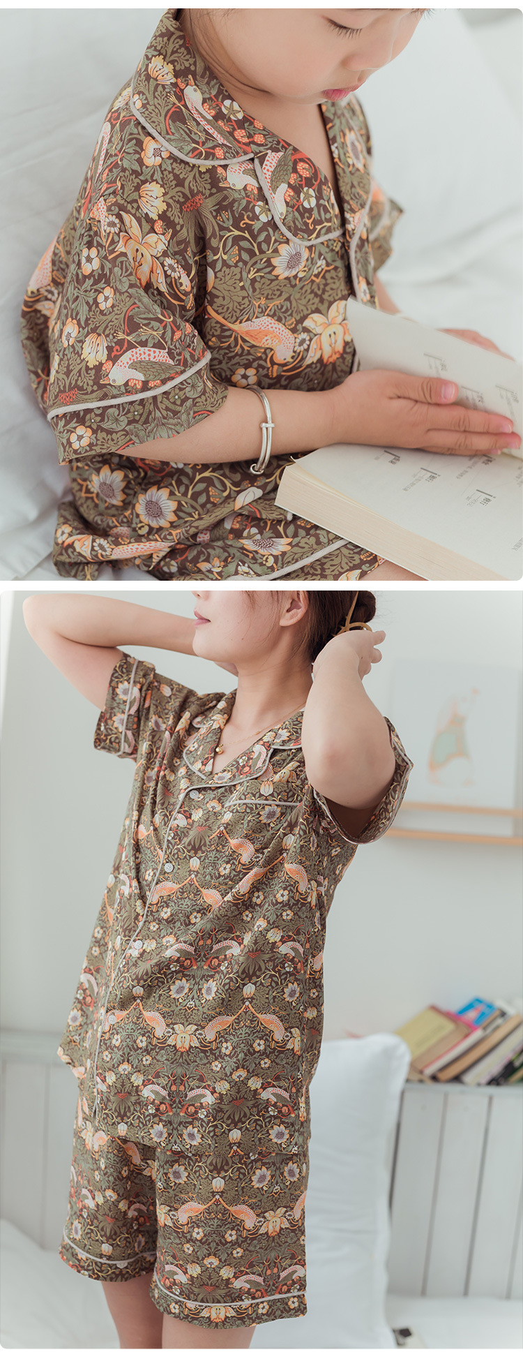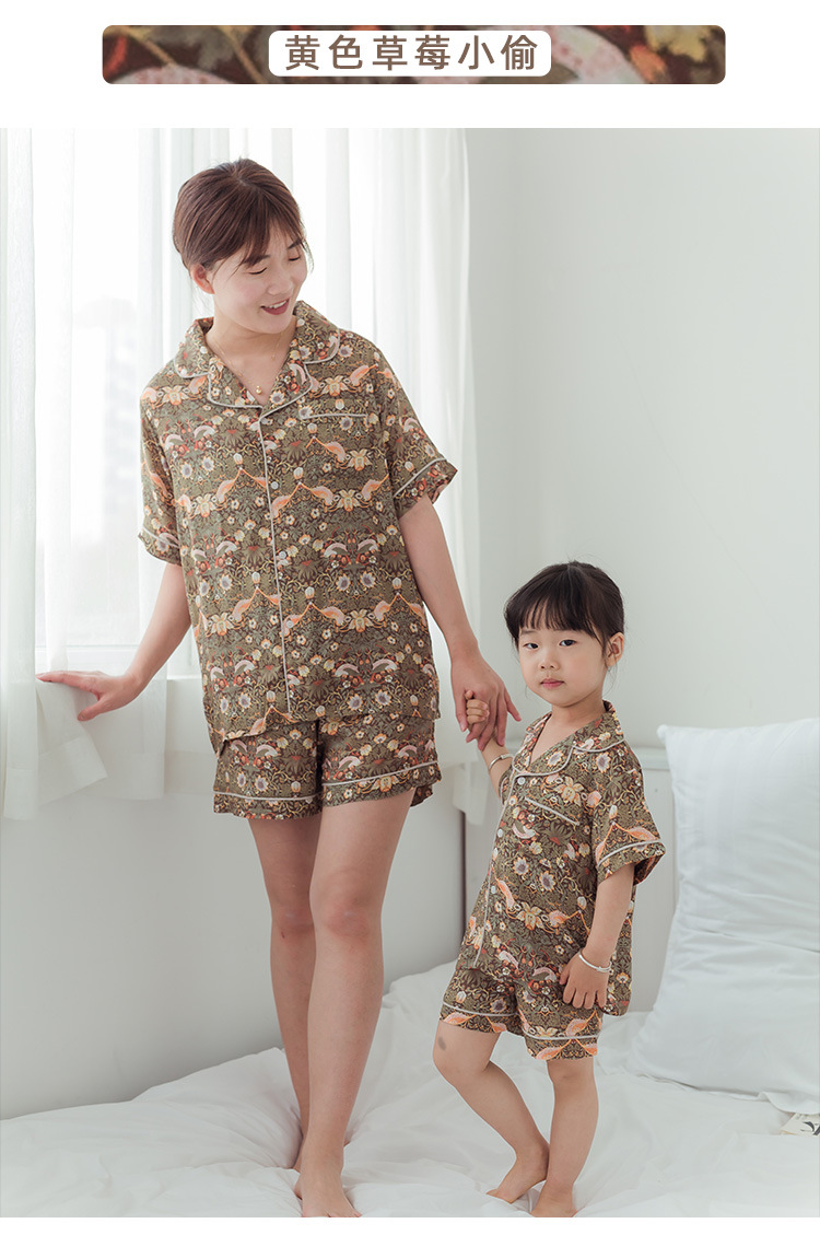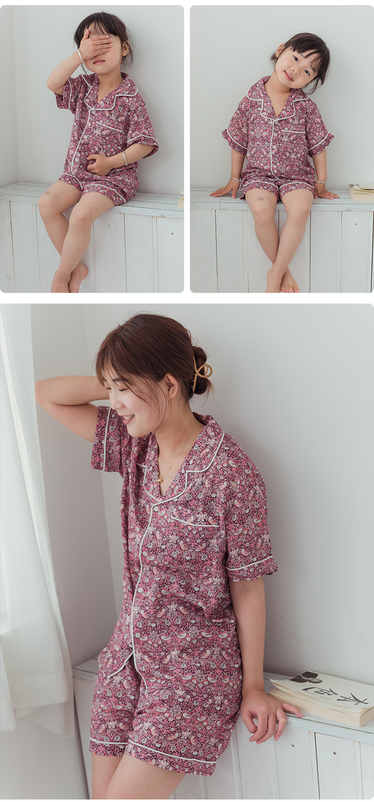 英国Liberty 花型儿童夏季短袖短裤套装全棉亲子装家居服空调睡衣