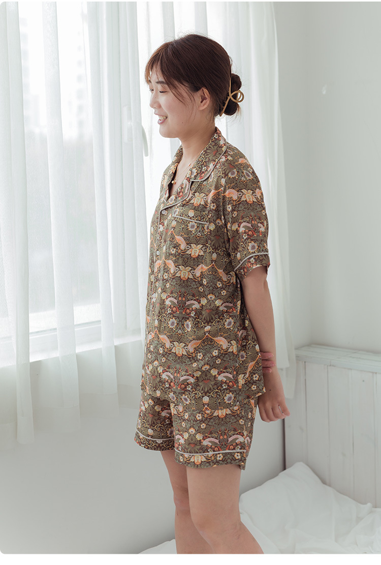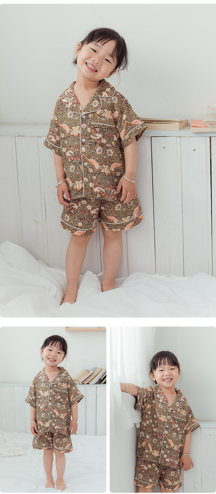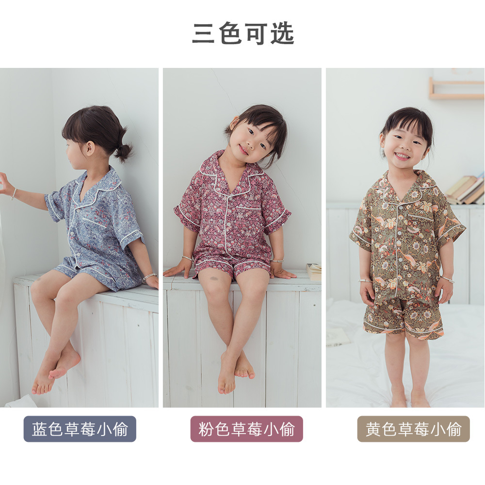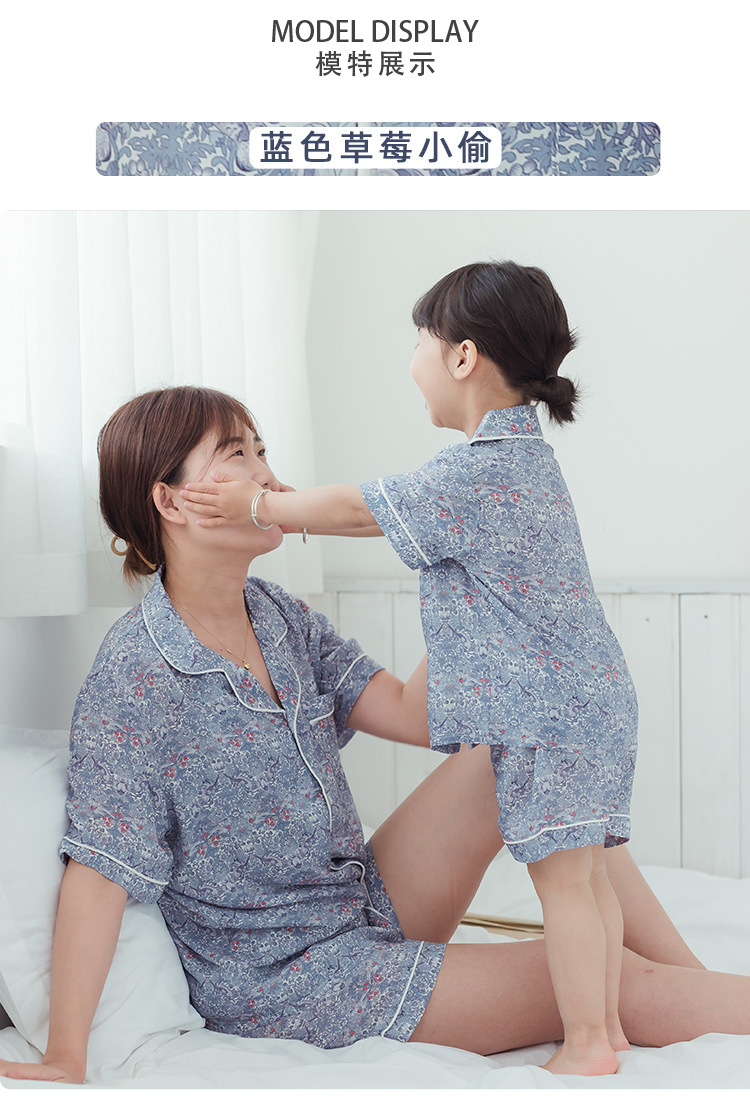 英国Liberty 花型儿童夏季短袖短裤套装全棉亲子装家居服空调睡衣
