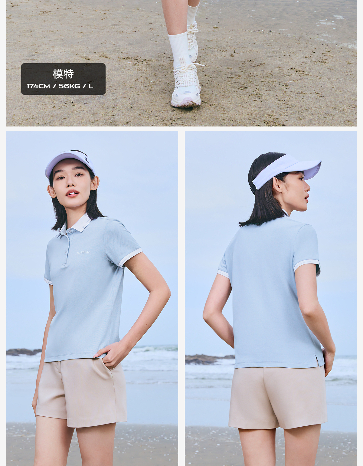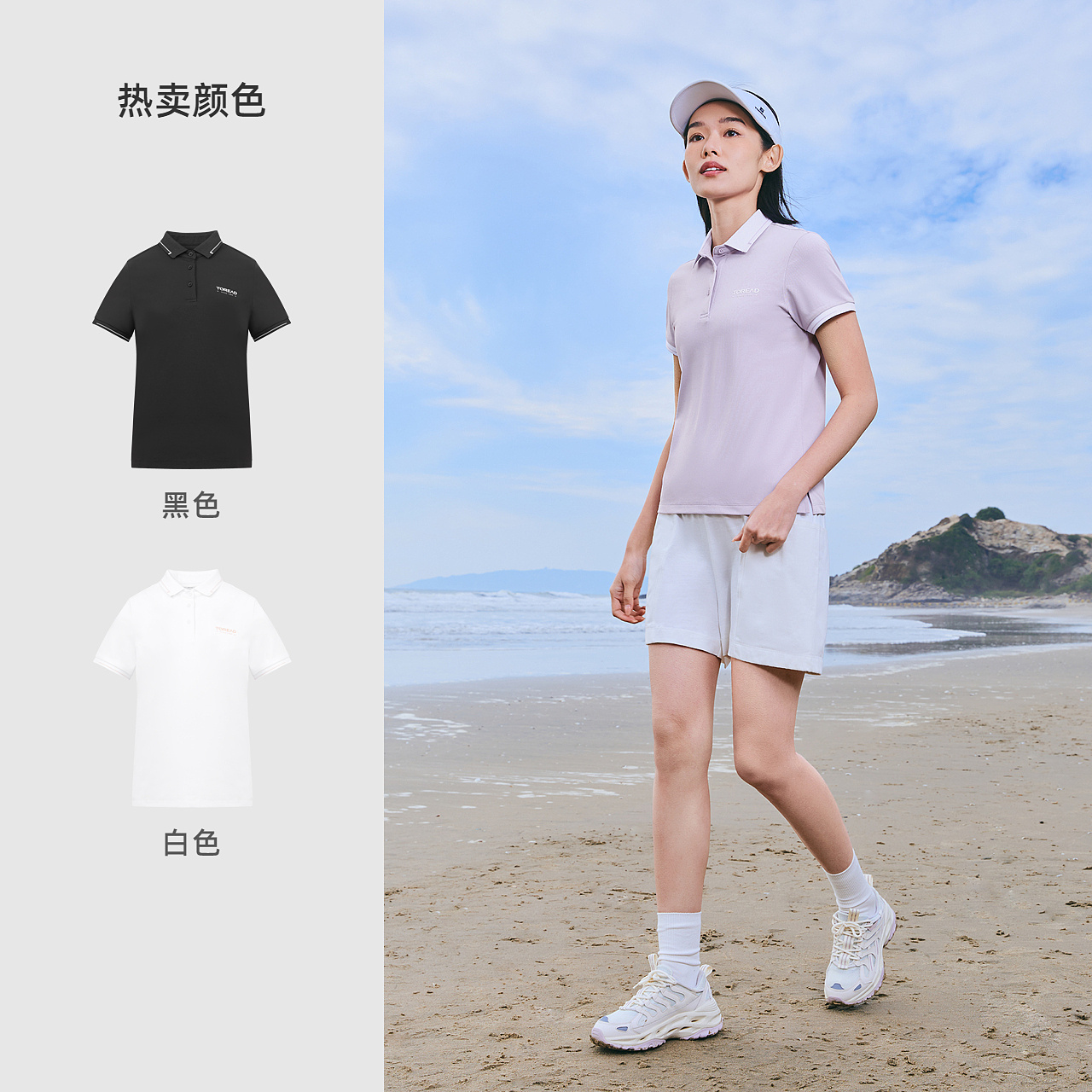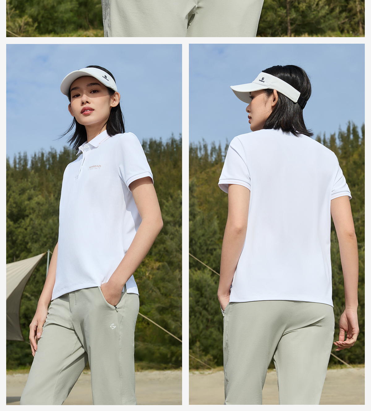 探路者女裝2023新款蜂巢仿生戶外透氣彈力翻領POLO短袖T恤女款