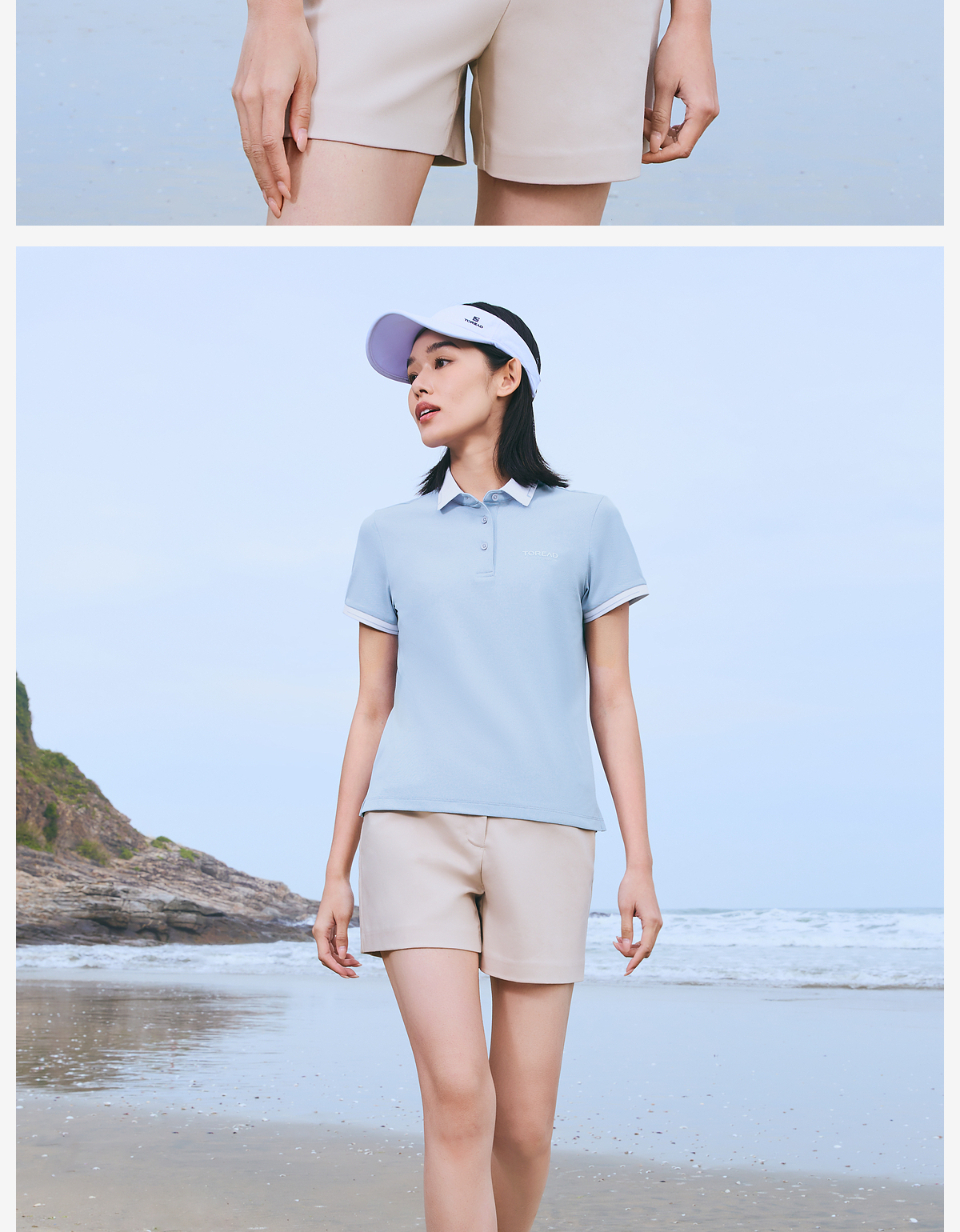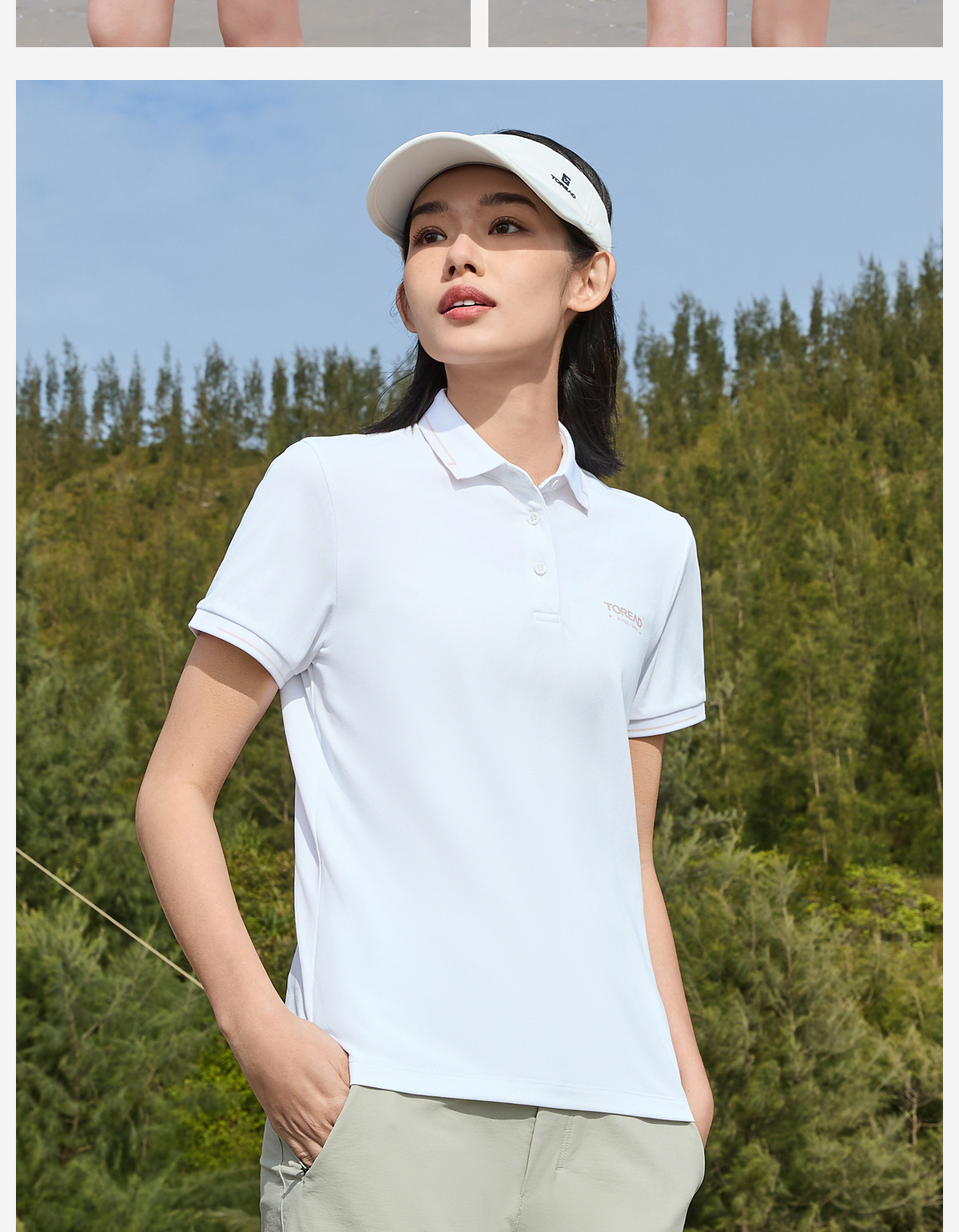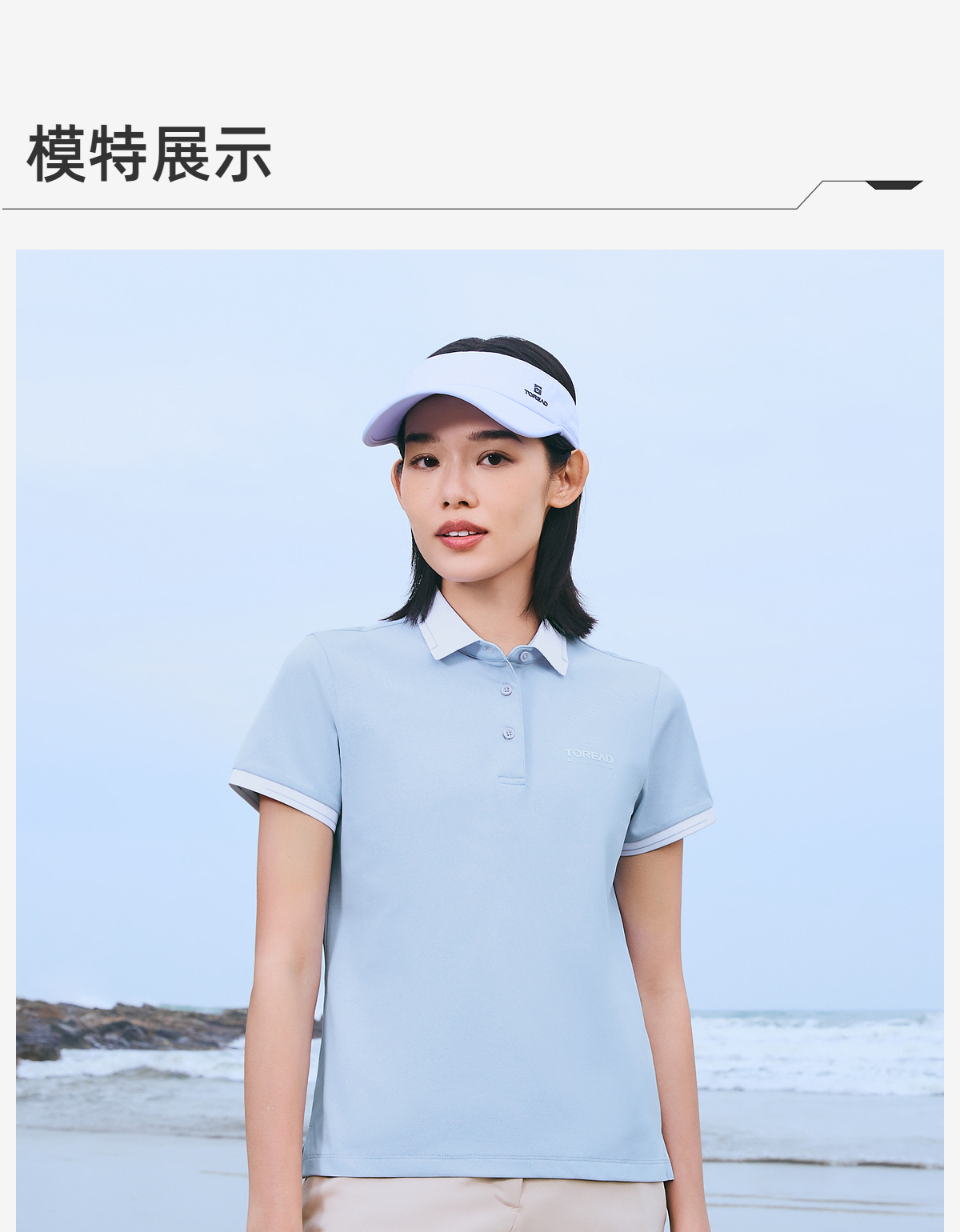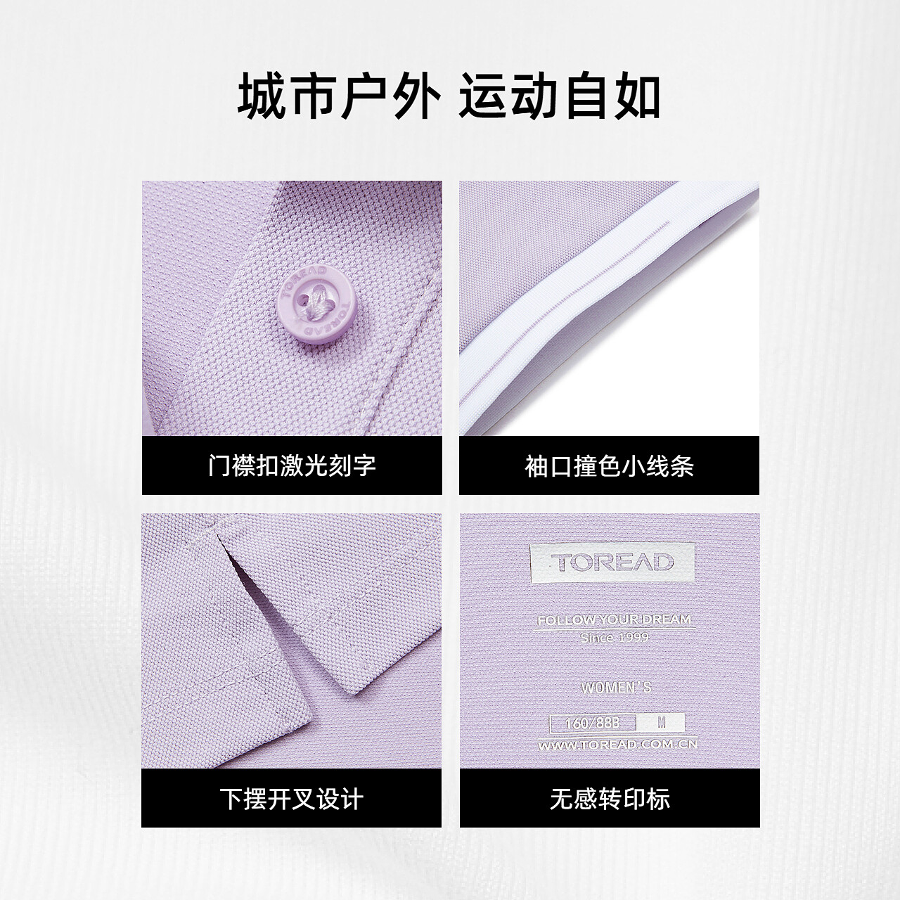 探路者女裝2023新款蜂巢仿生戶外透氣彈力翻領POLO短袖T恤女款