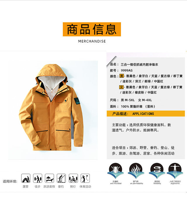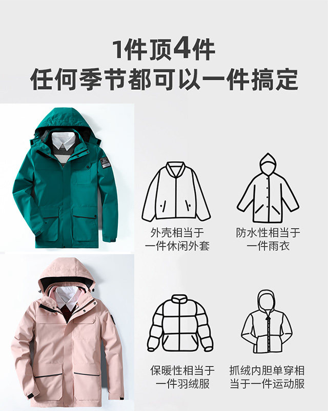 衝鋒衣男女三合一加絨外套秋冬季羽絨服內裡大尺碼定製印LOGO工作服