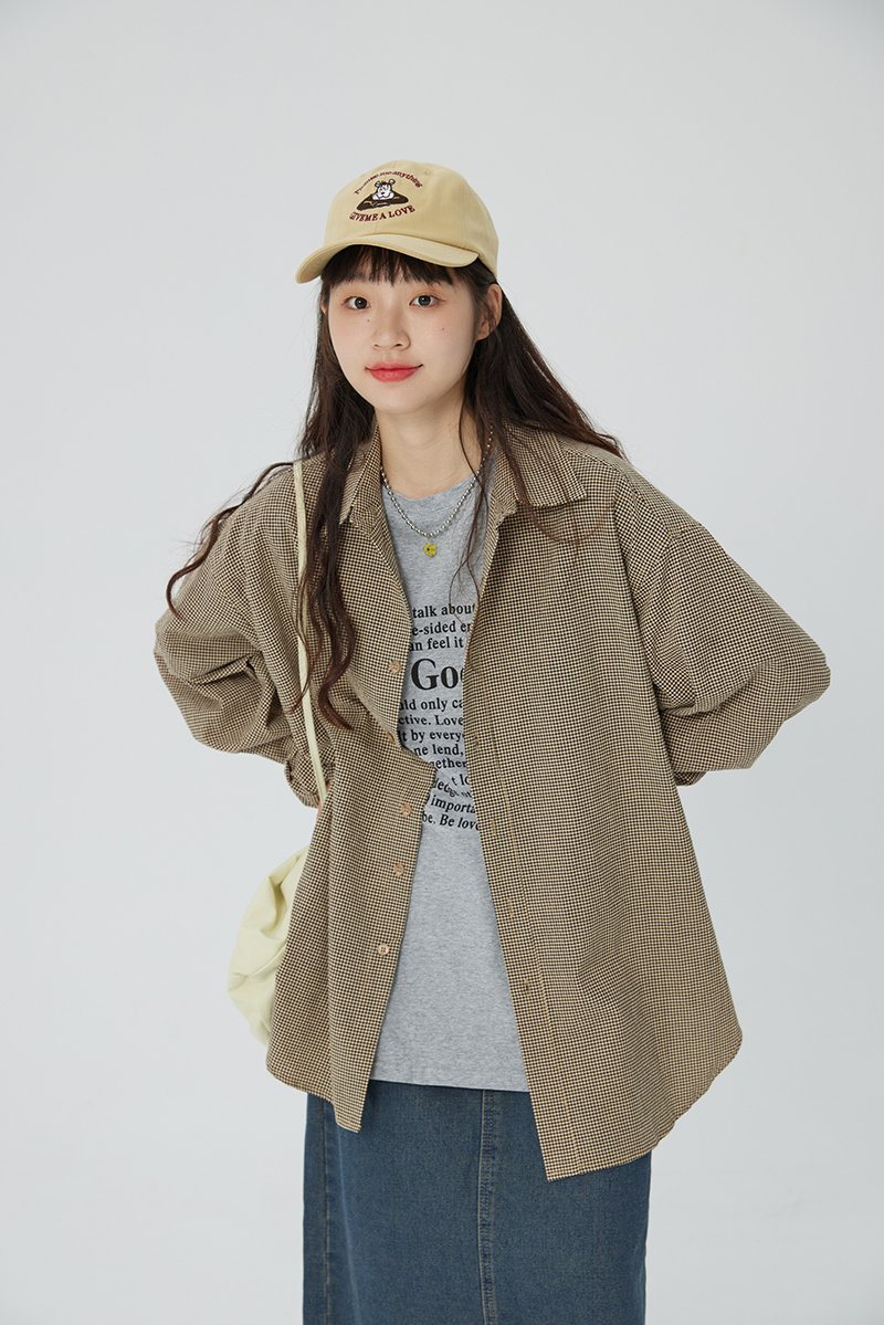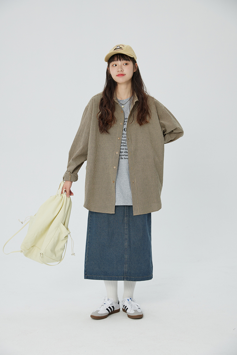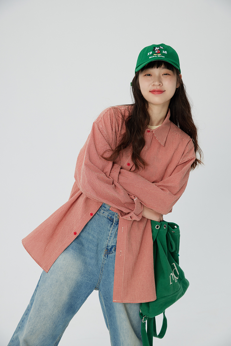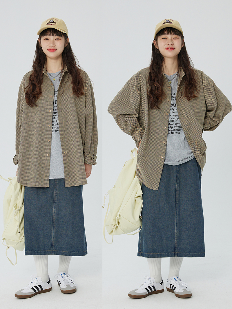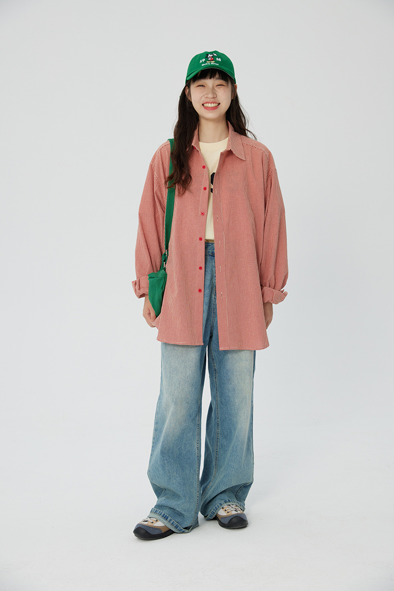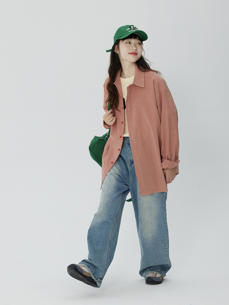 北原山貓 22ss/原創自制紅色長袖格子襯衫女休閒寬鬆外穿防曬上衣