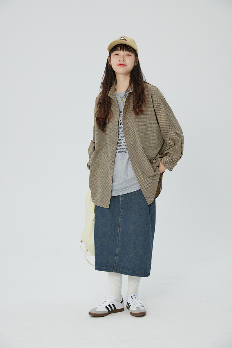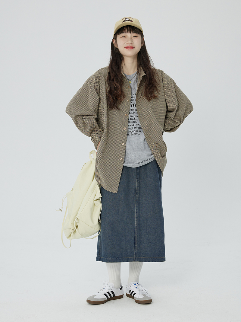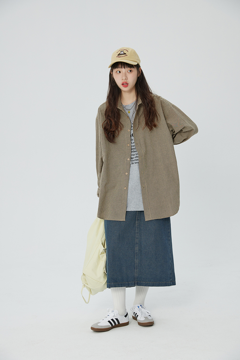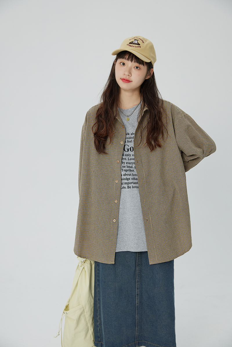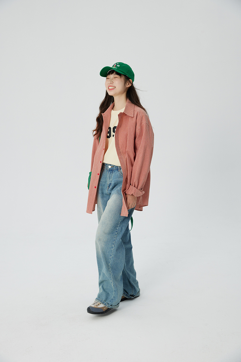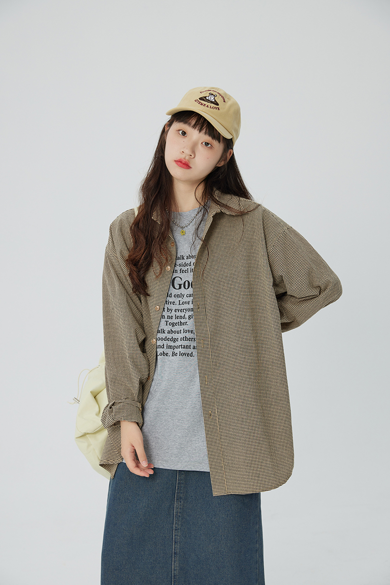 北原山貓 22ss/原創自制紅色長袖格子襯衫女休閒寬鬆外穿防曬上衣