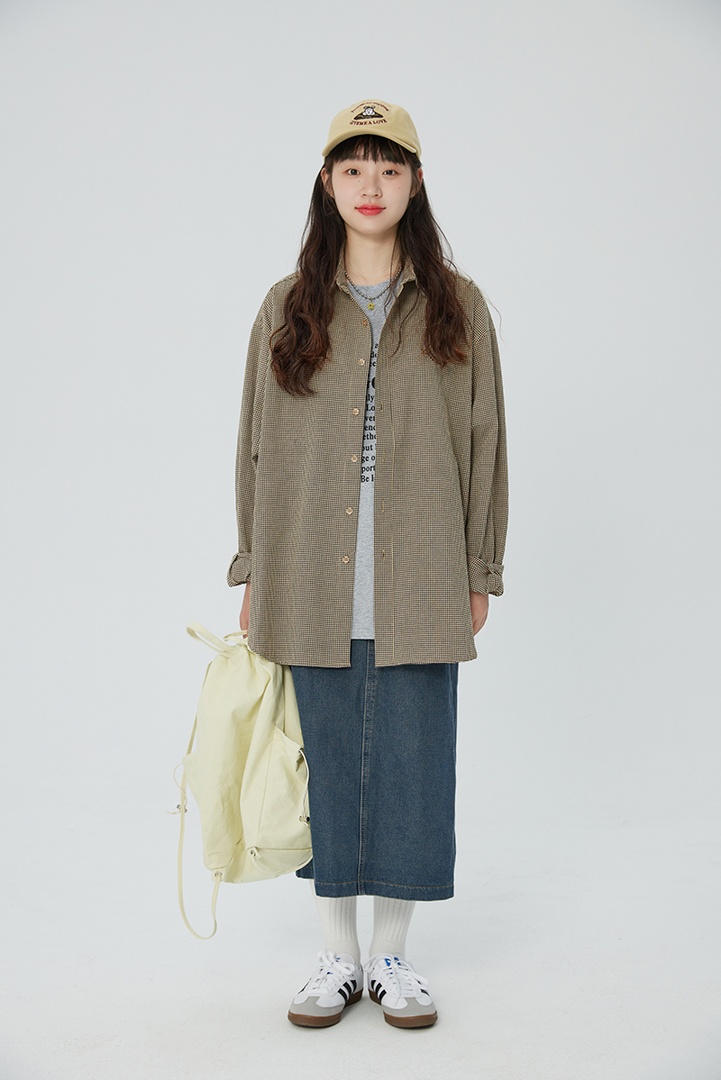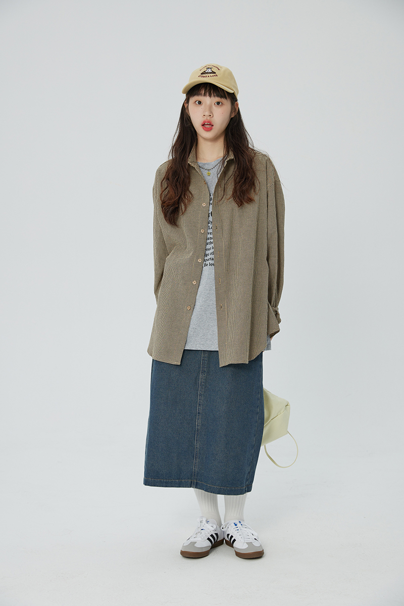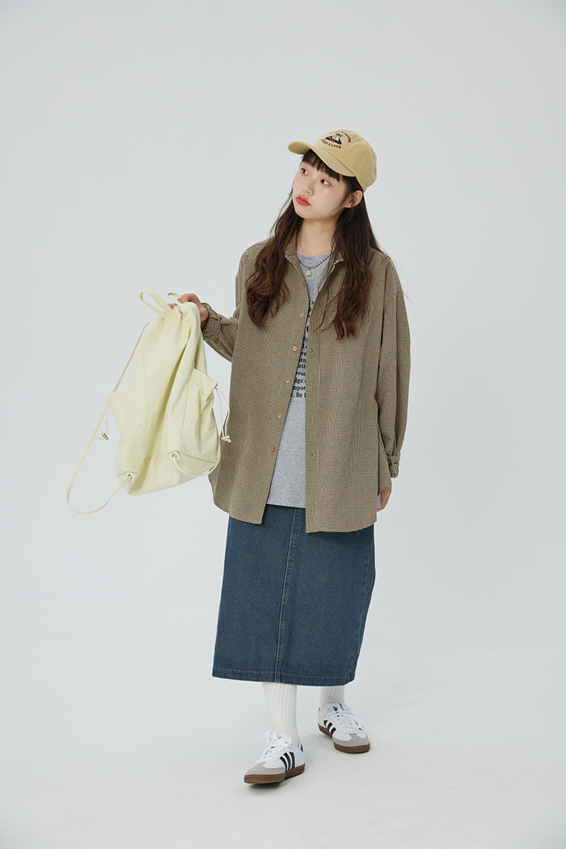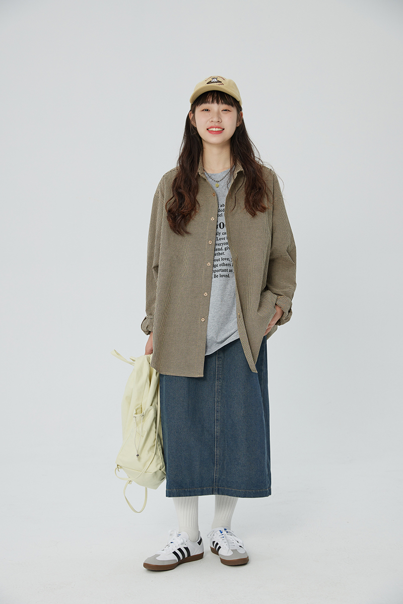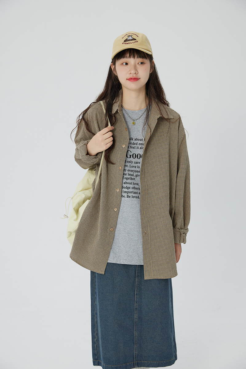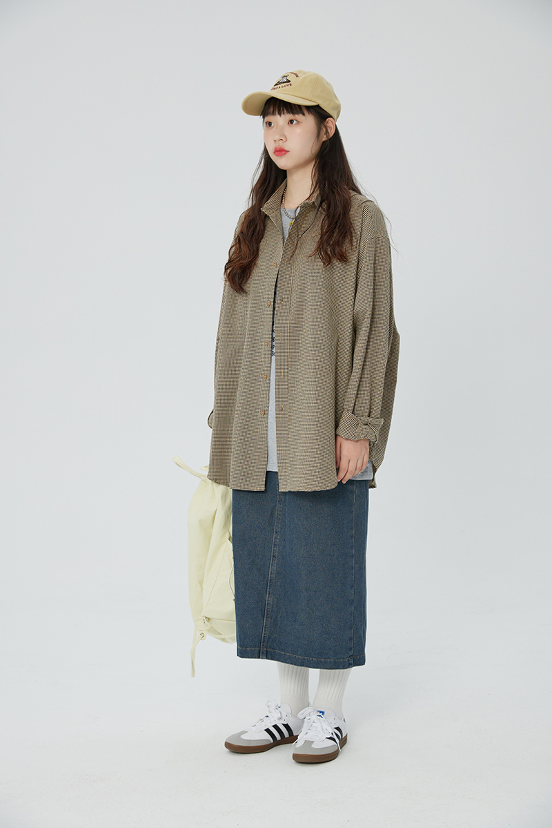 北原山貓 22ss/原創自制紅色長袖格子襯衫女休閒寬鬆外穿防曬上衣
