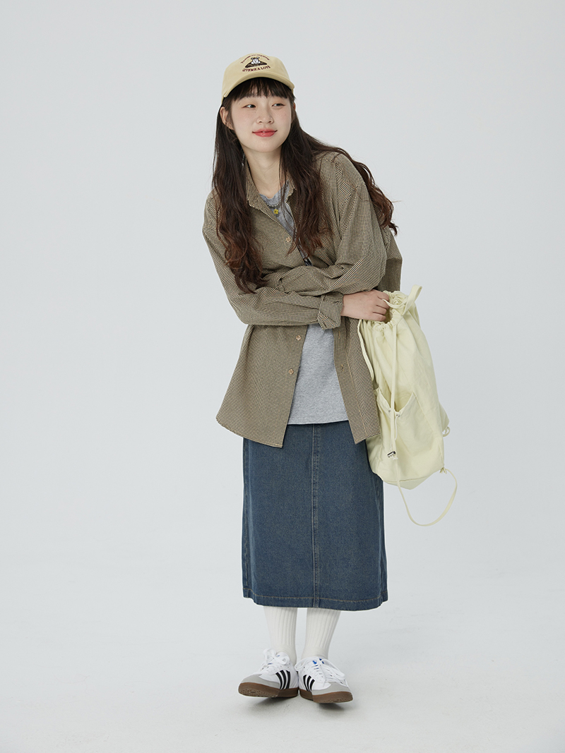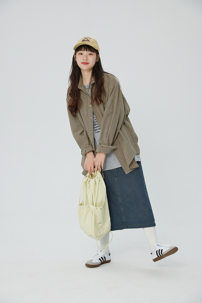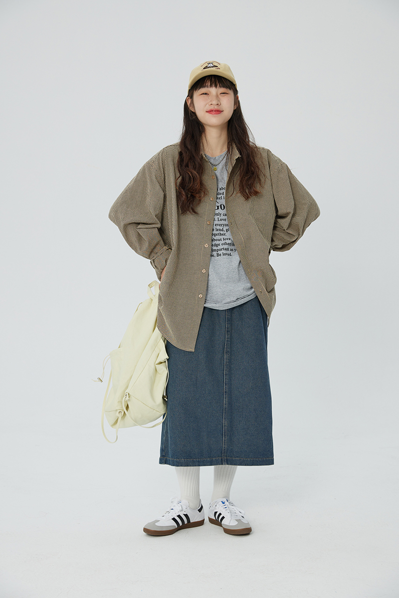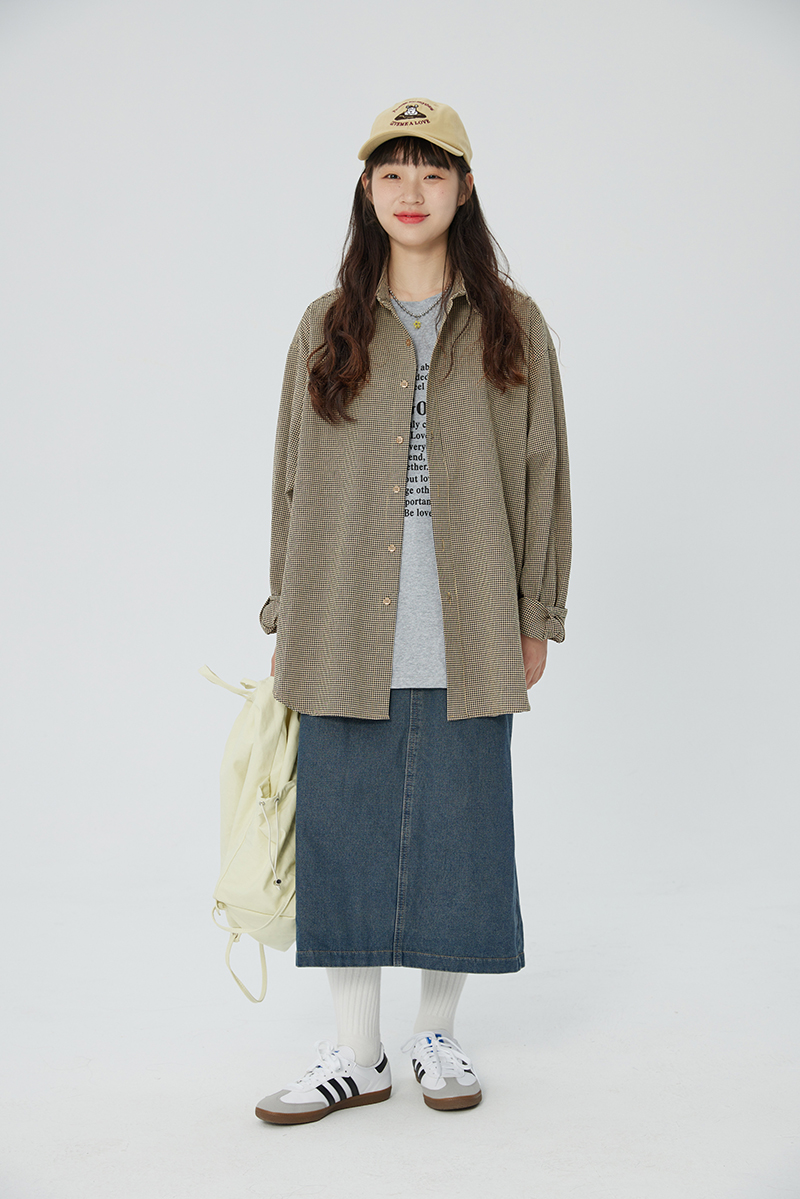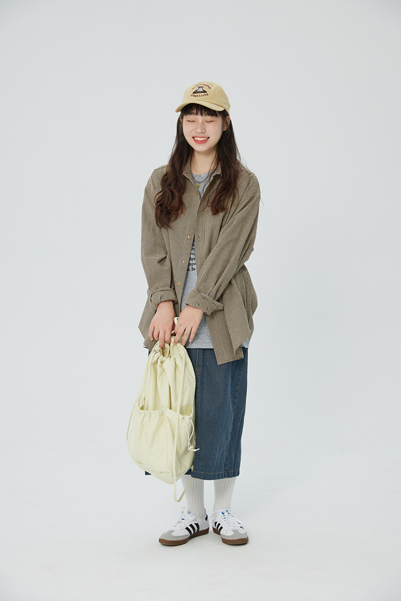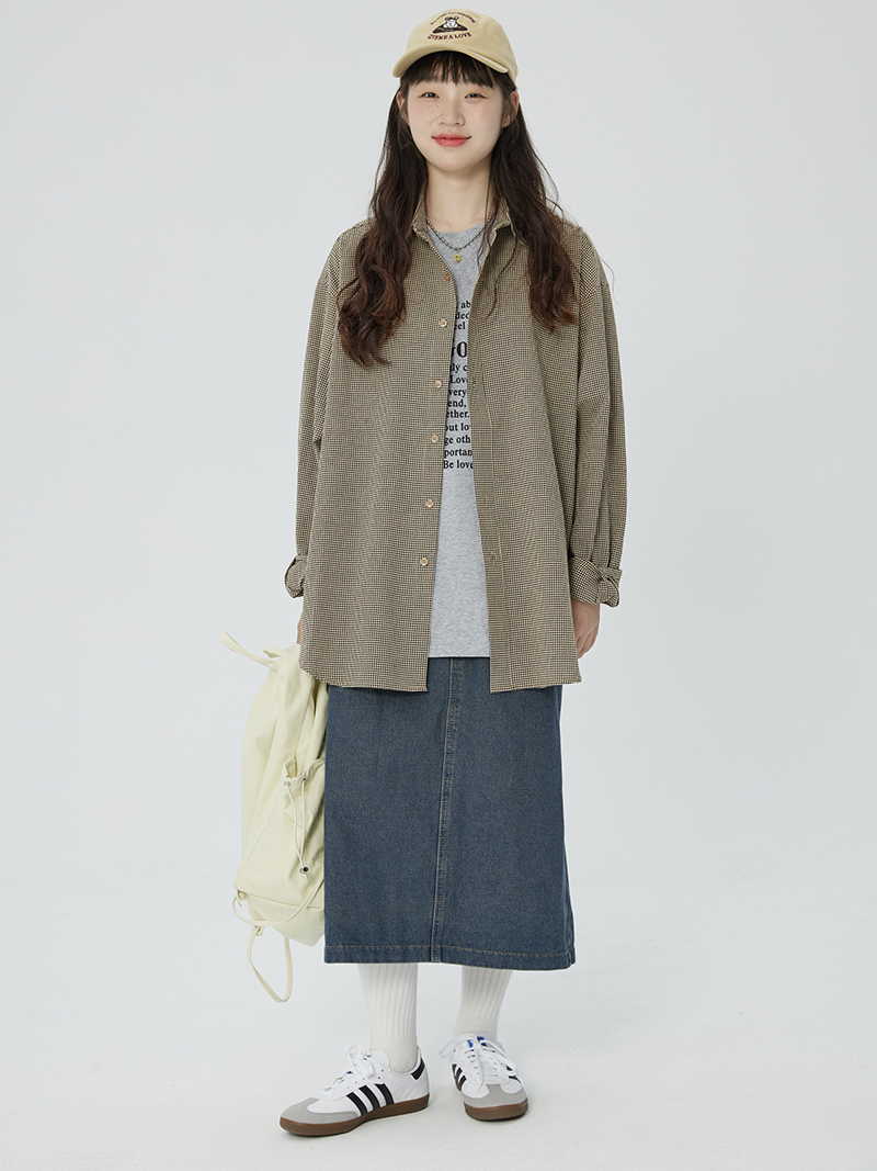 北原山貓 22ss/原創自制紅色長袖格子襯衫女休閒寬鬆外穿防曬上衣