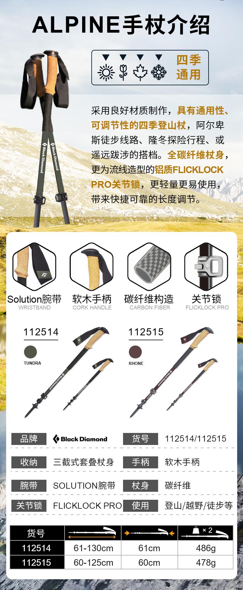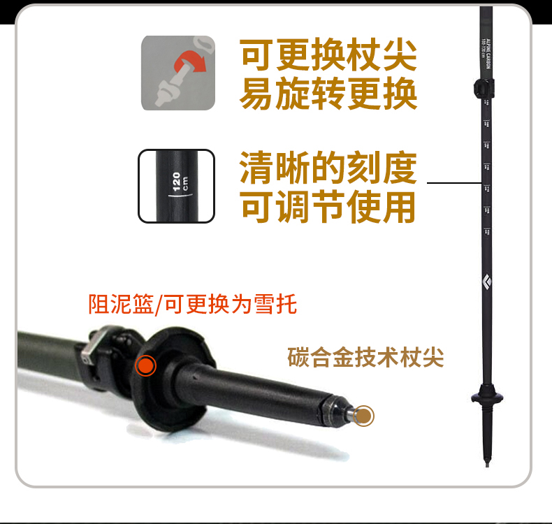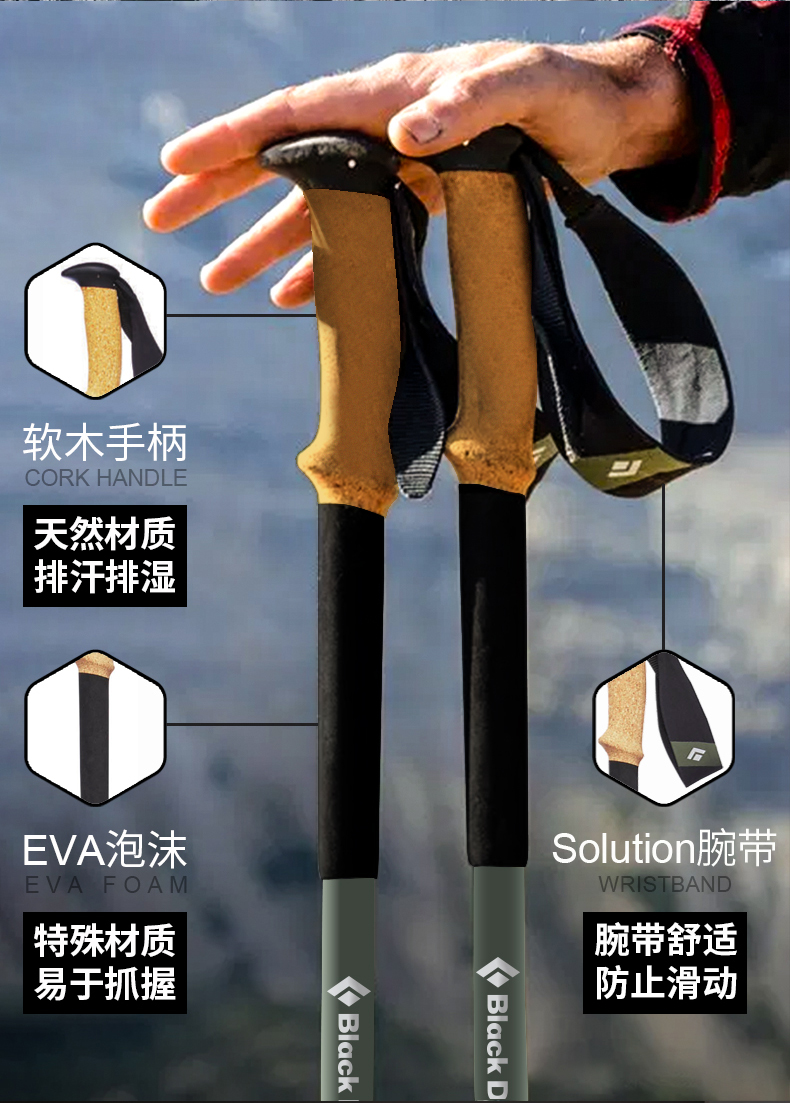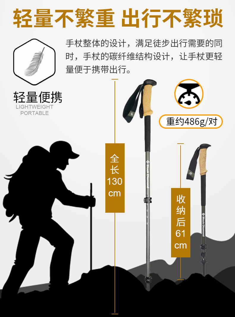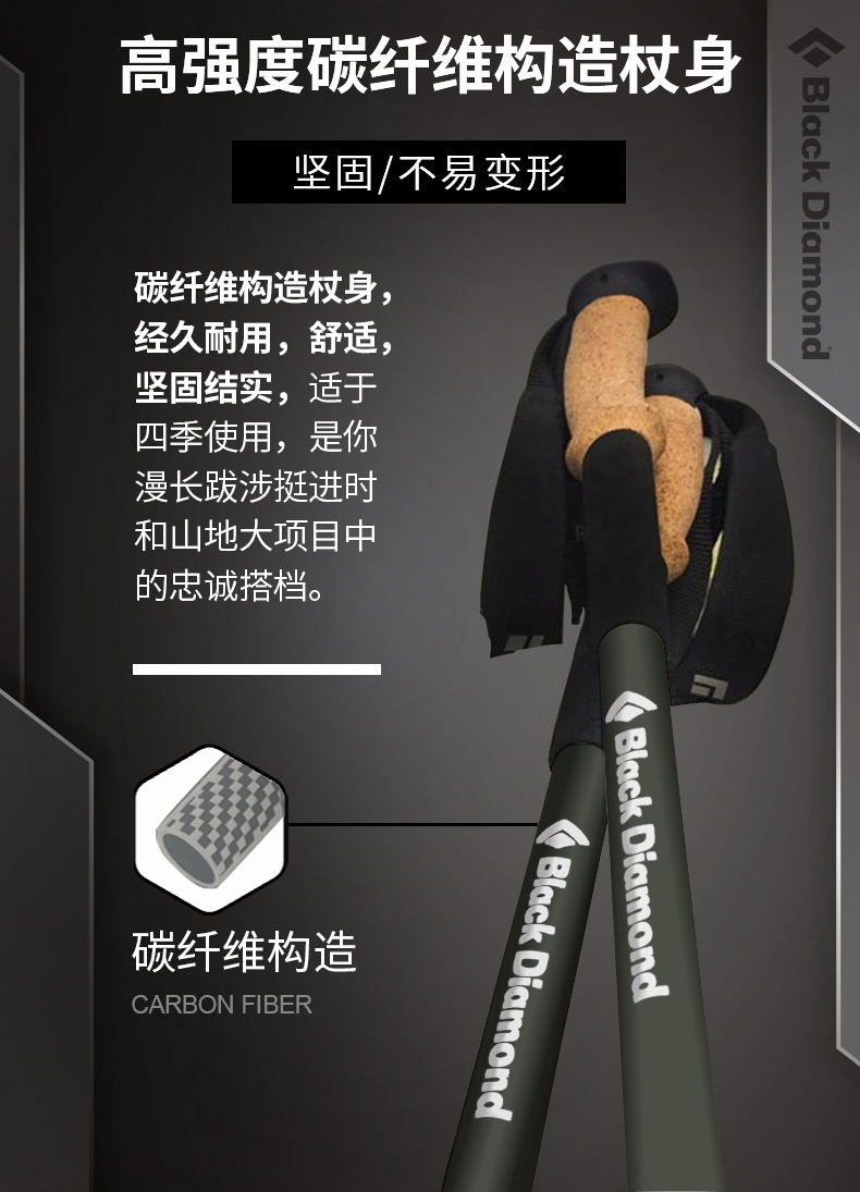 blackdiamond黑鑽伸縮登山手杖超輕碳素柺杖戶外爬山徒步杖112514