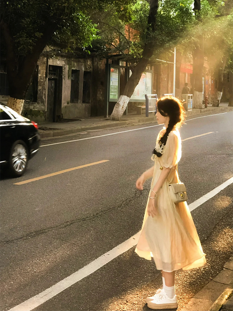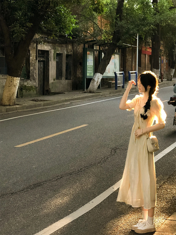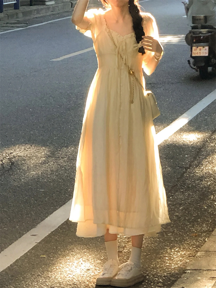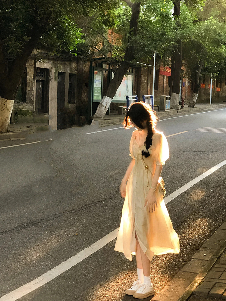 法式初戀少女洋裝女氣質溫柔風收腰顯瘦夏季新款小眾設計感裙子