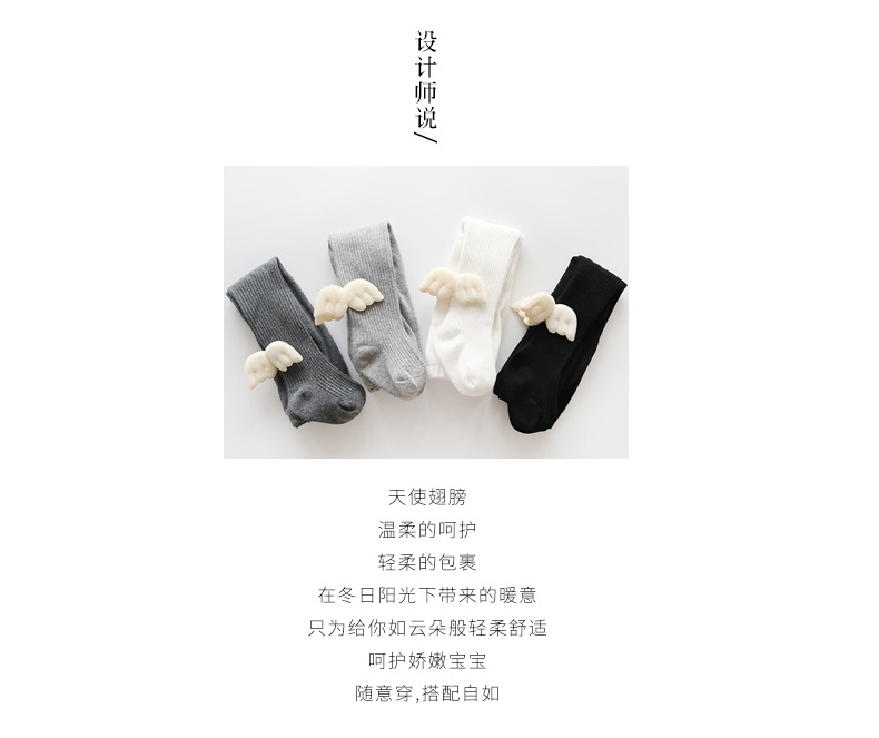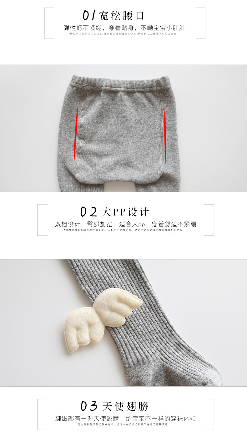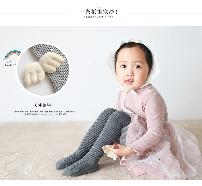 新款精梳棉秋冬季天使翅膀女童儿童宝宝连裤袜双针婴儿打底裤袜子