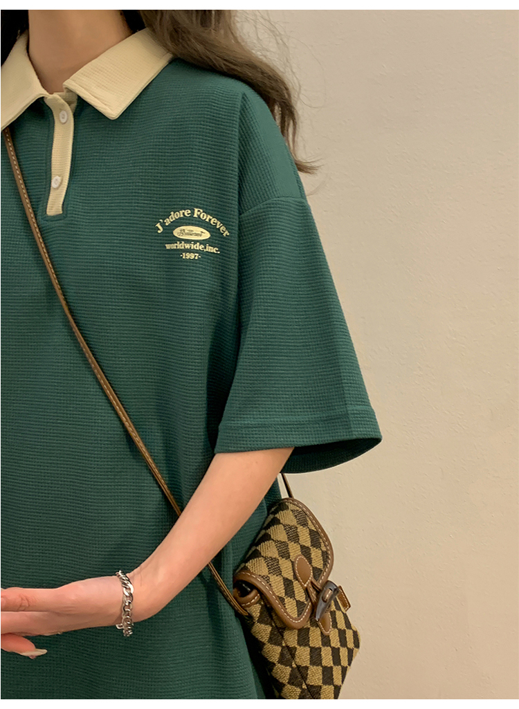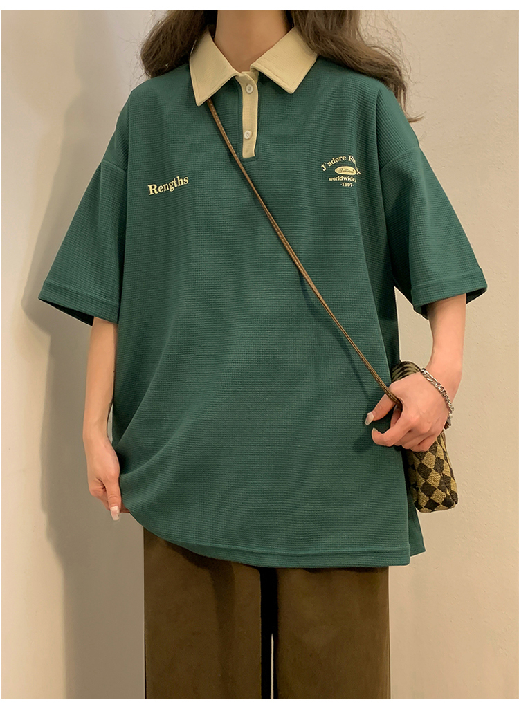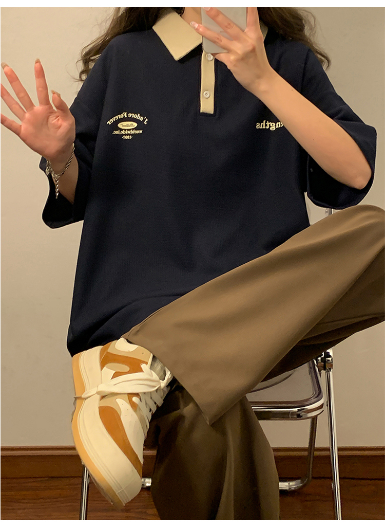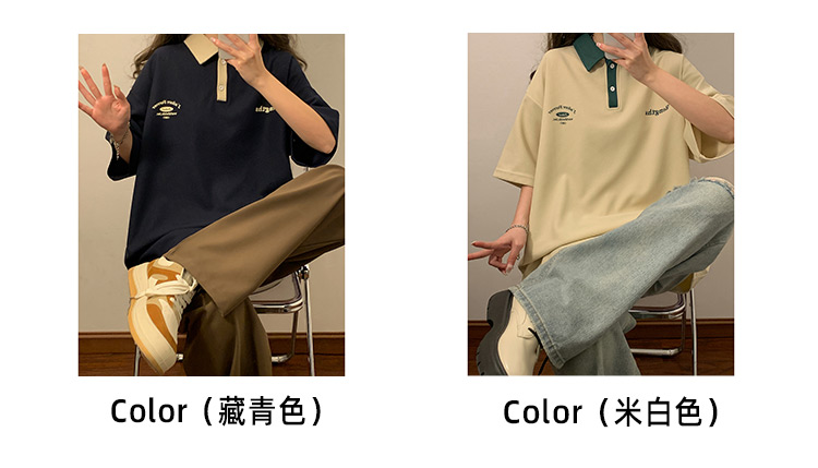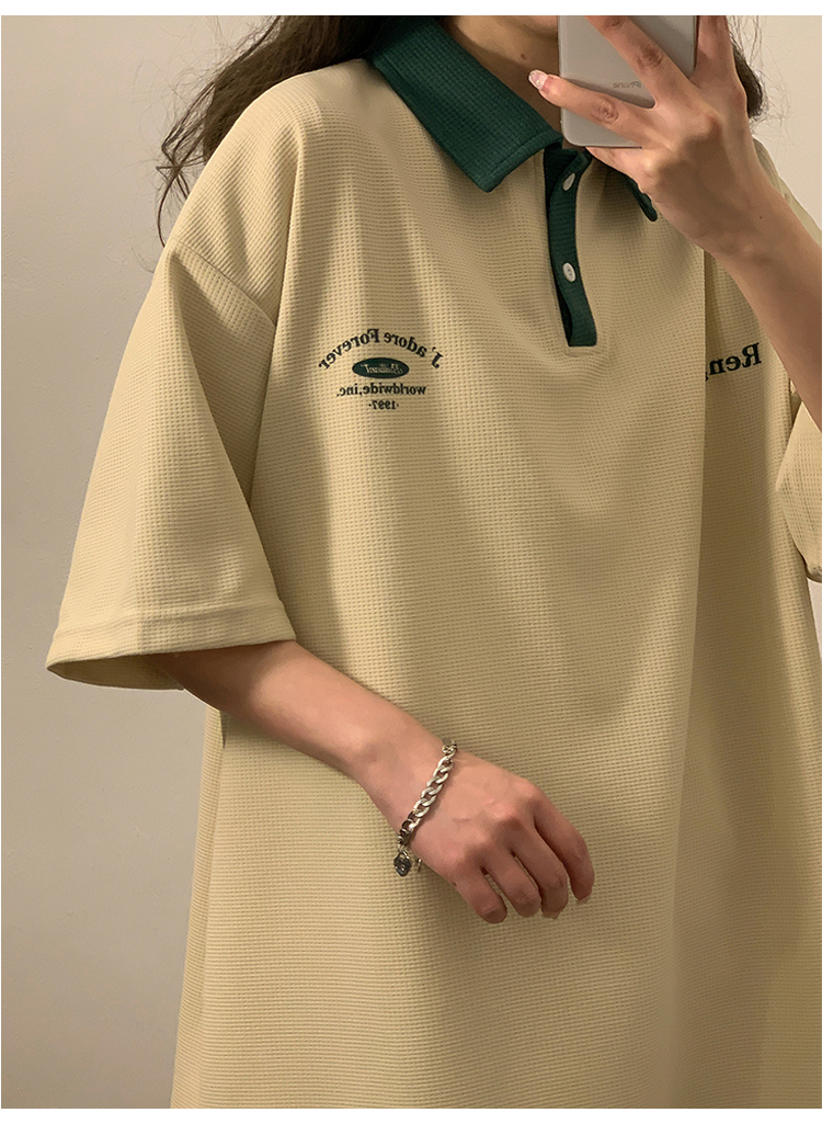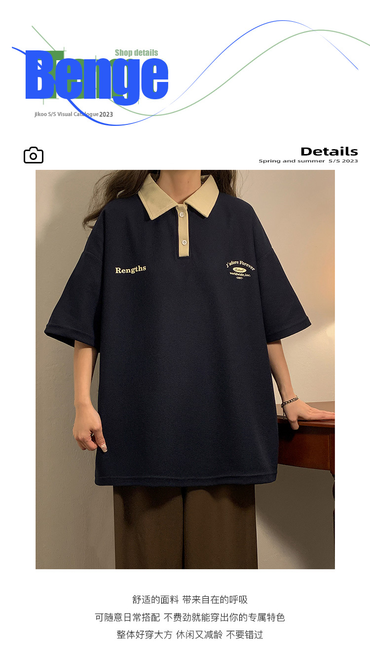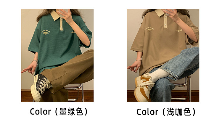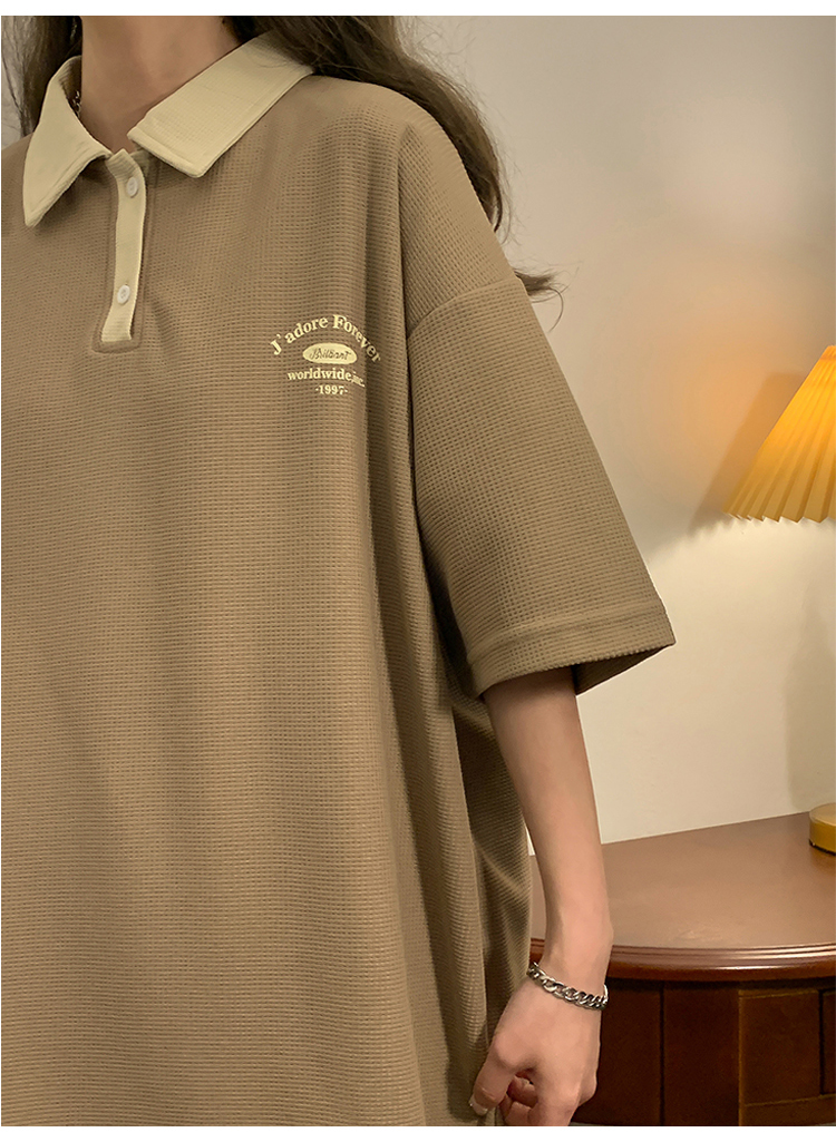 日系正肩Polo衫女夏季大尺碼美式短袖t恤2023新款T恤寬鬆半袖上衣