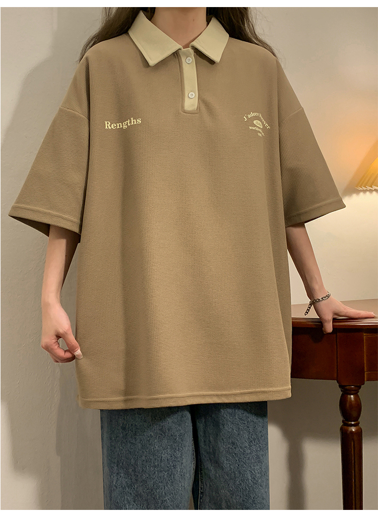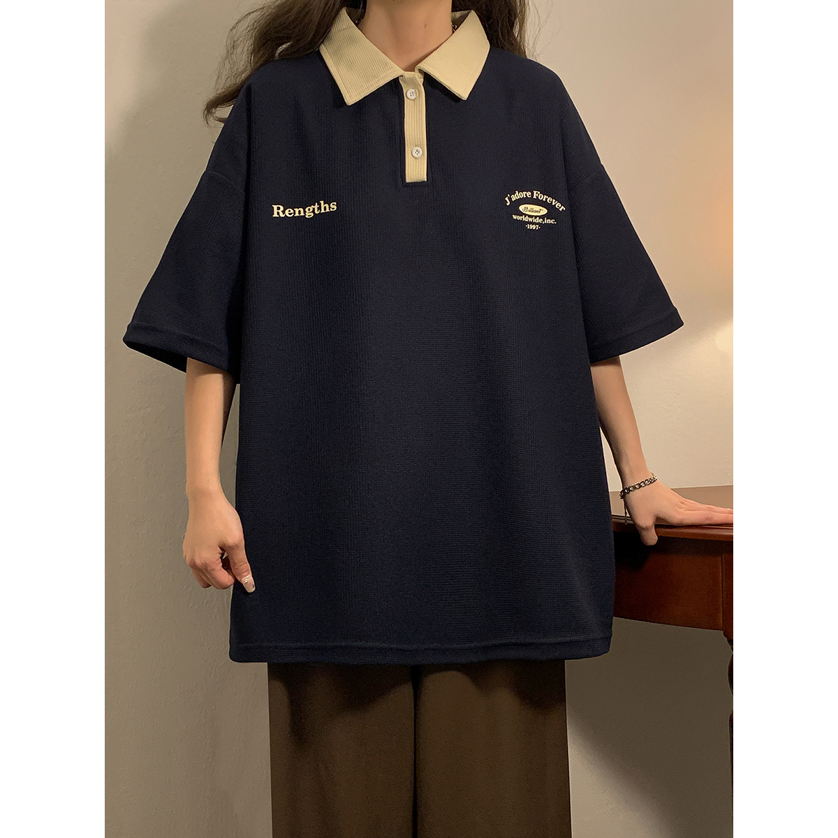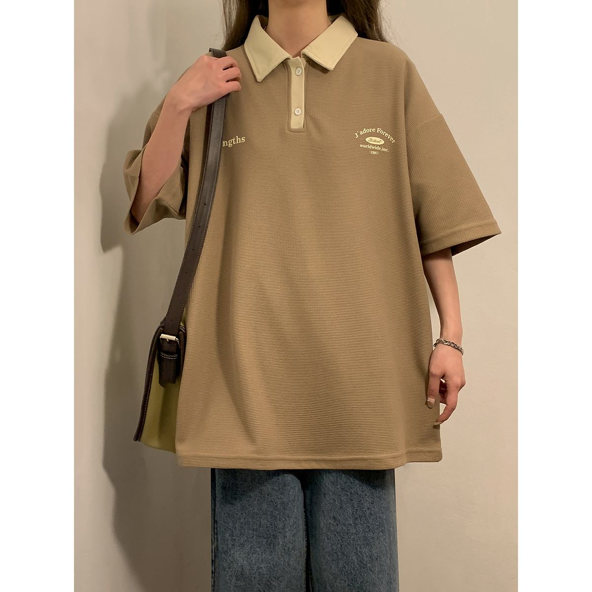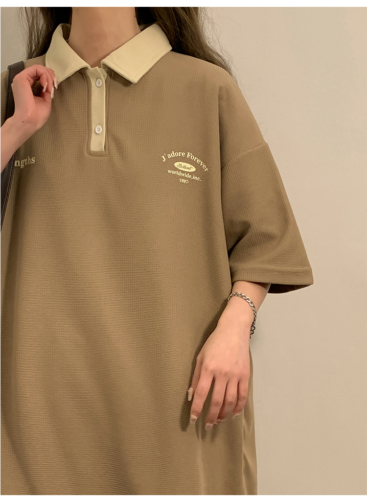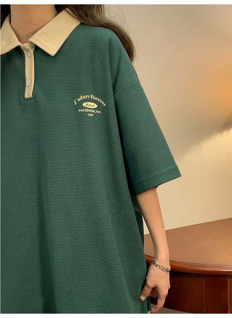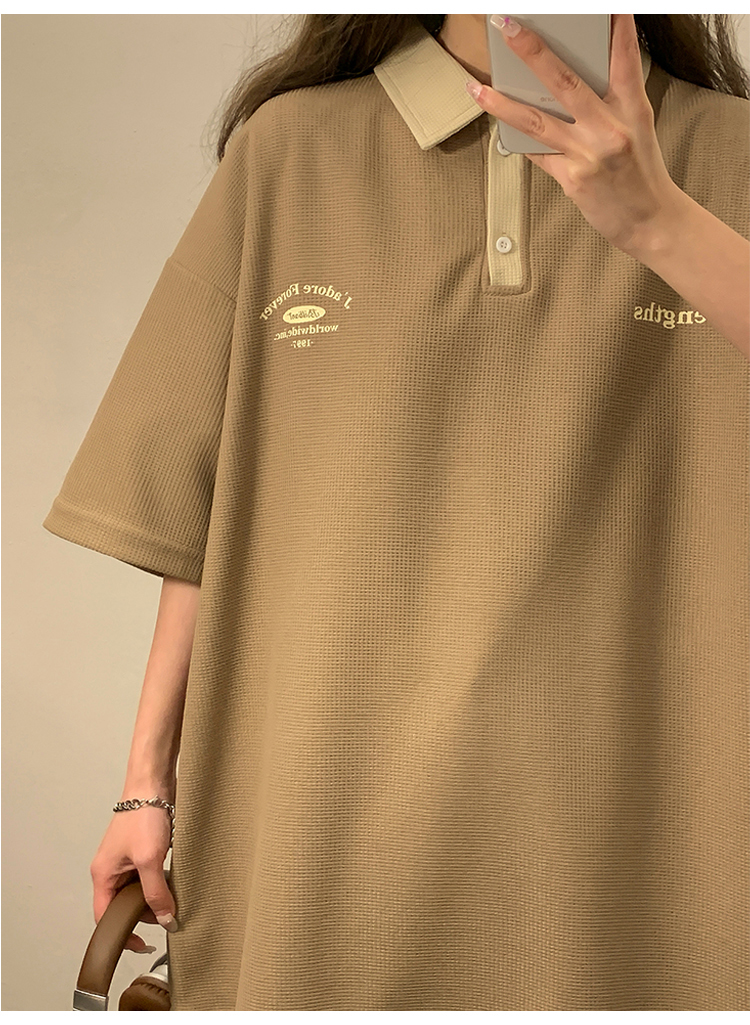 日系正肩Polo衫女夏季大尺碼美式短袖t恤2023新款T恤寬鬆半袖上衣