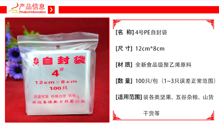 批发4号自封袋透明8x12双层5丝8丝10丝12丝封口袋100只密封袋现货