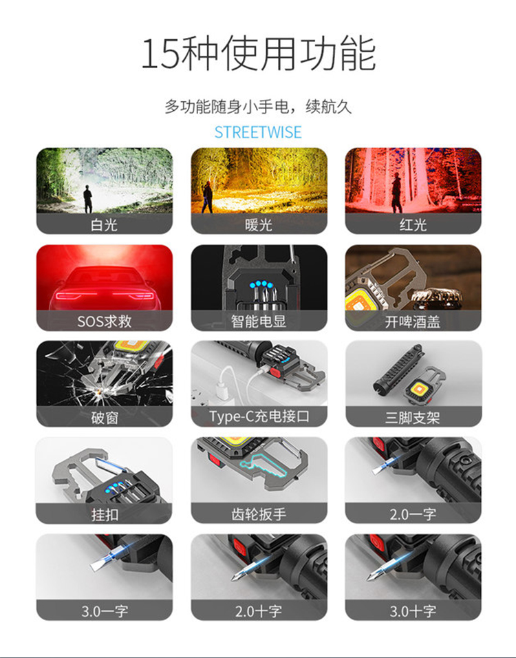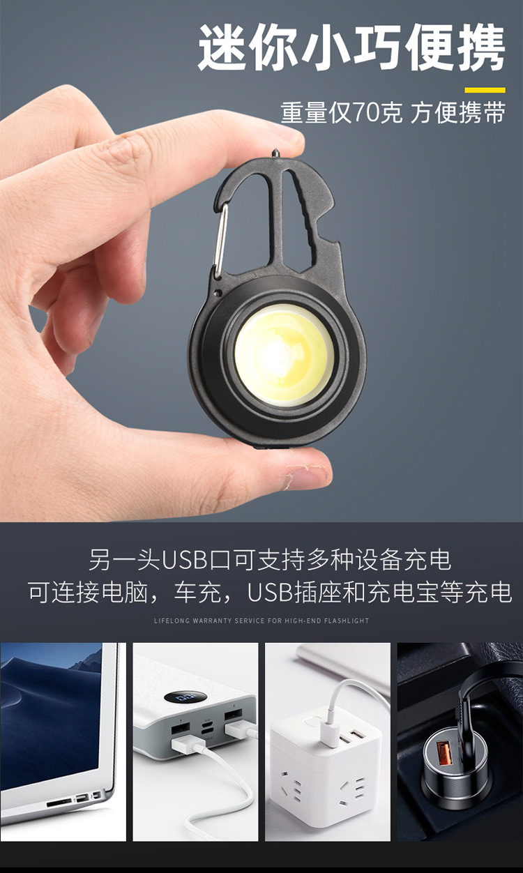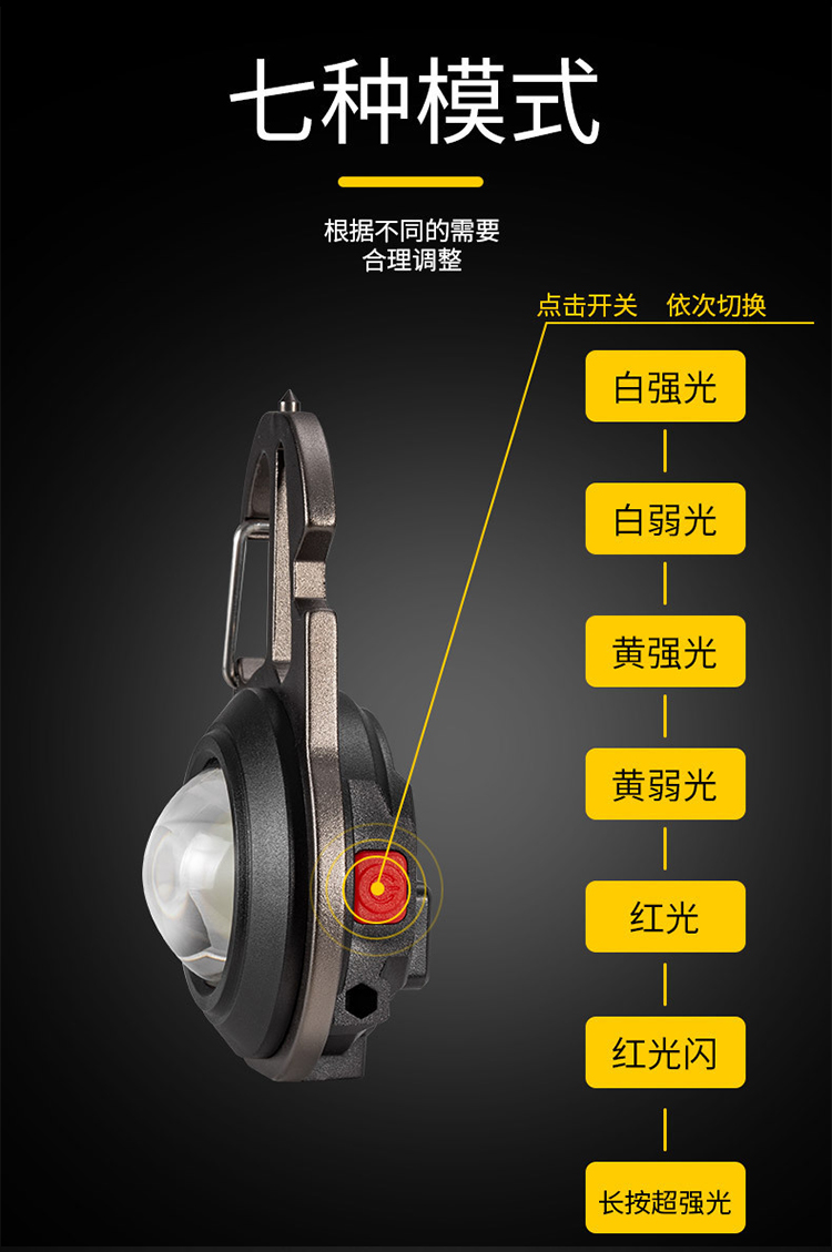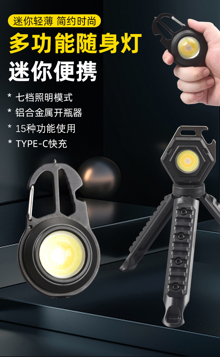戶外露營燈超長續航迷你攜帶多功能工作維修燈氛圍鑰匙扣應急7擋