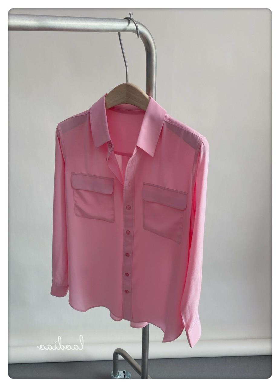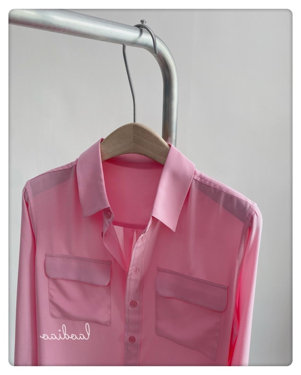 清倉撿漏~專櫃撤回尾單外貿貨女裝粉色口袋慵懶百搭顯瘦真絲襯衫