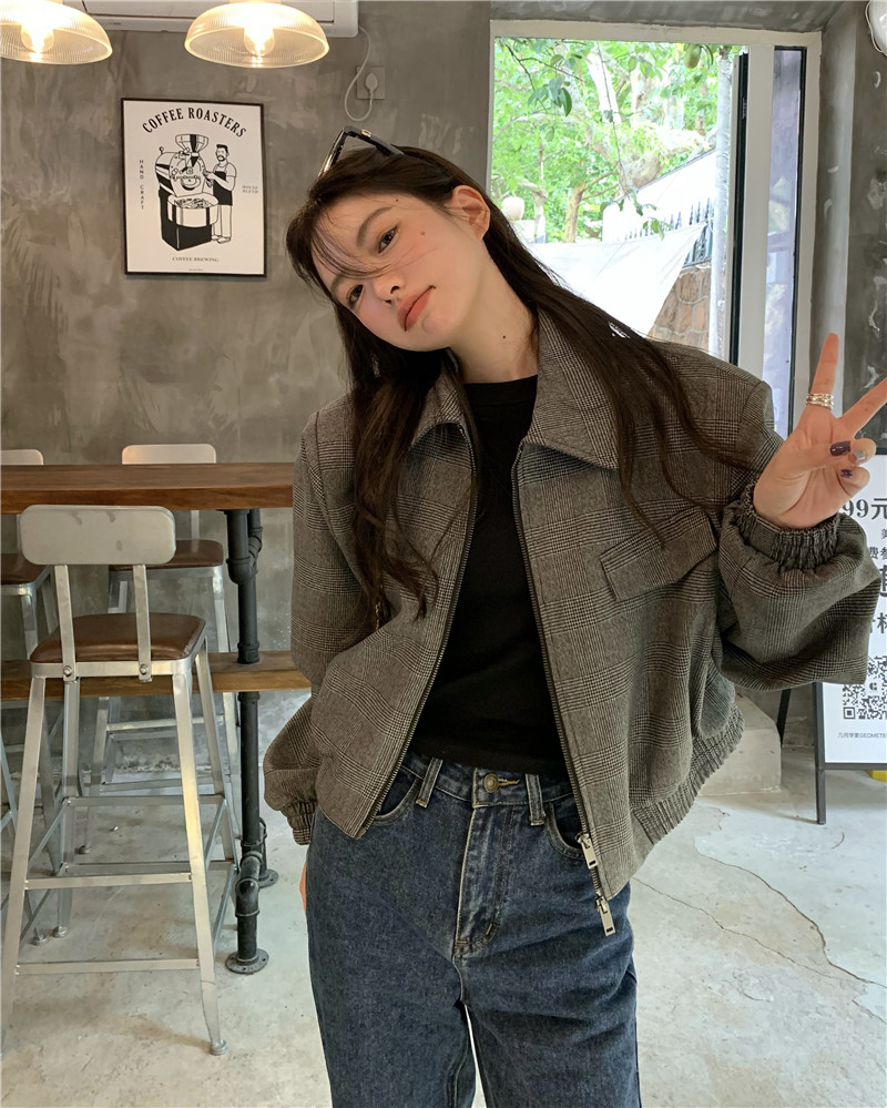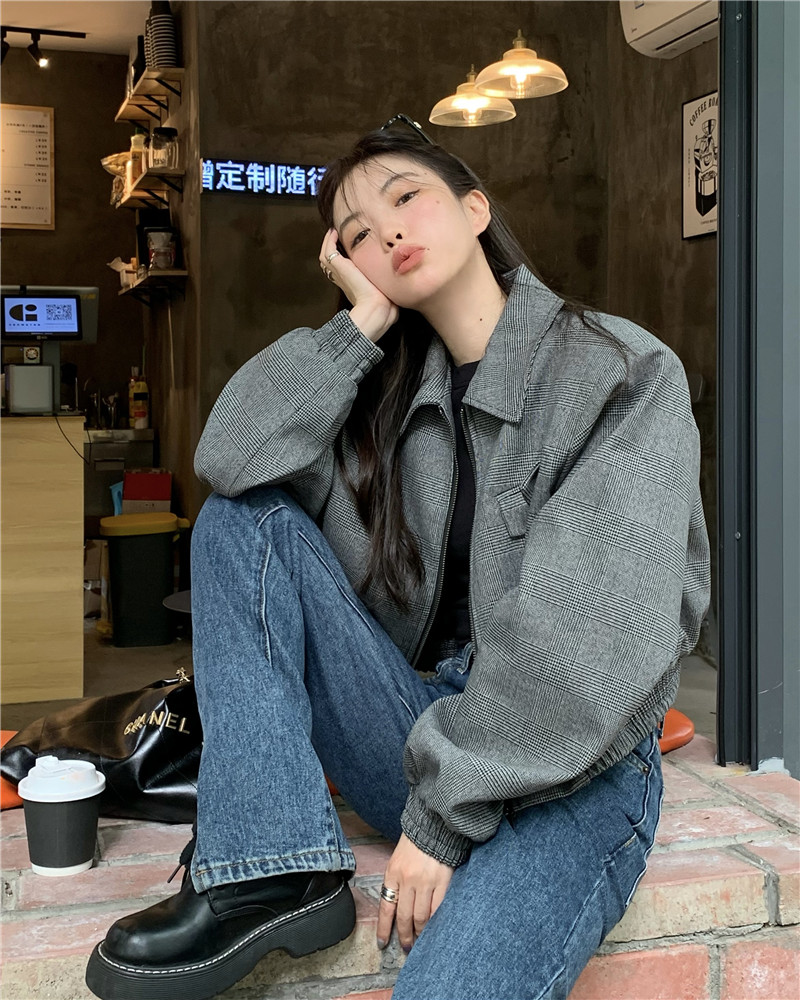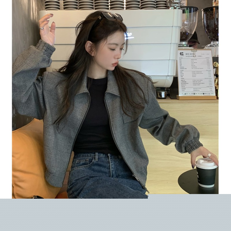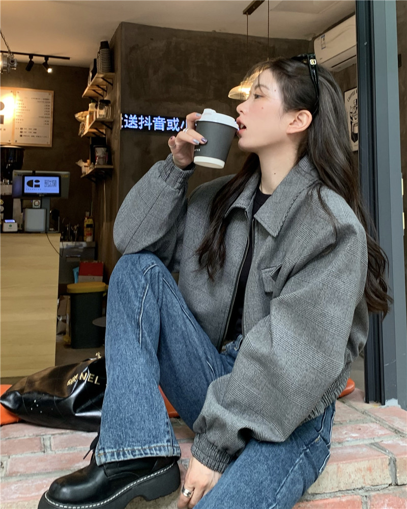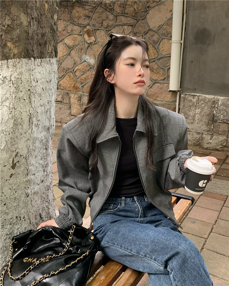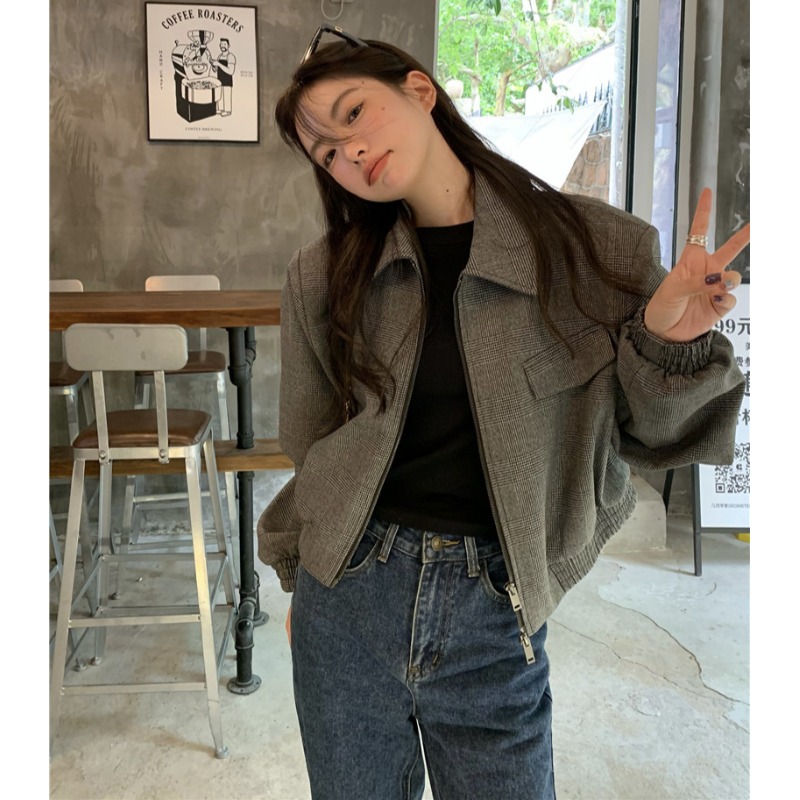 設計感復古翻領短款外套女春秋款小眾百搭寬鬆顯瘦小個子夾克上衣