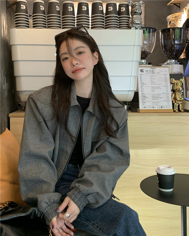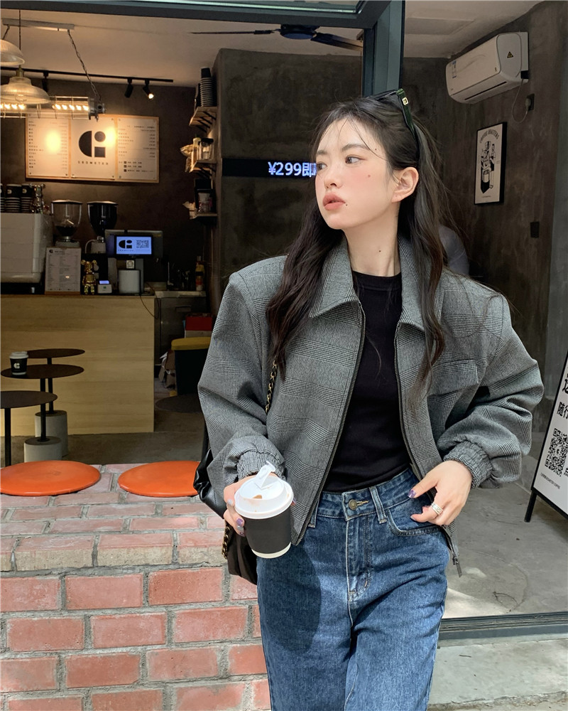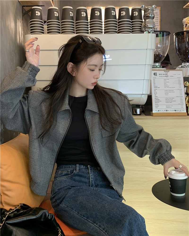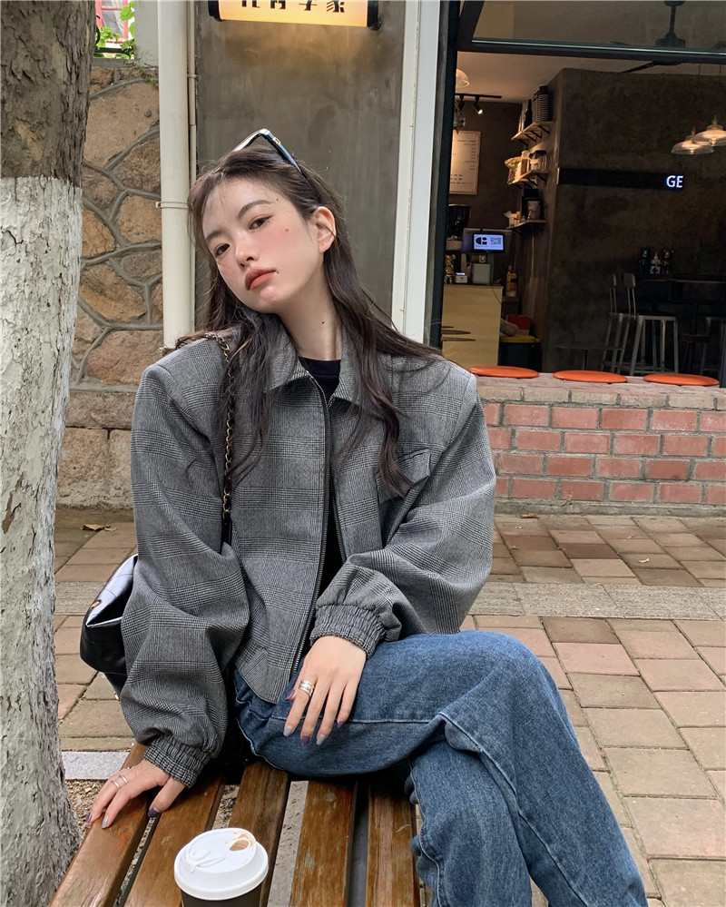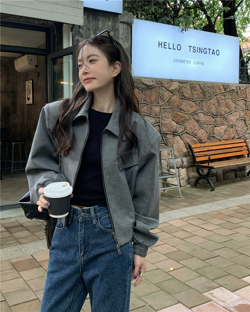 設計感復古翻領短款外套女春秋款小眾百搭寬鬆顯瘦小個子夾克上衣
