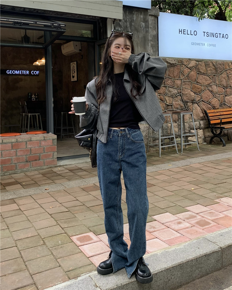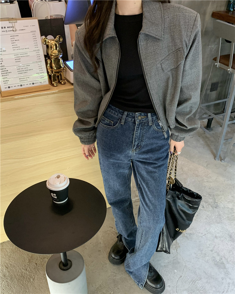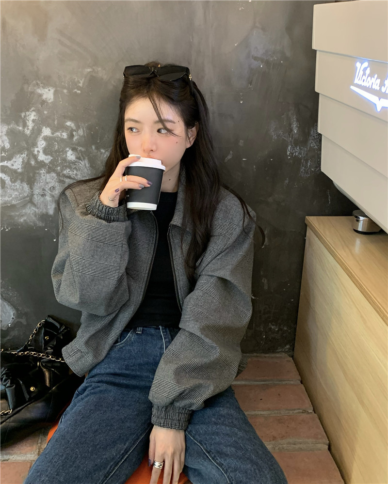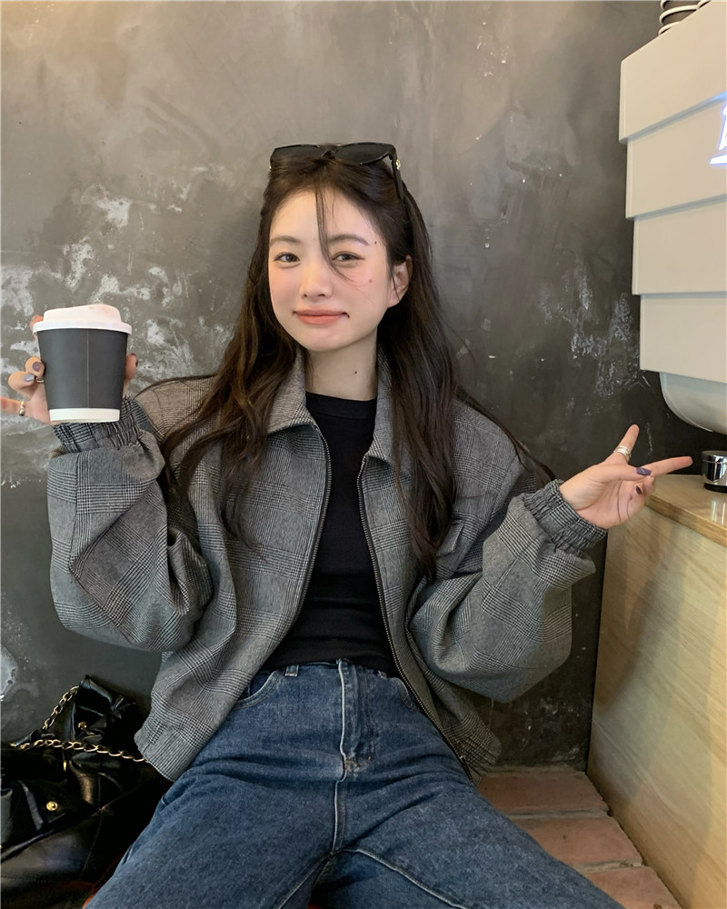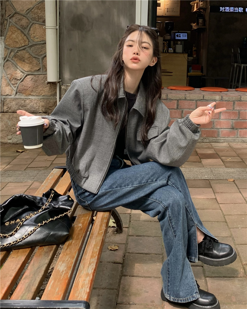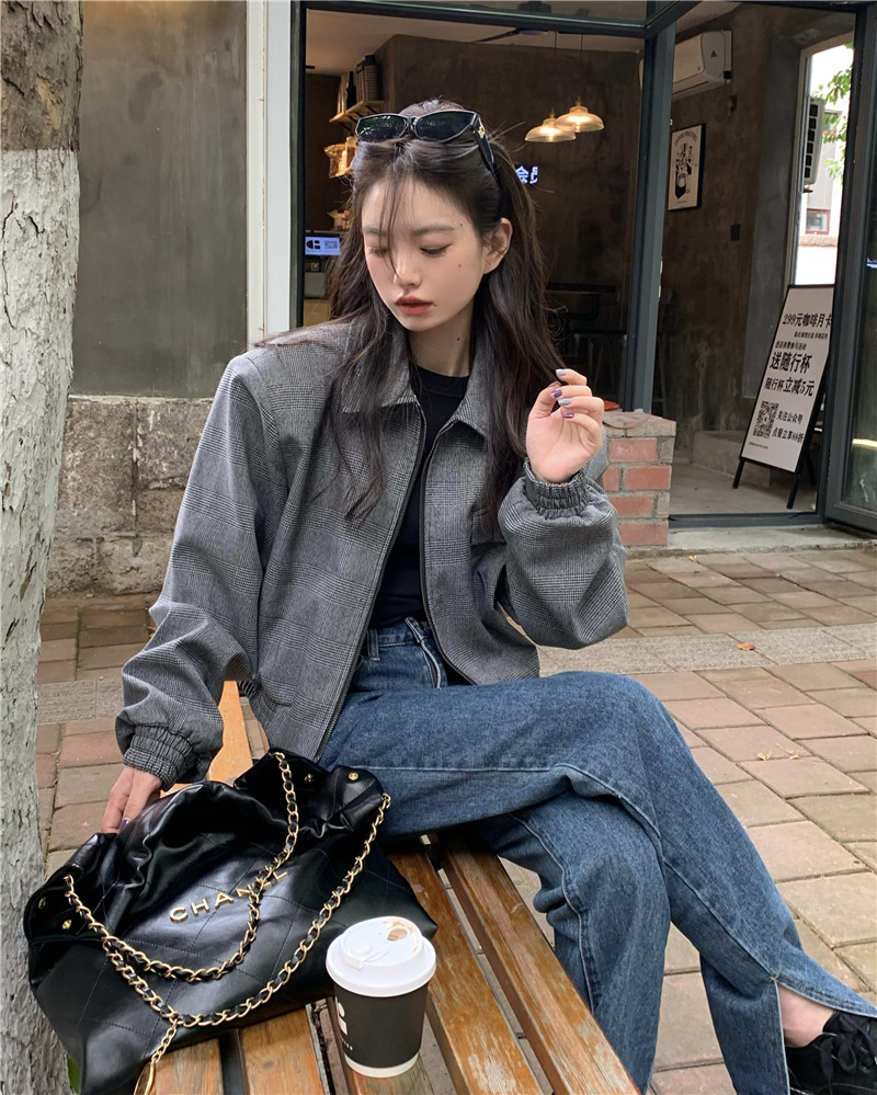 設計感復古翻領短款外套女春秋款小眾百搭寬鬆顯瘦小個子夾克上衣
