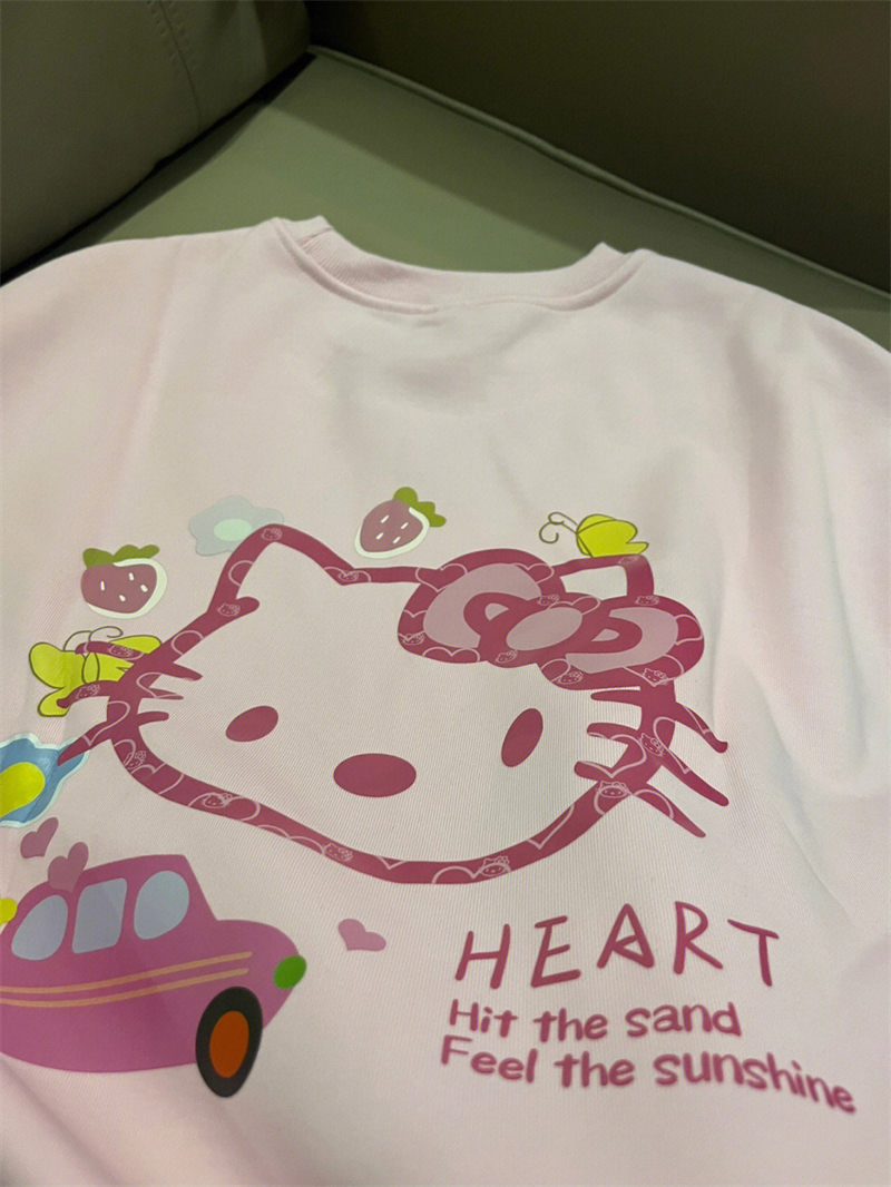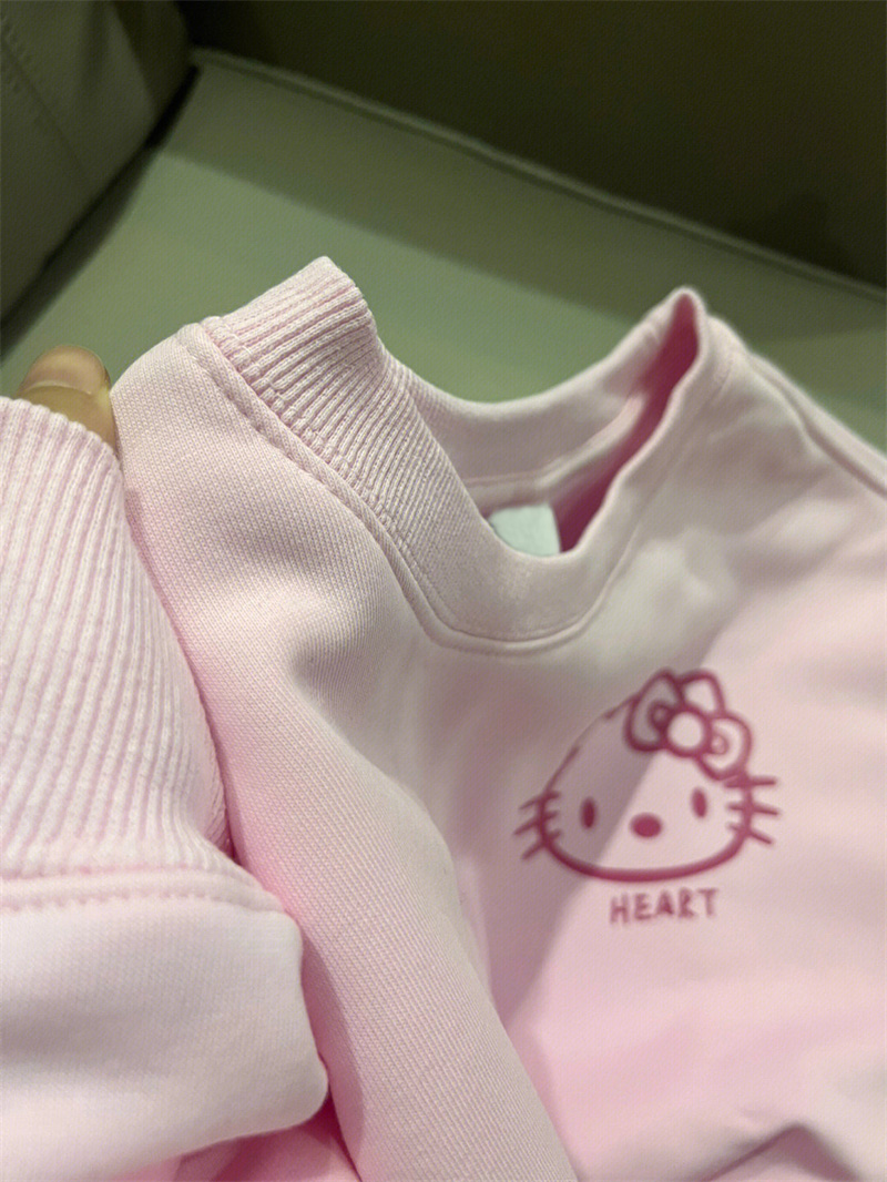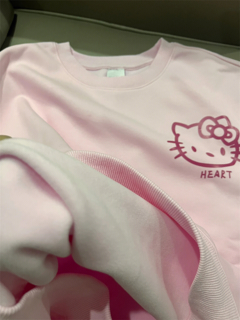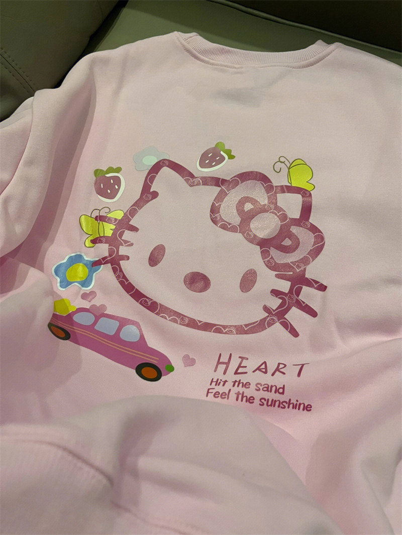 日系復古可愛印花粉色衛衣女春季2023新款寬鬆韓版bf慵懶外套上衣