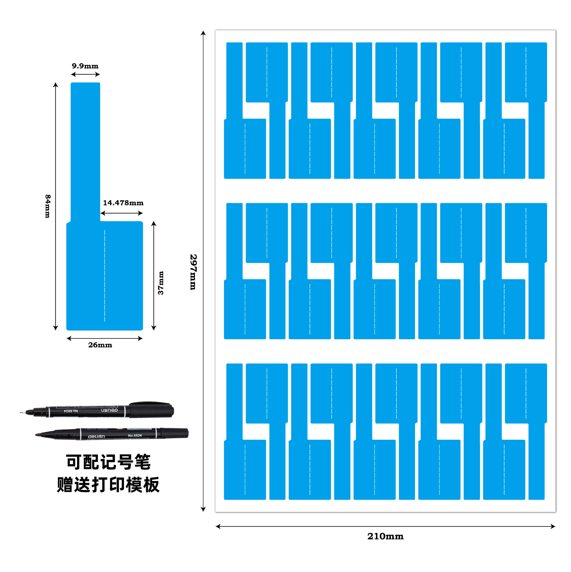 电缆不干胶贴纸防水防油通信机房电源线A4彩色P型线缆标签纸