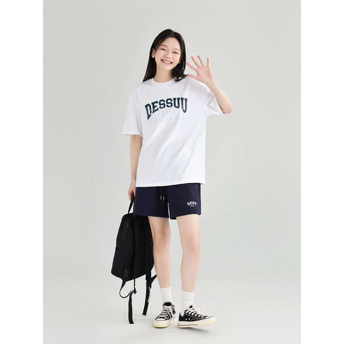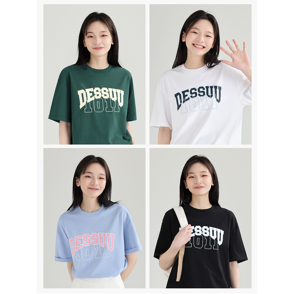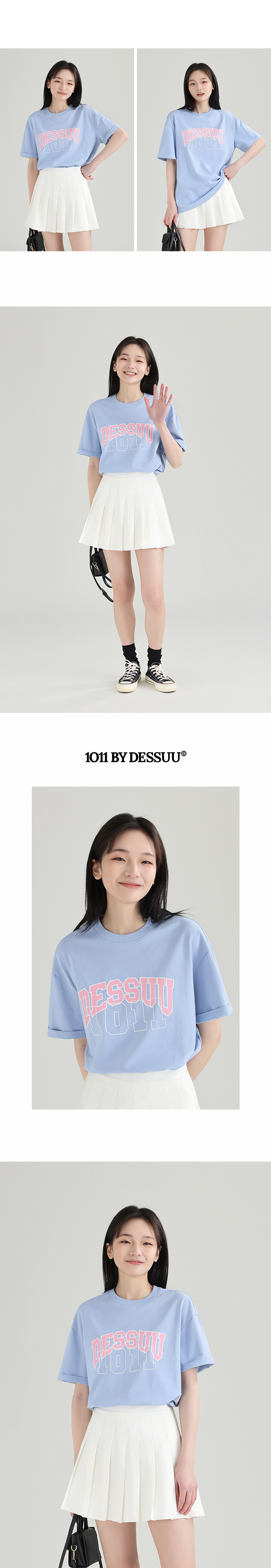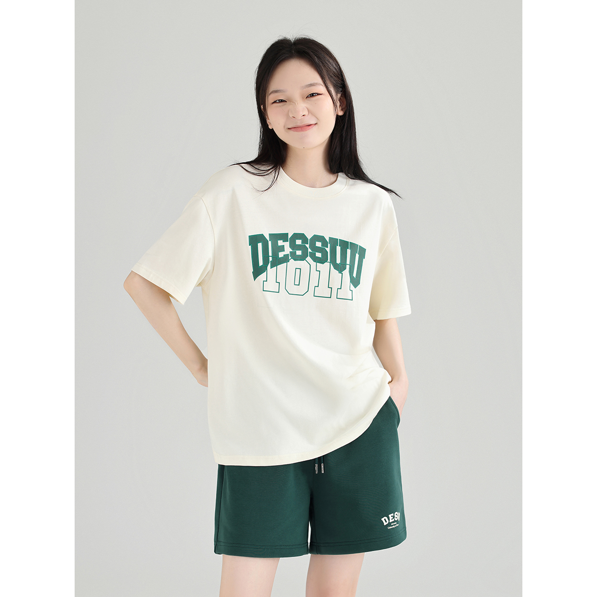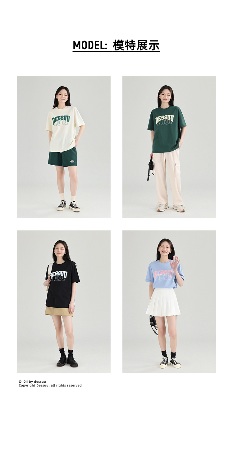 DESSUU 2023夏季新品字母印花圓領短袖T恤女學院風寬鬆休閒半袖t