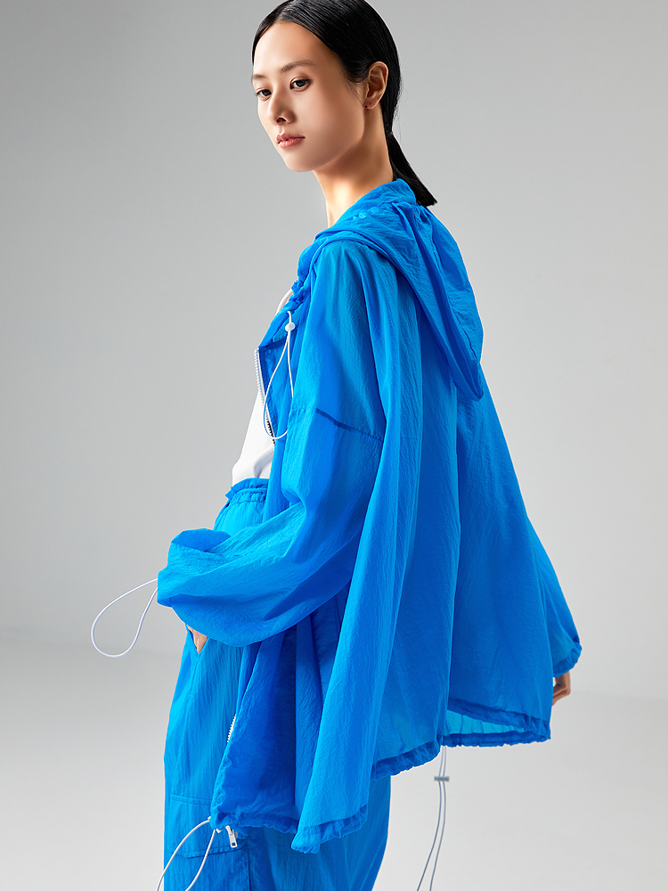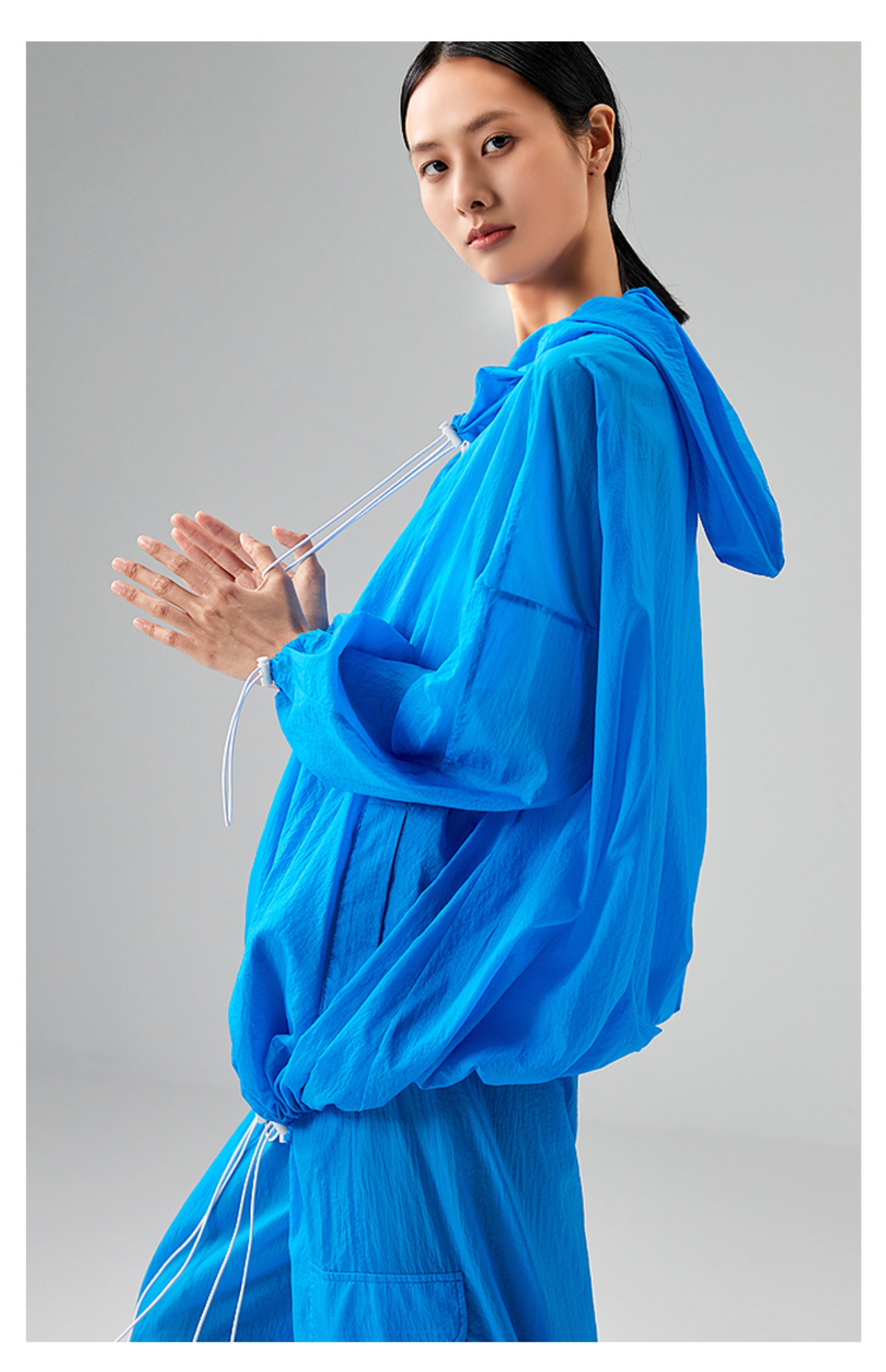 超薄輕超透氣時尚個性短夾克外套街頭運動戶外露營藍色防曬夾克02