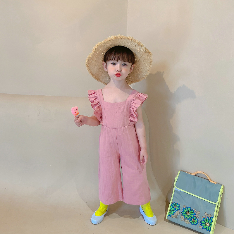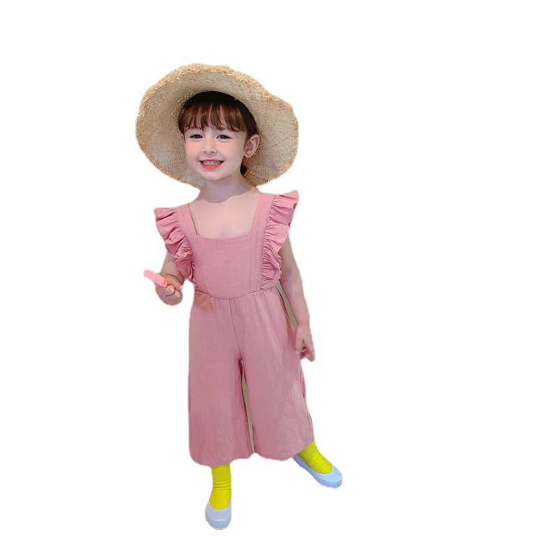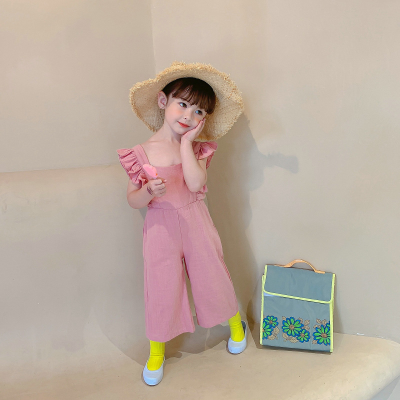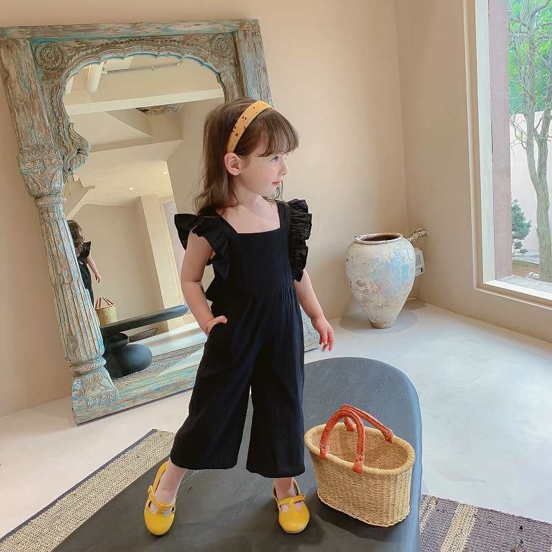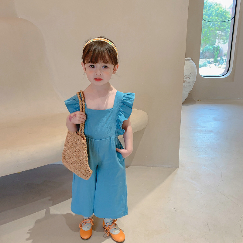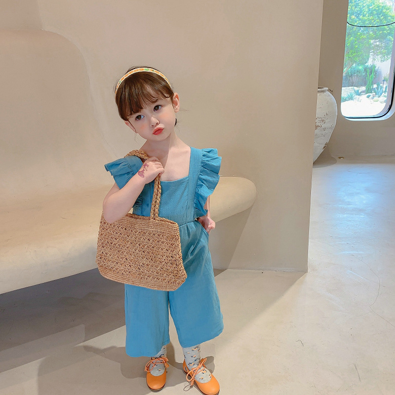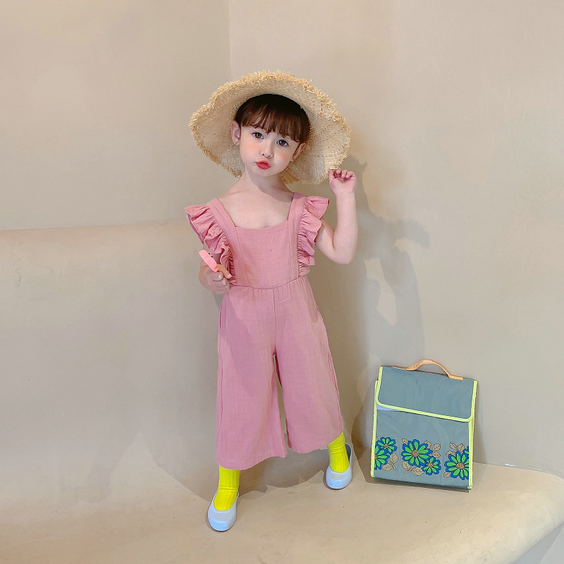洋气童连体衣2023夏季新款棉质女童韩版气质飞袖露背蝴蝶结连体裤