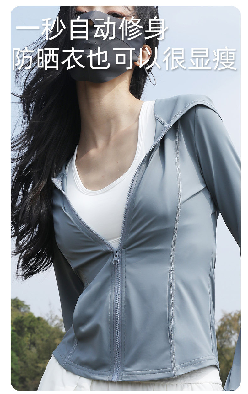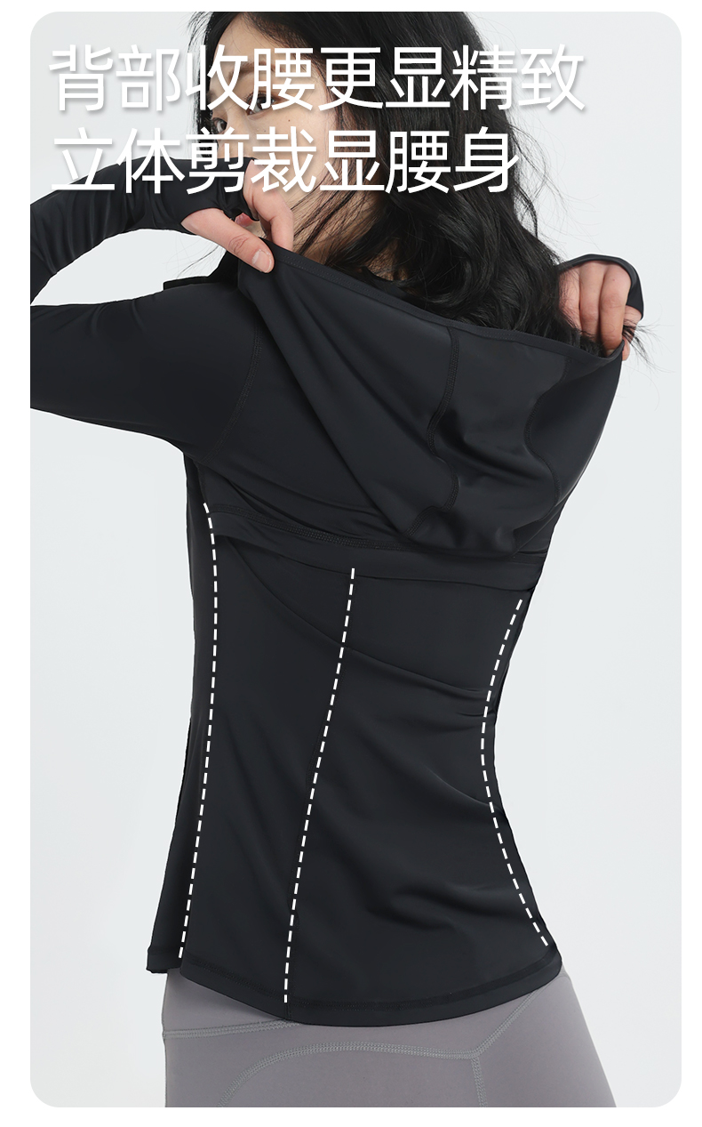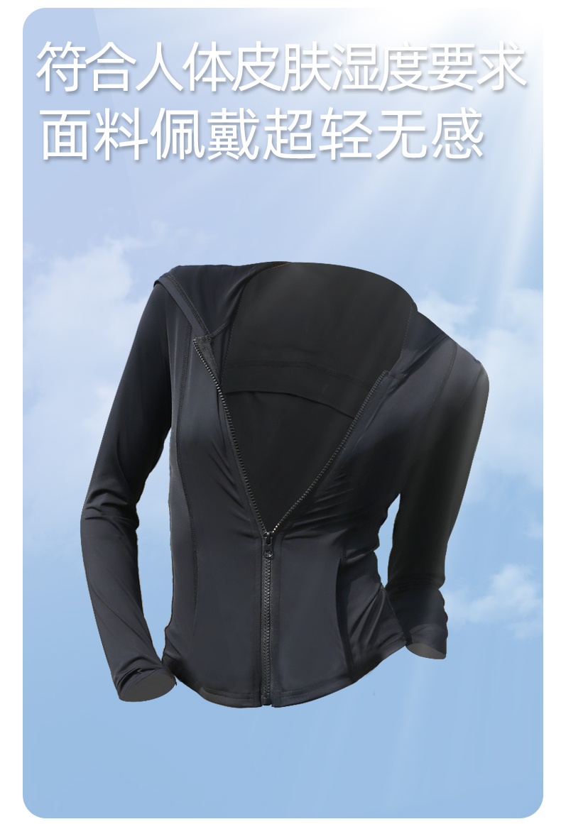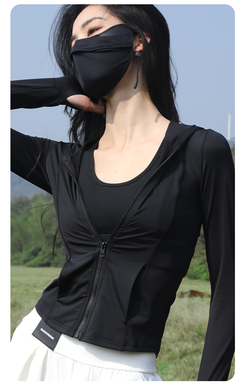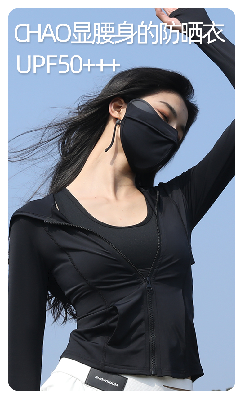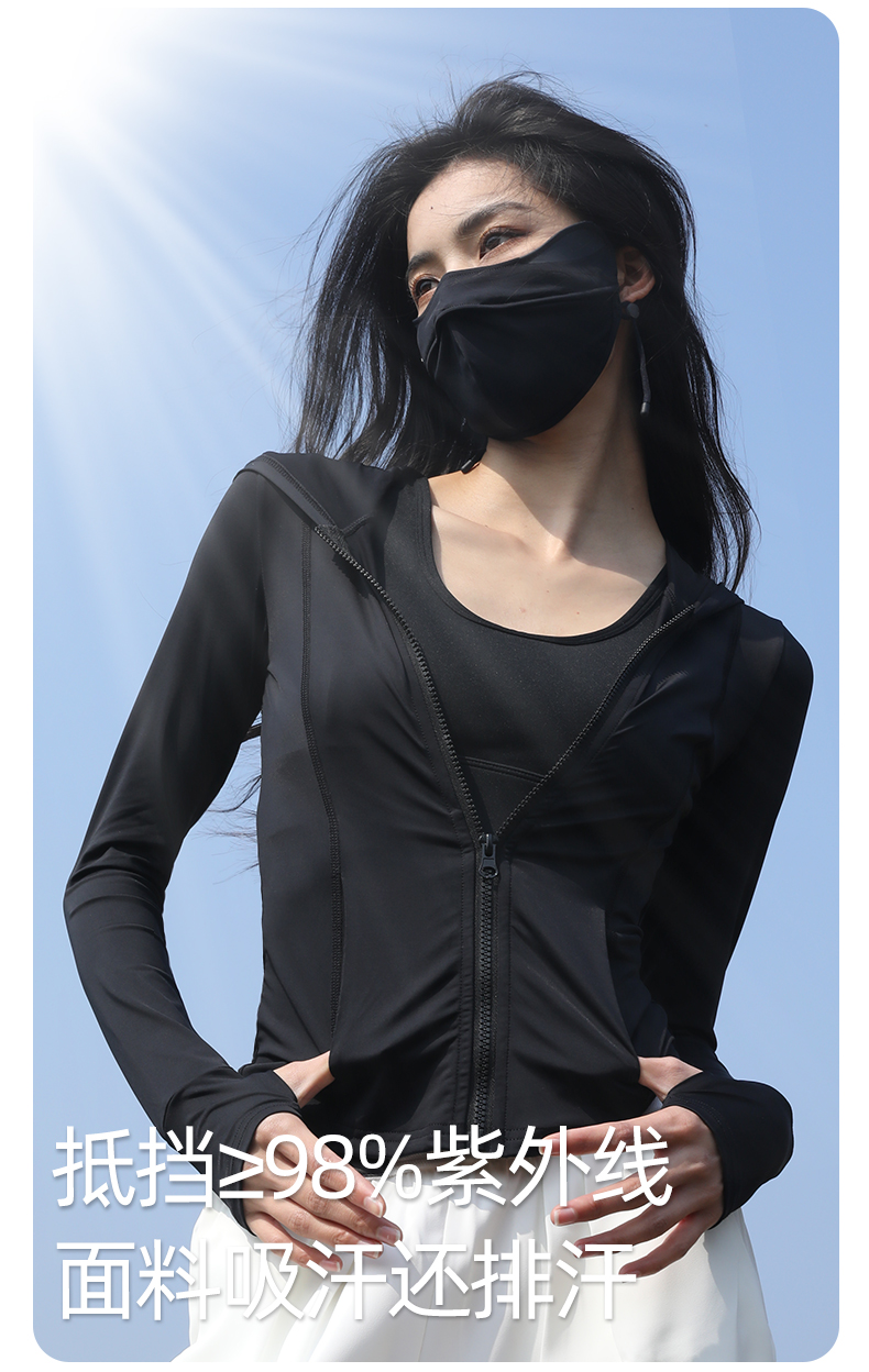 修身防曬衣女款收腰緊身防曬衣抗UV女防曬服套裝黑色防曬外套