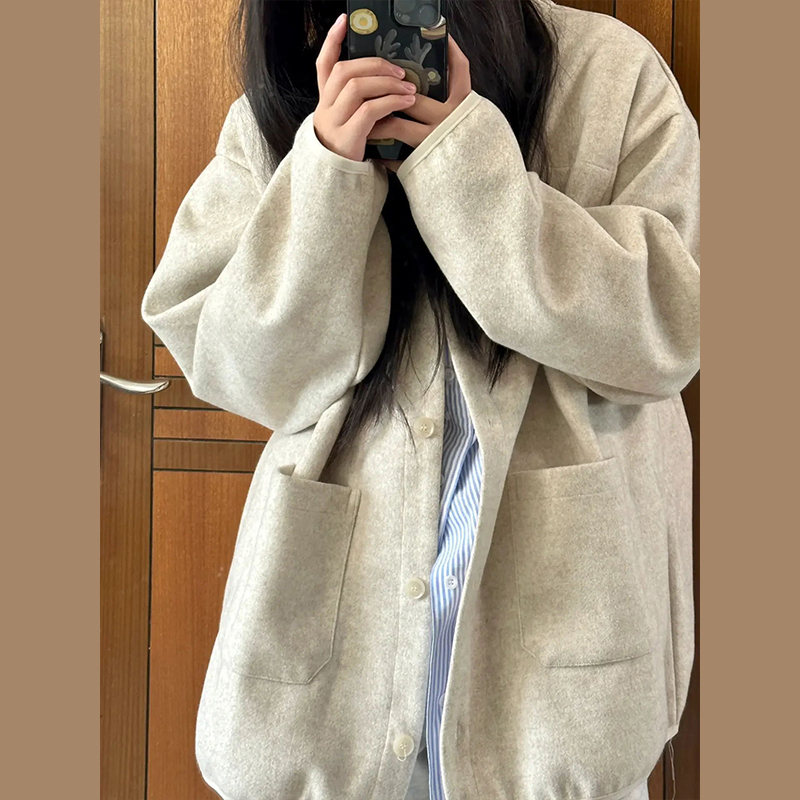 美式復古秋季薄款休閒厚棉外套女春秋2023新款爆款灰色高級感開衫