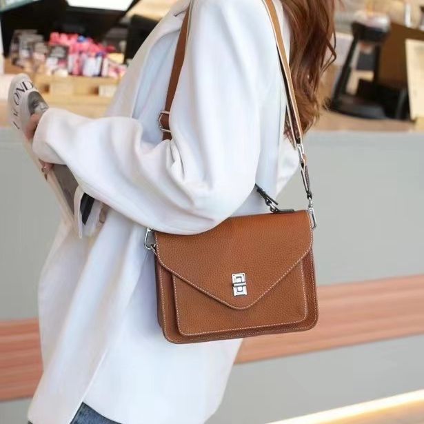 真皮手提包包女斜挎包质感邮差包女通勤小方包时尚潮流大牌爆款包