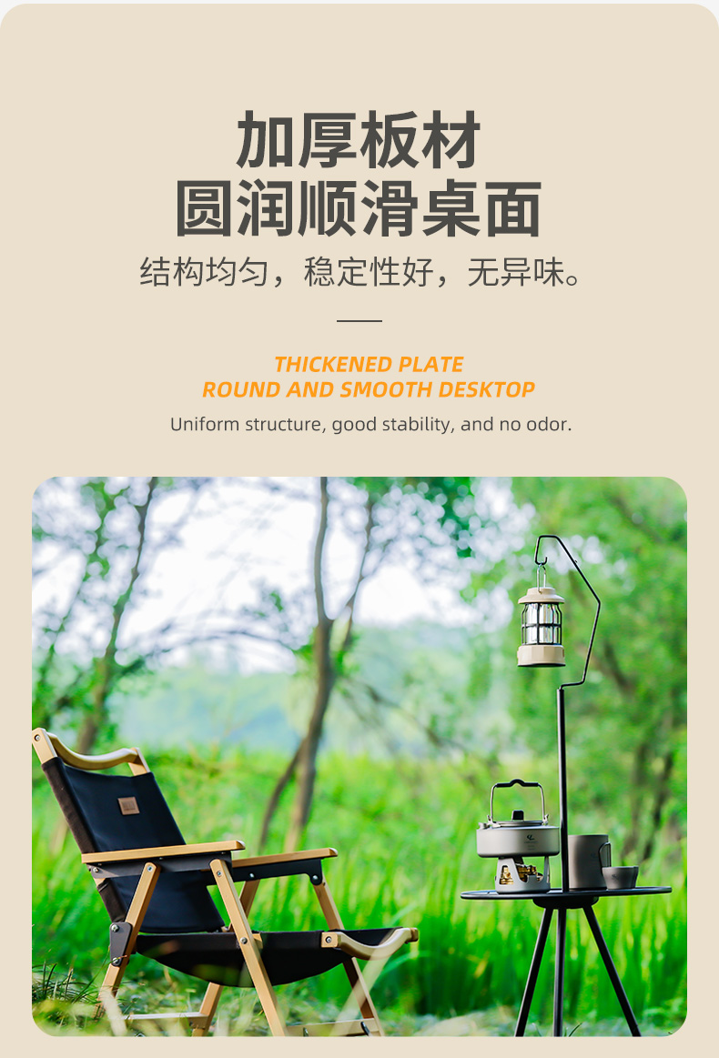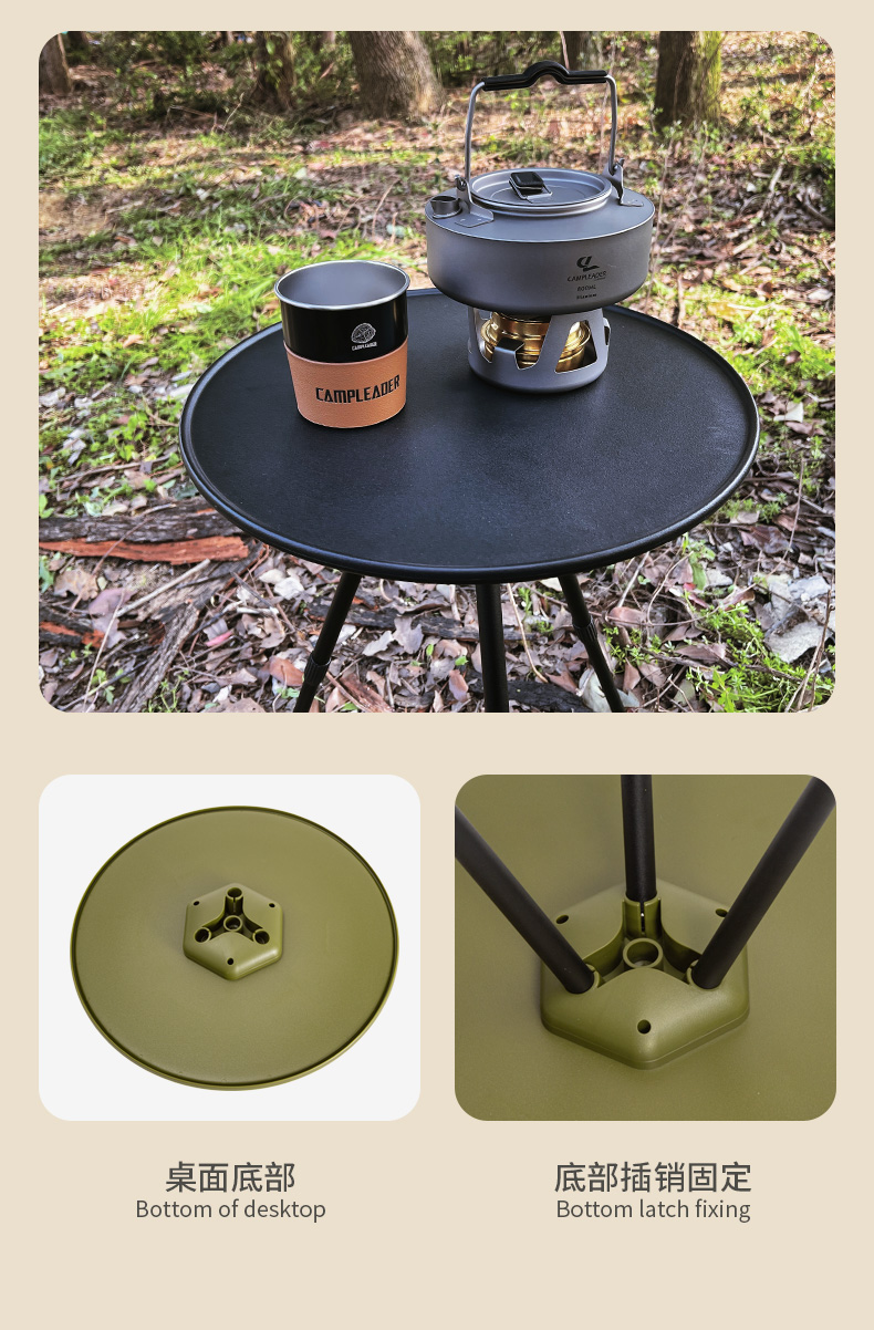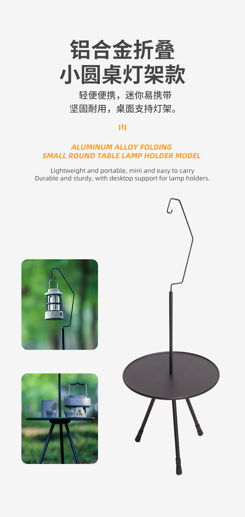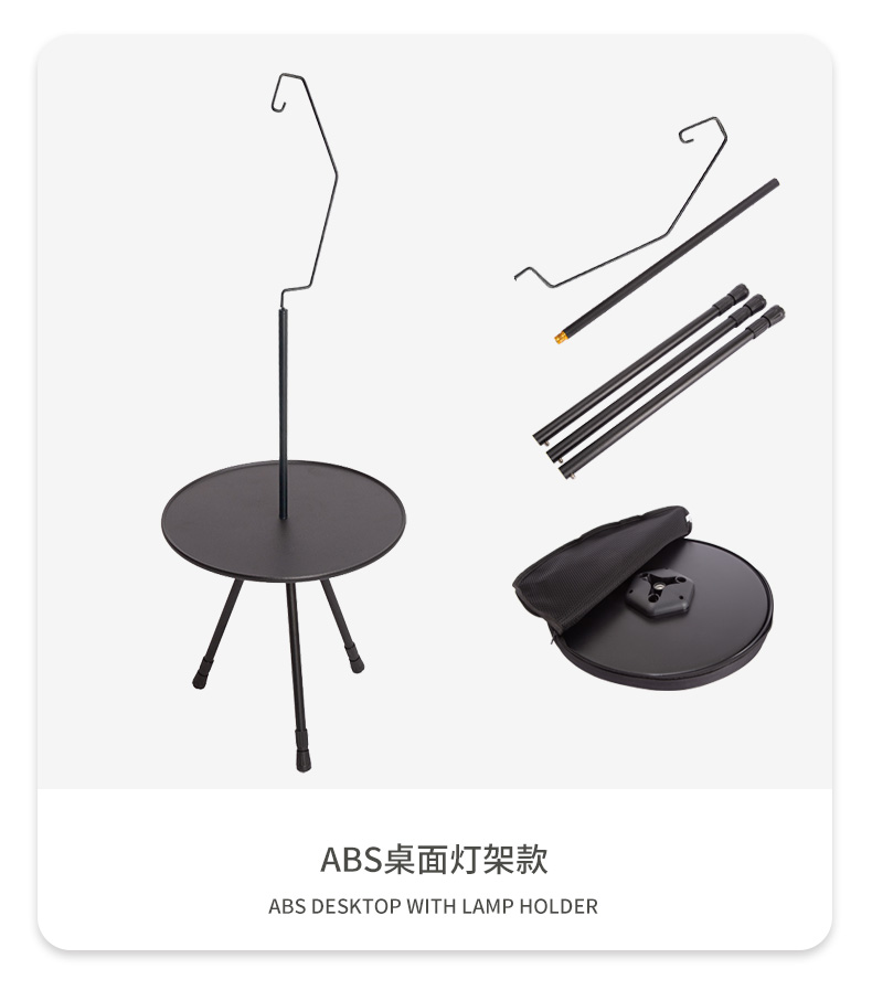 戶外露營野營鋁合金摺疊小桌子圓桌可升降黑色餐桌摩旅茶桌燈架