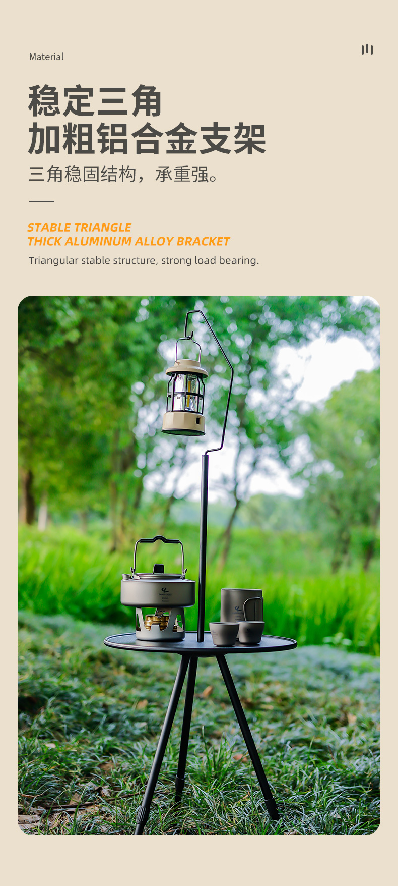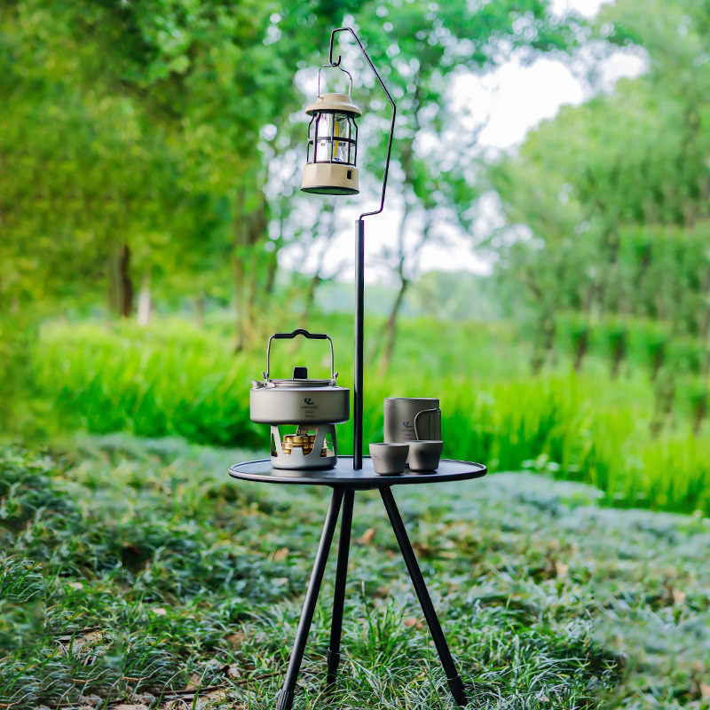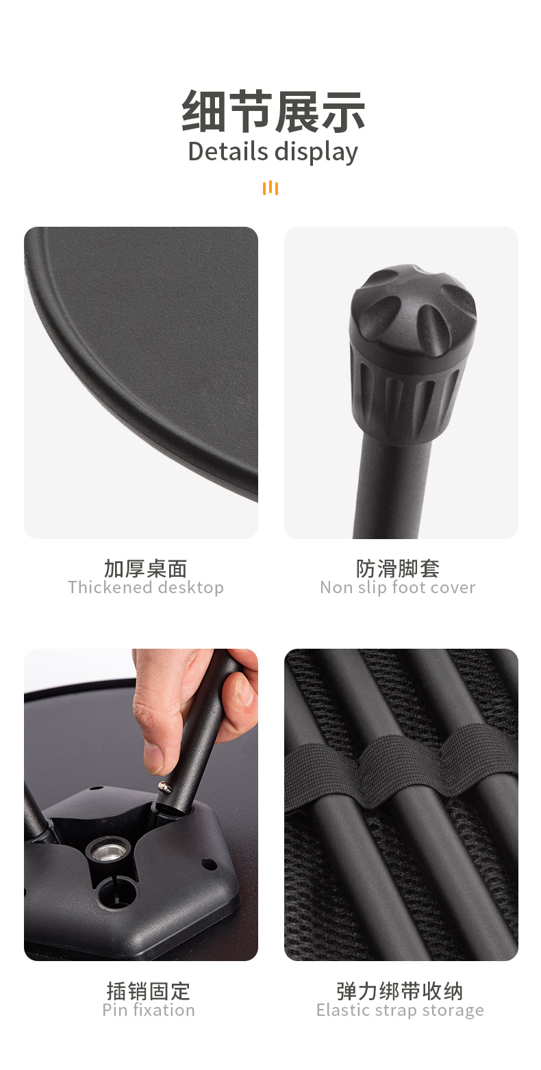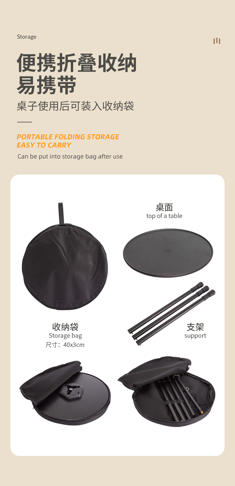 戶外露營野營鋁合金摺疊小桌子圓桌可升降黑色餐桌摩旅茶桌燈架