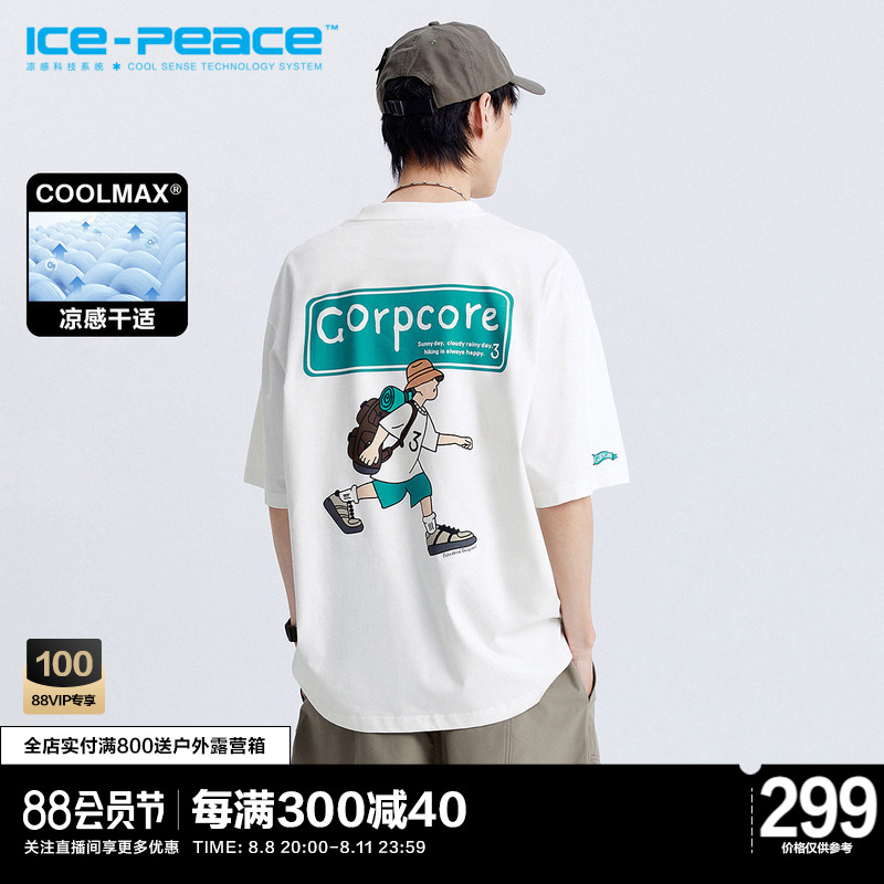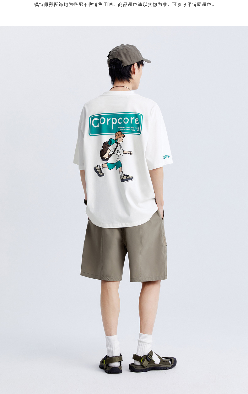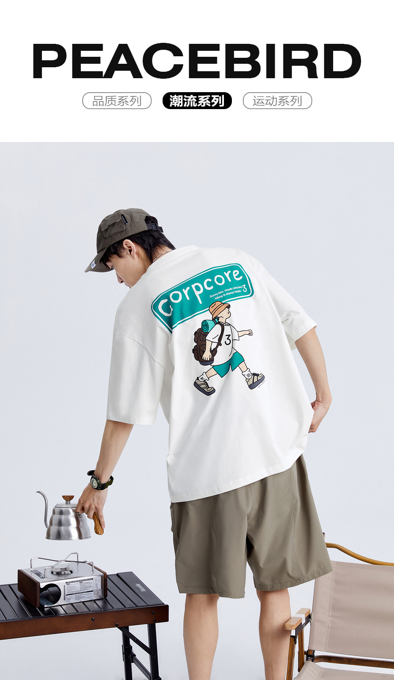【涼感】太平鳥男裝 夏季新款戶外小人印花短袖T恤B2DAD2119