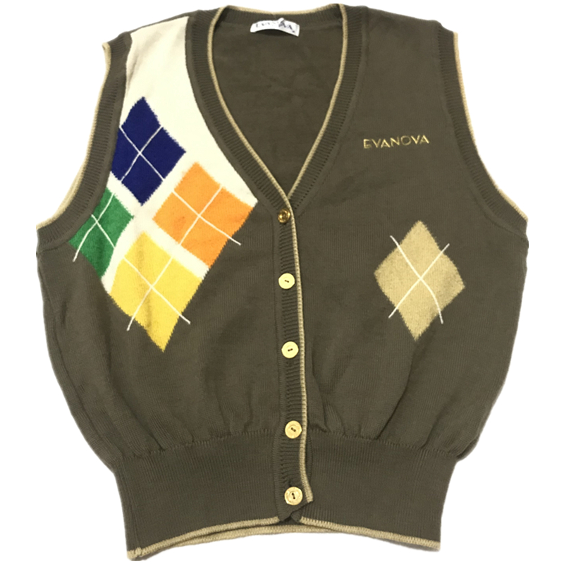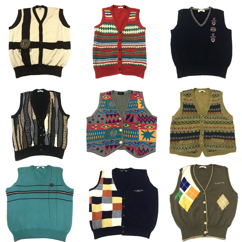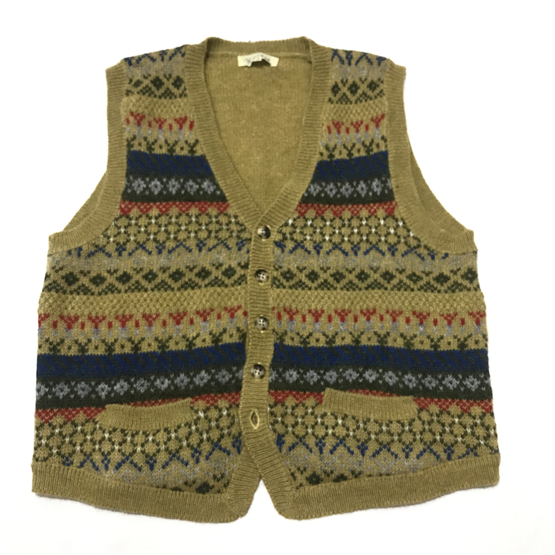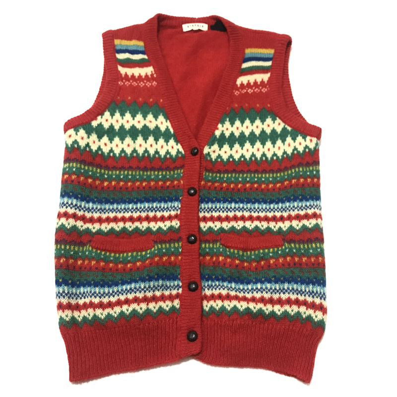 vintage古著孤品秋冬日系復古文藝學院風背心馬甲套頭開衫毛衣34