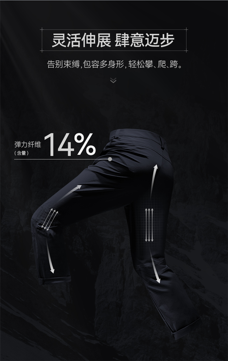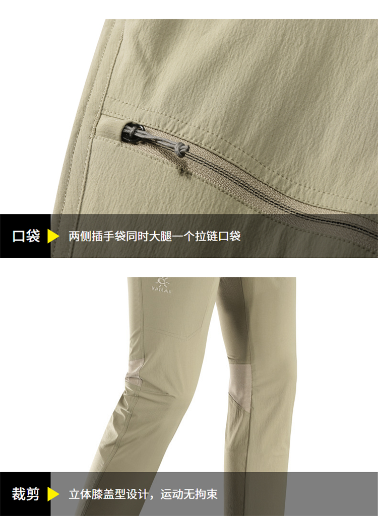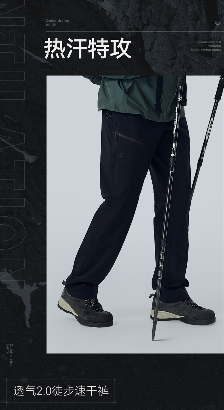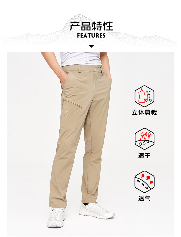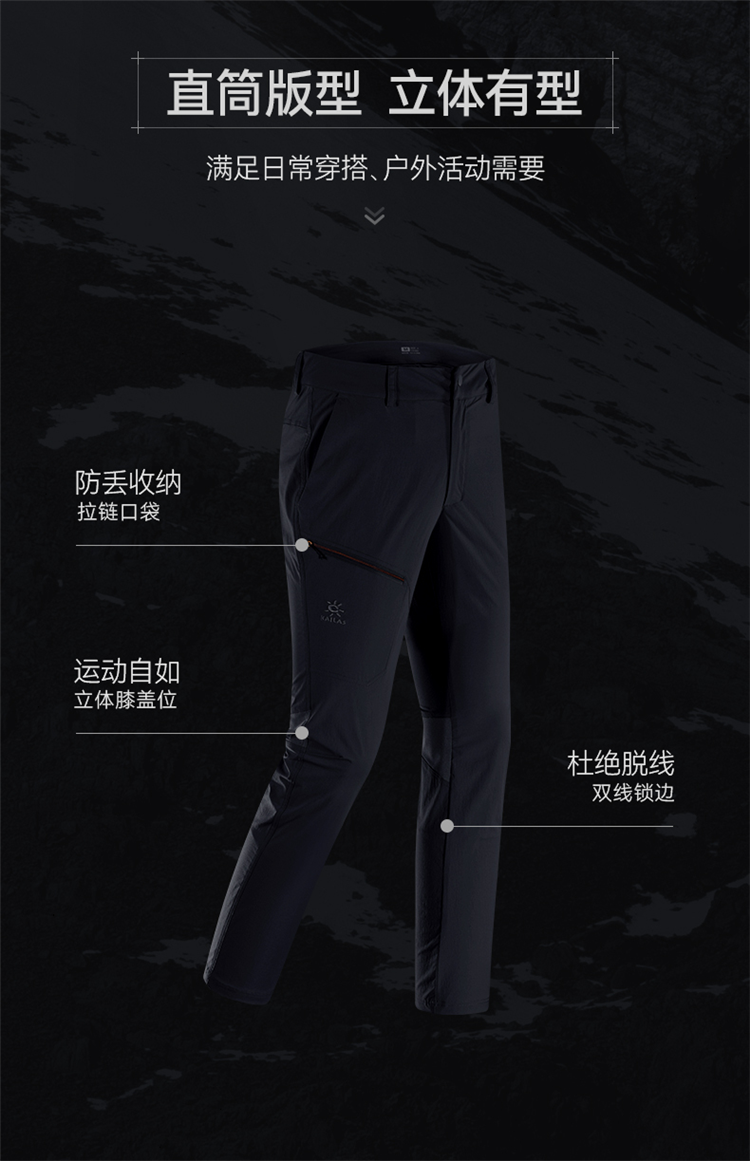 凱樂石速乾褲男士春季戶外防水透氣運動褲彈力直筒男褲KG2115705A