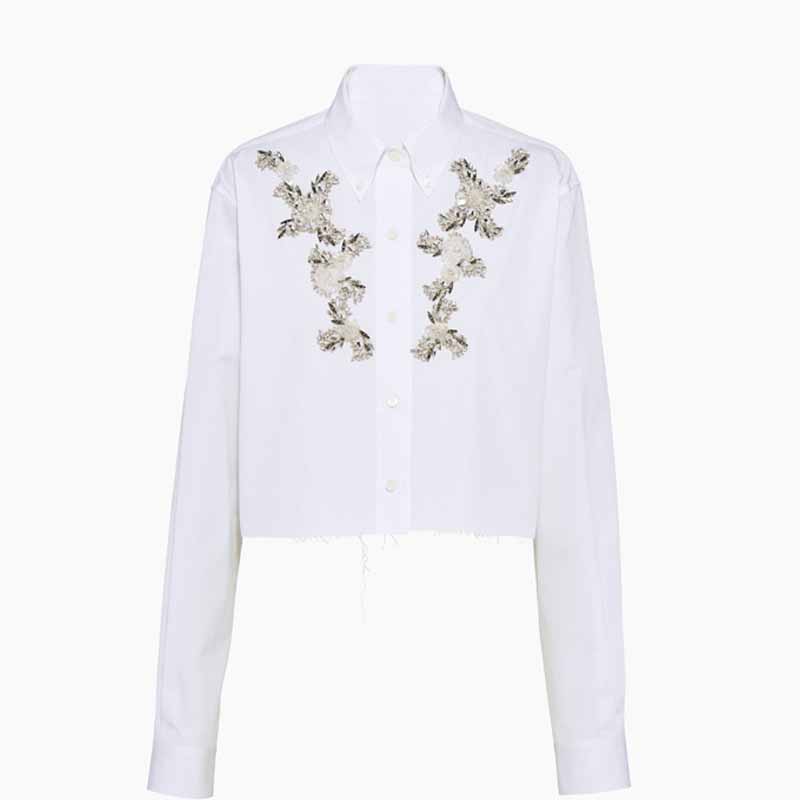 白色長袖襯衫女秋裝2023年新款甜美高級感設計感小眾重工釘珠上衣