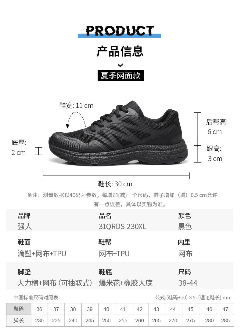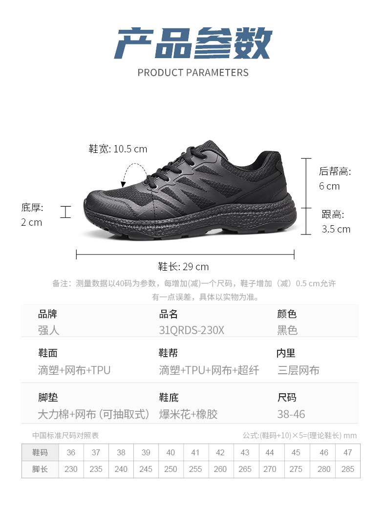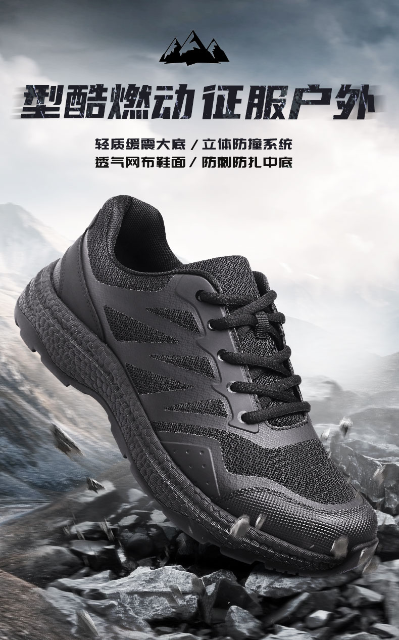 強人3515新式訓練鞋男戶外黑色體能鞋運動休閒登山鞋防刺穿戰術鞋