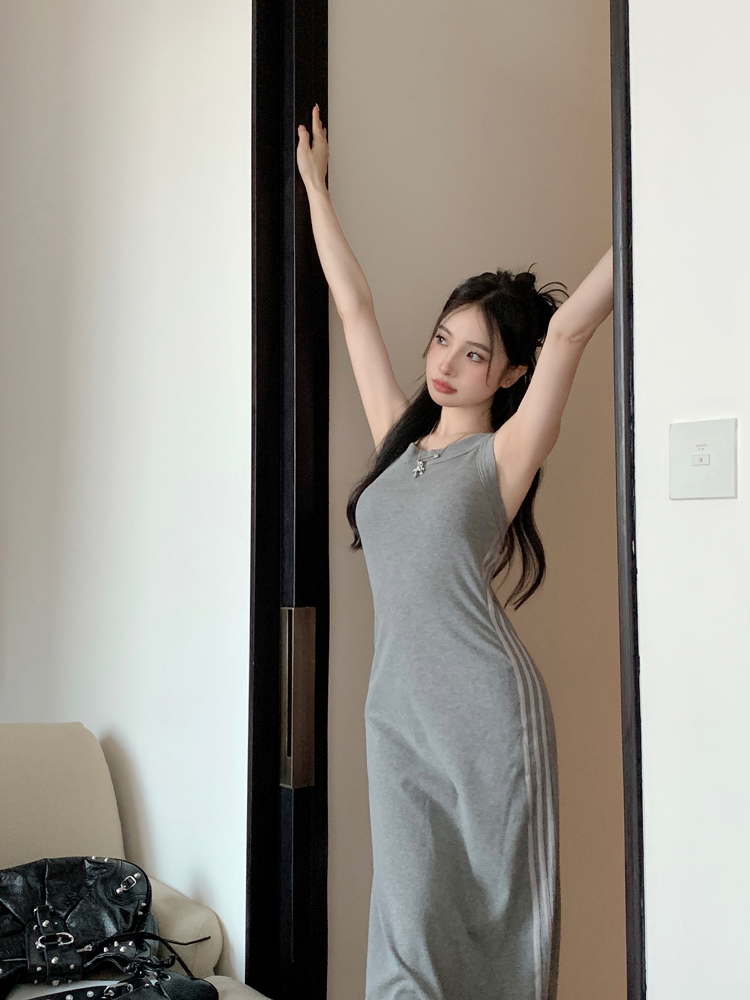SUN11 高級感露背長版洋裝女夏季2023新款修身顯瘦氣質長裙