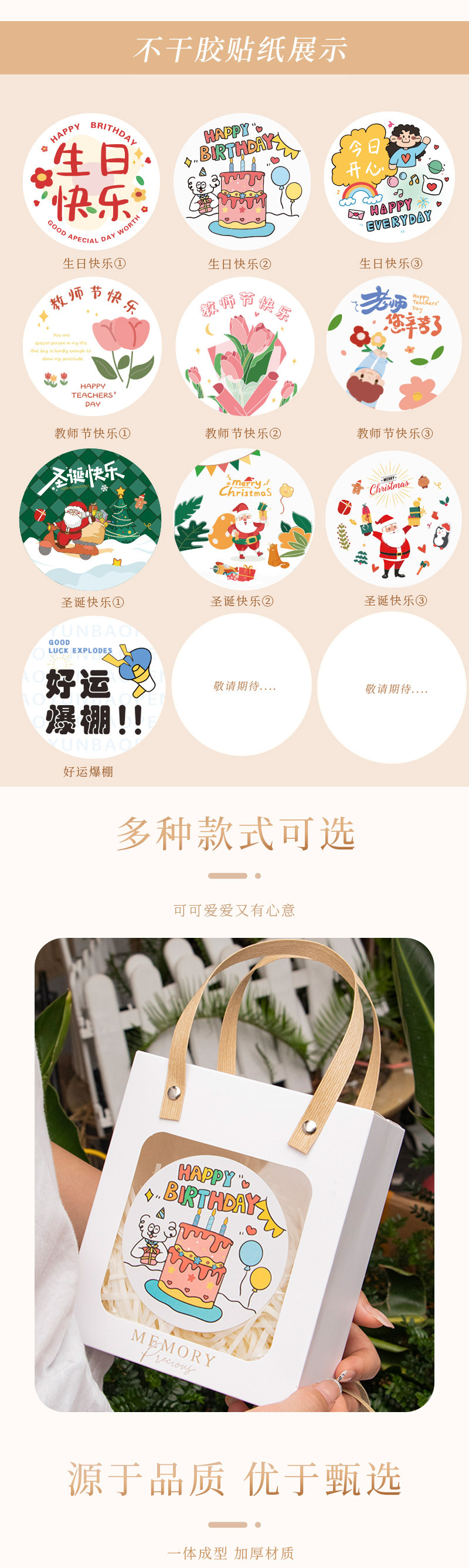 颜色 白色(裸盒),粉色(半成品),白色(半成品),墨绿色(半成品),粉色(裸盒),原木色(半成品),【圣诞节A款】,【圣诞节B款】,【今日开心】,【好运爆棚】,墨绿色(裸盒),原木色(裸盒),【教师节A款】,【生日款A款】,【生日款B款】,【圣诞节C款】,【教师节B款】,【教师节C款】