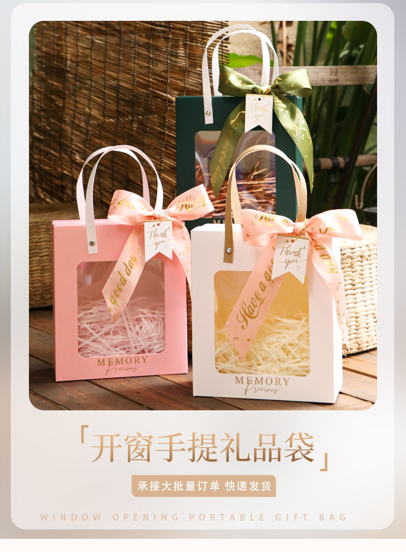 新款开窗手提袋礼品袋批发生日礼物袋纸袋子结婚礼品包装伴手礼袋
