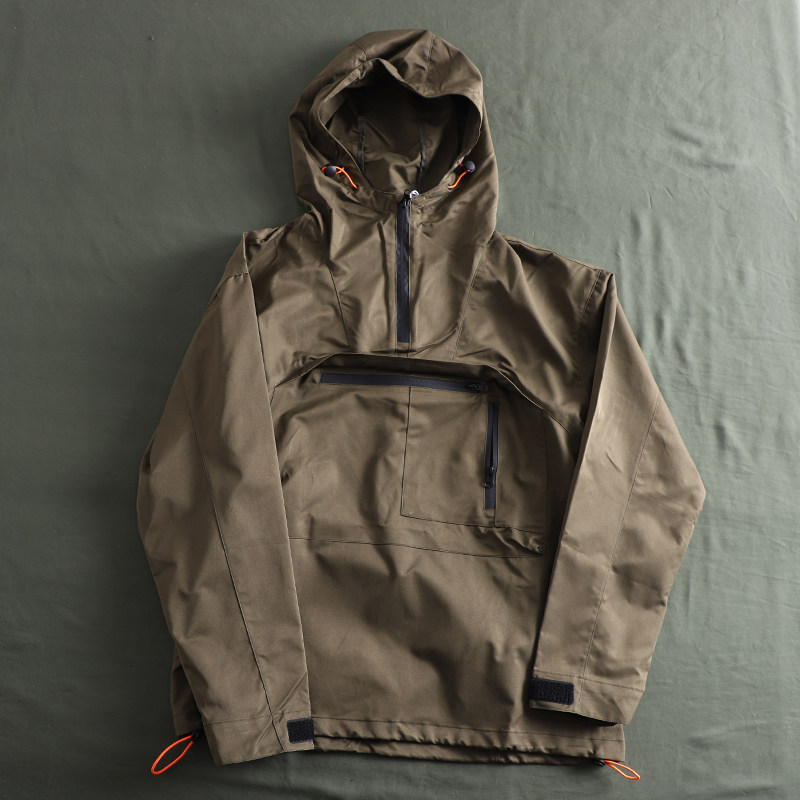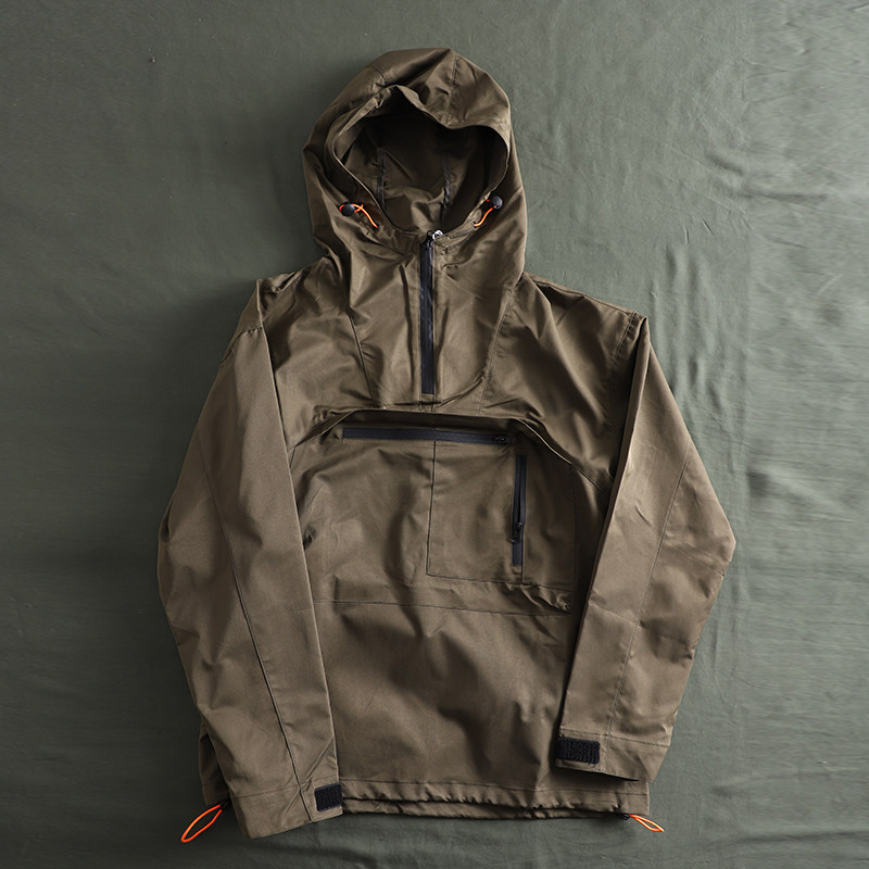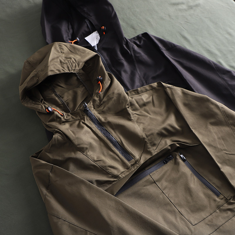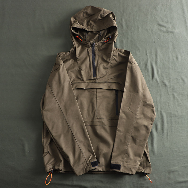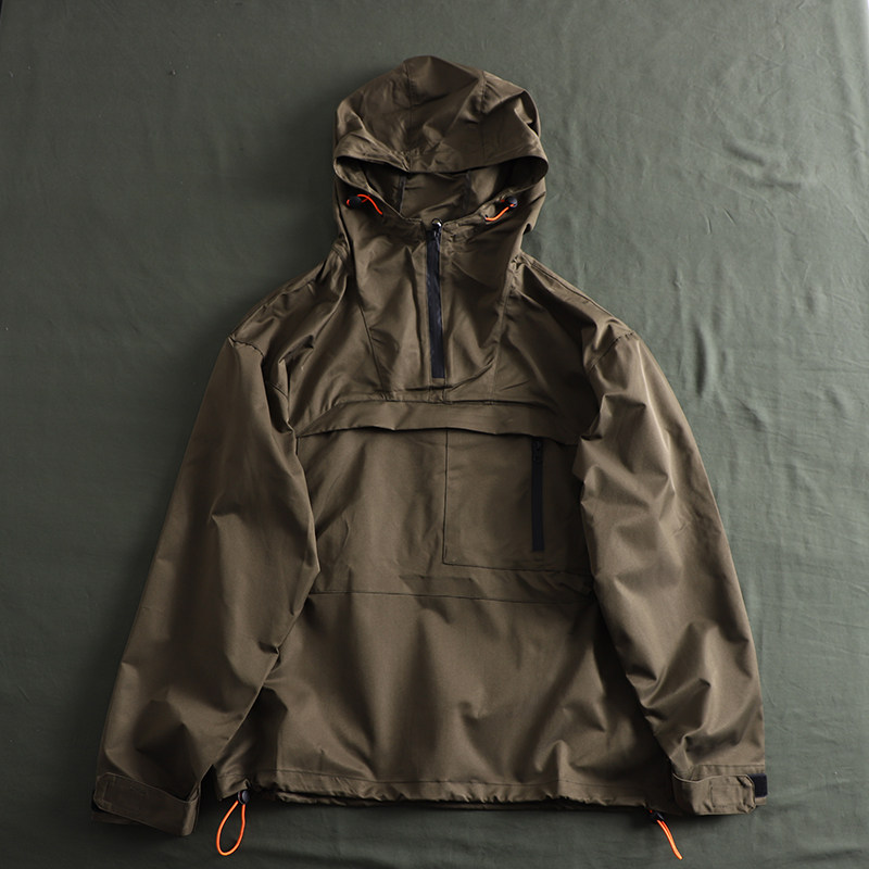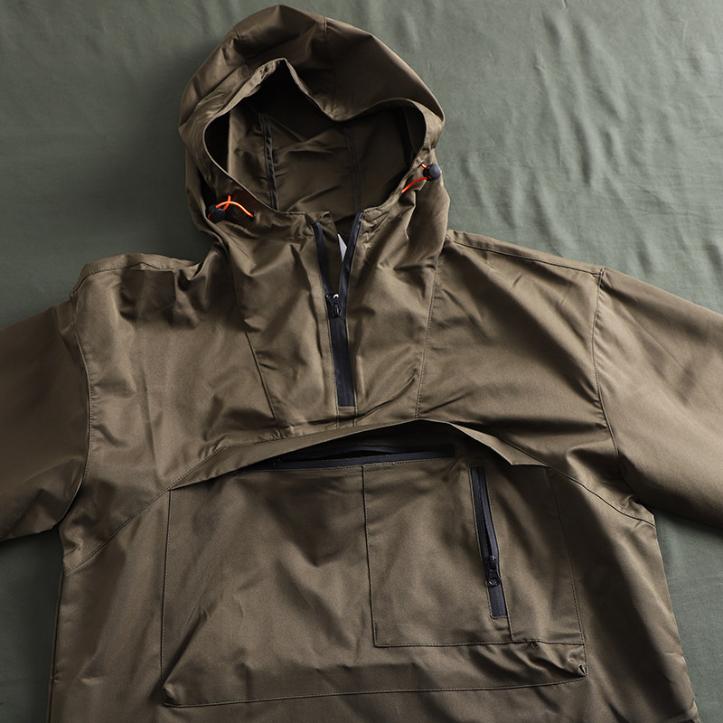 專業戶外機能衝鋒衣套頭連帽運動衫夾克薄款半拉鍊防風防雨男外套潮