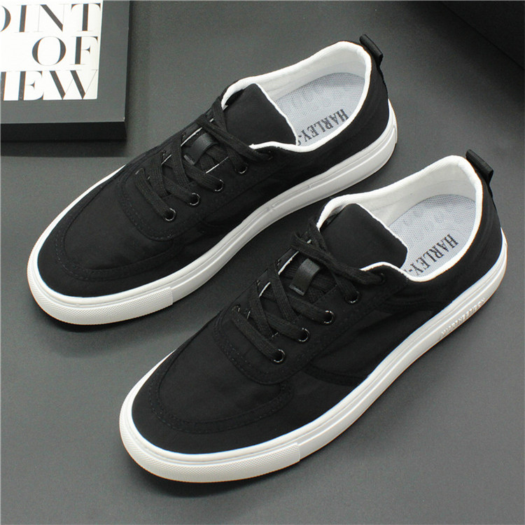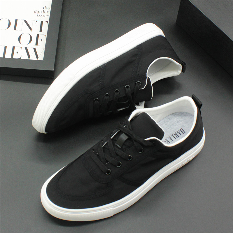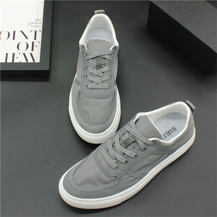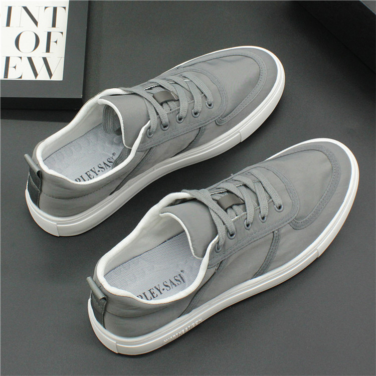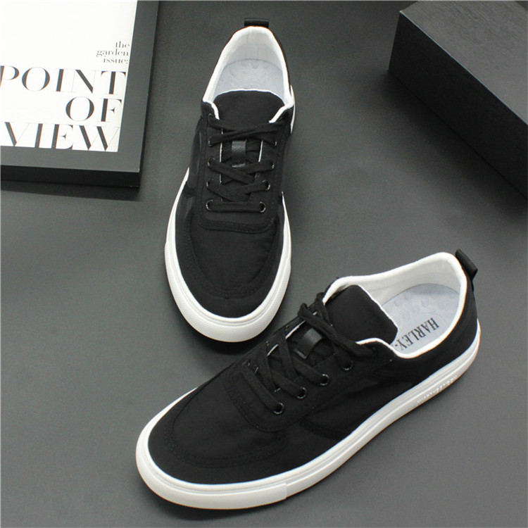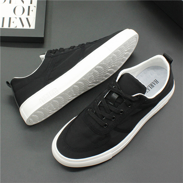 2023春季新款繫帶透氣帆布鞋子男士韓版休閒潮鞋低幫平底板鞋百搭