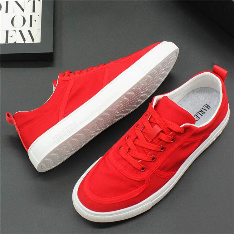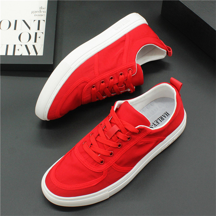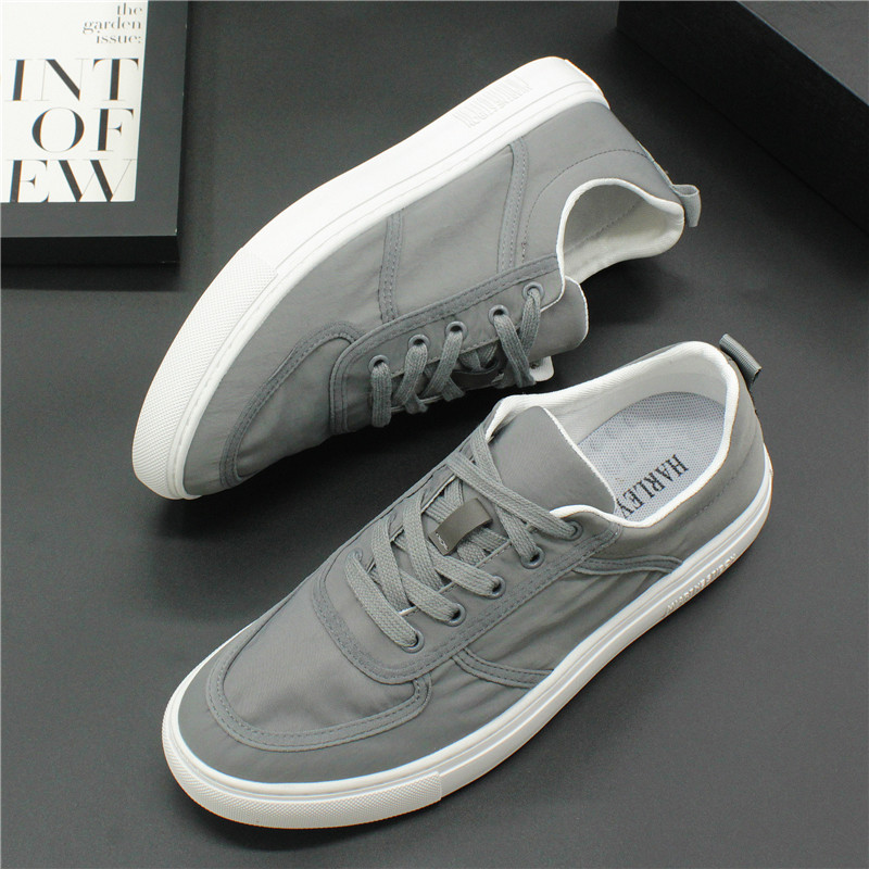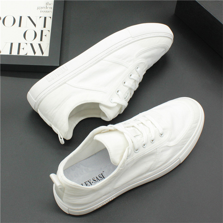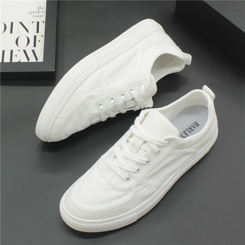 2023春季新款繫帶透氣帆布鞋子男士韓版休閒潮鞋低幫平底板鞋百搭