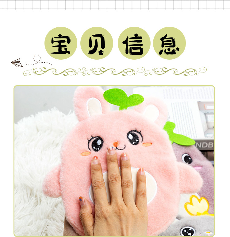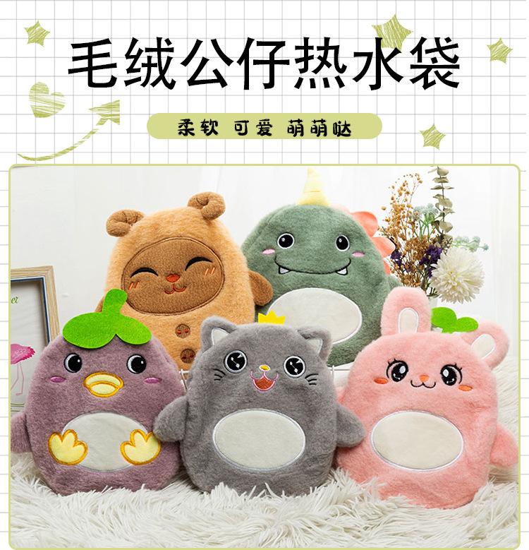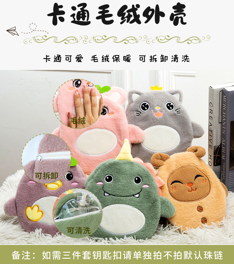 可爱大号绒布热水袋 pvc内胆女学生注水暖手袋 卡通加绒暖水袋套