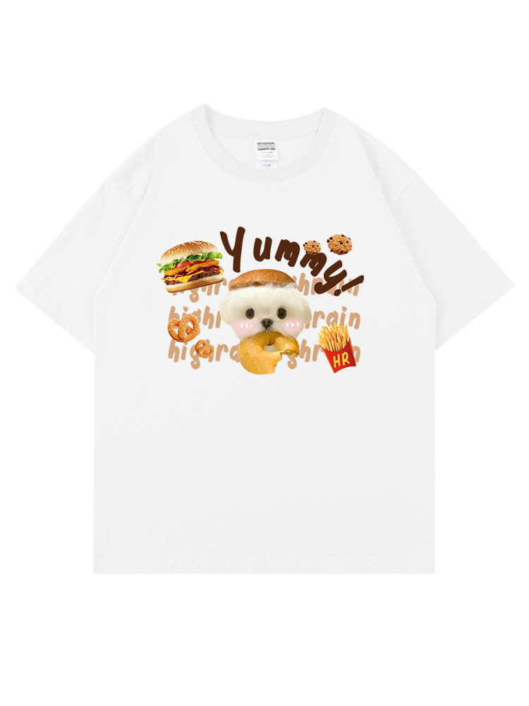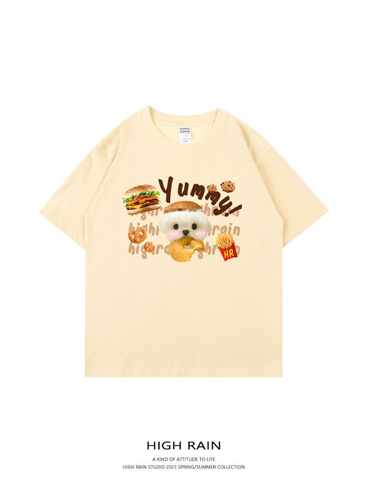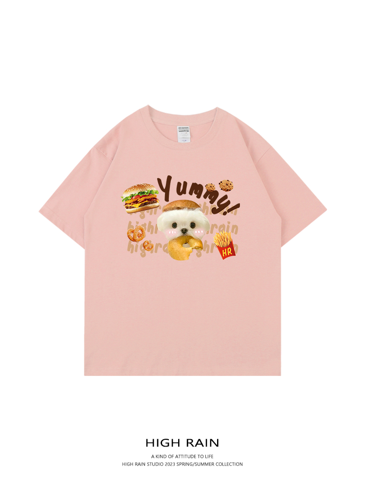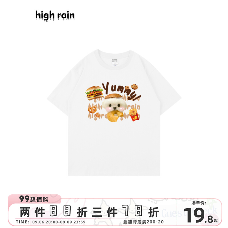 high rain 可愛貪吃狗狗休閒短袖男女白色T恤卡通可愛情侶上衣夏