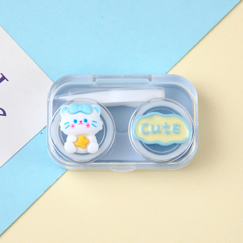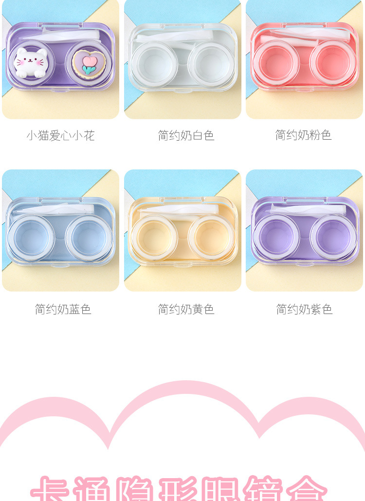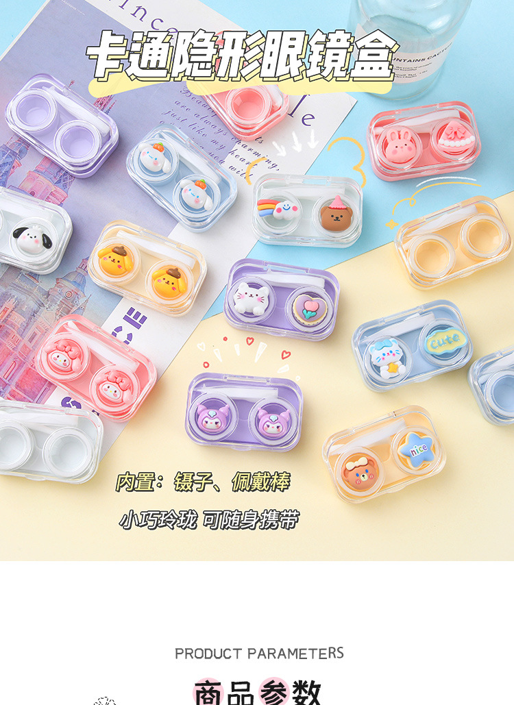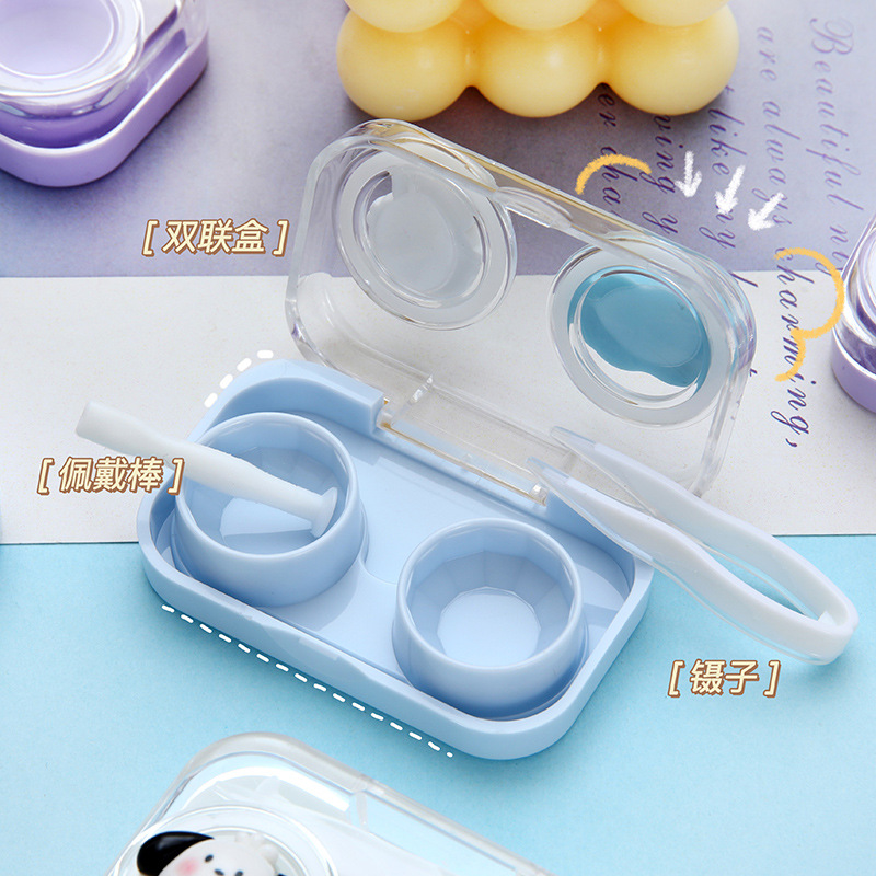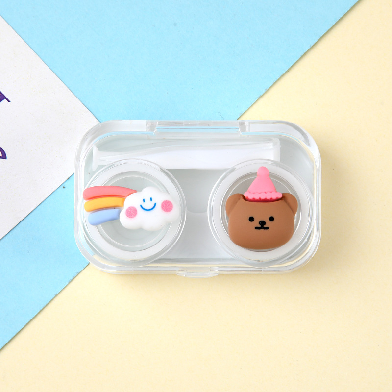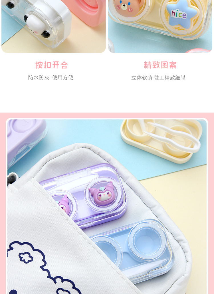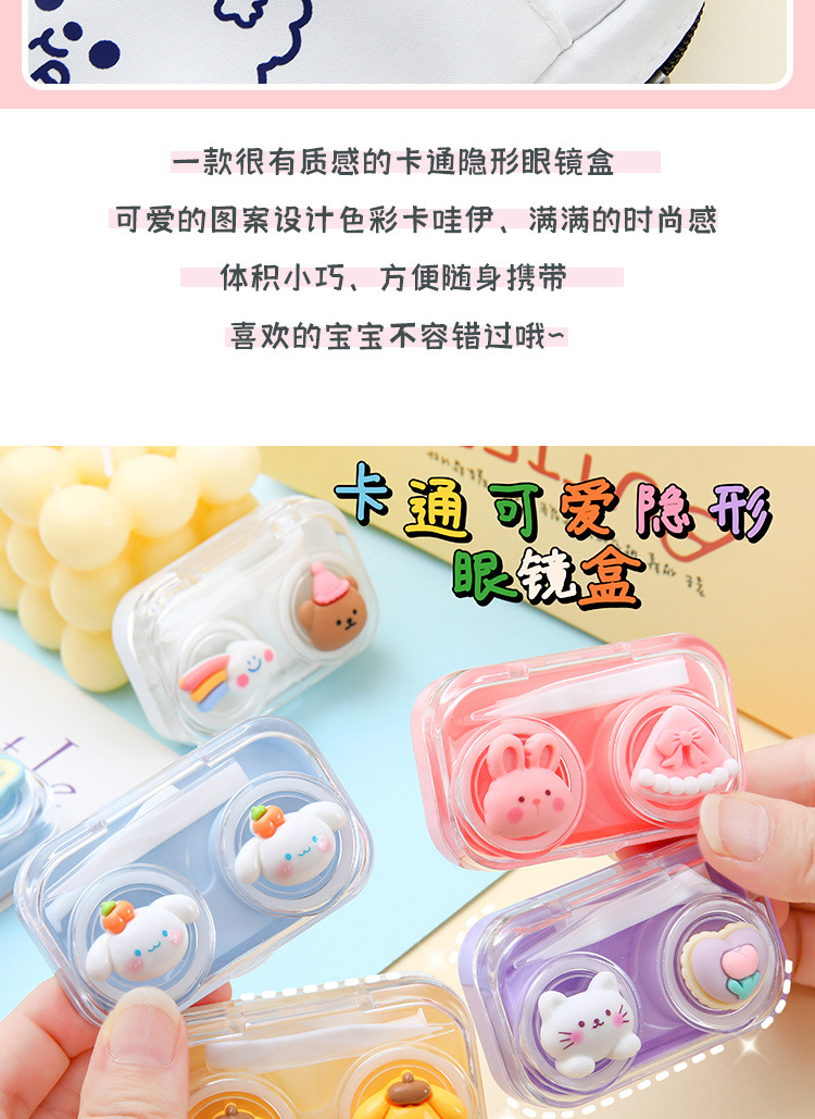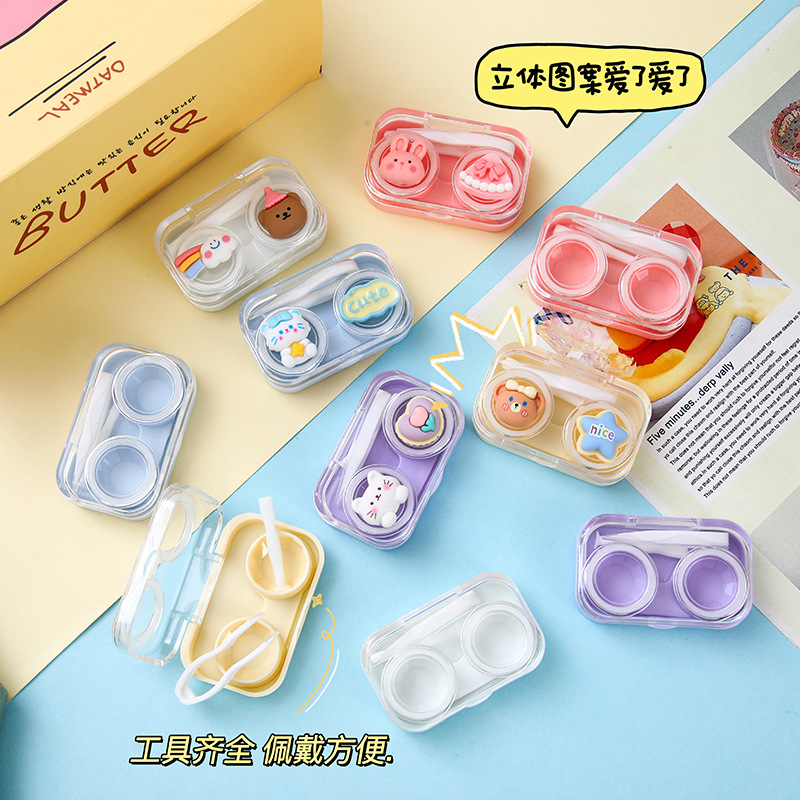 美瞳隐形眼镜盒创意透明可视可爱卡通细闪立体装饰隐形眼镜伴侣盒