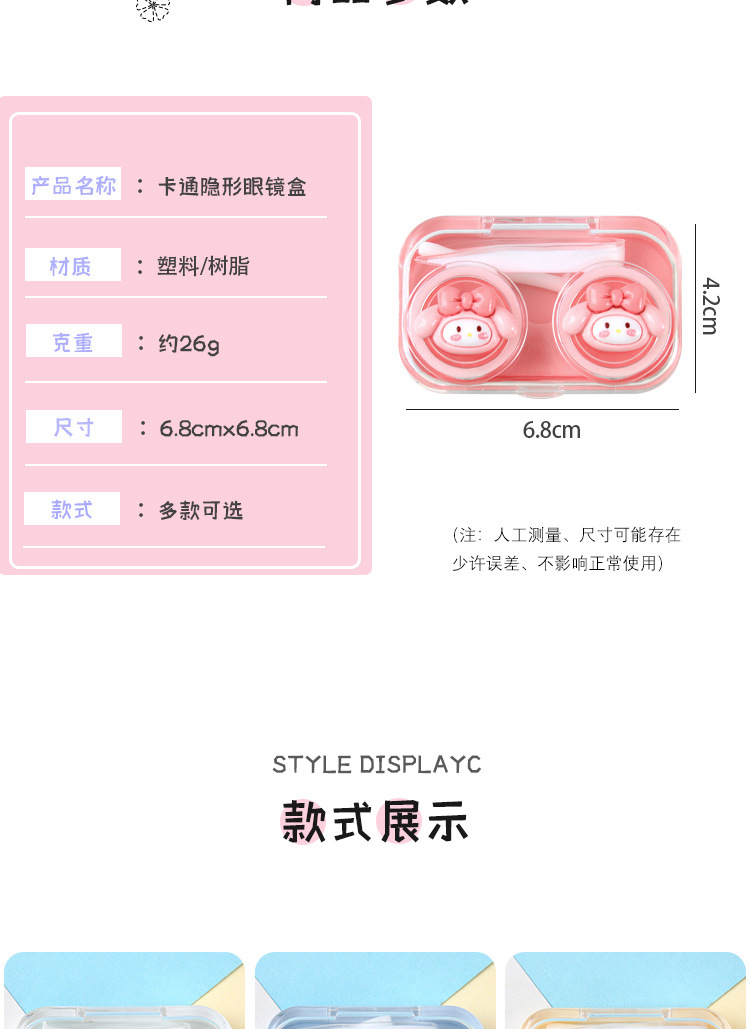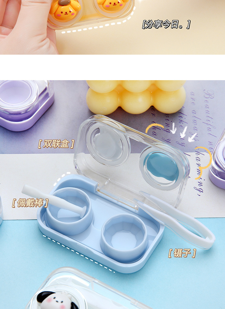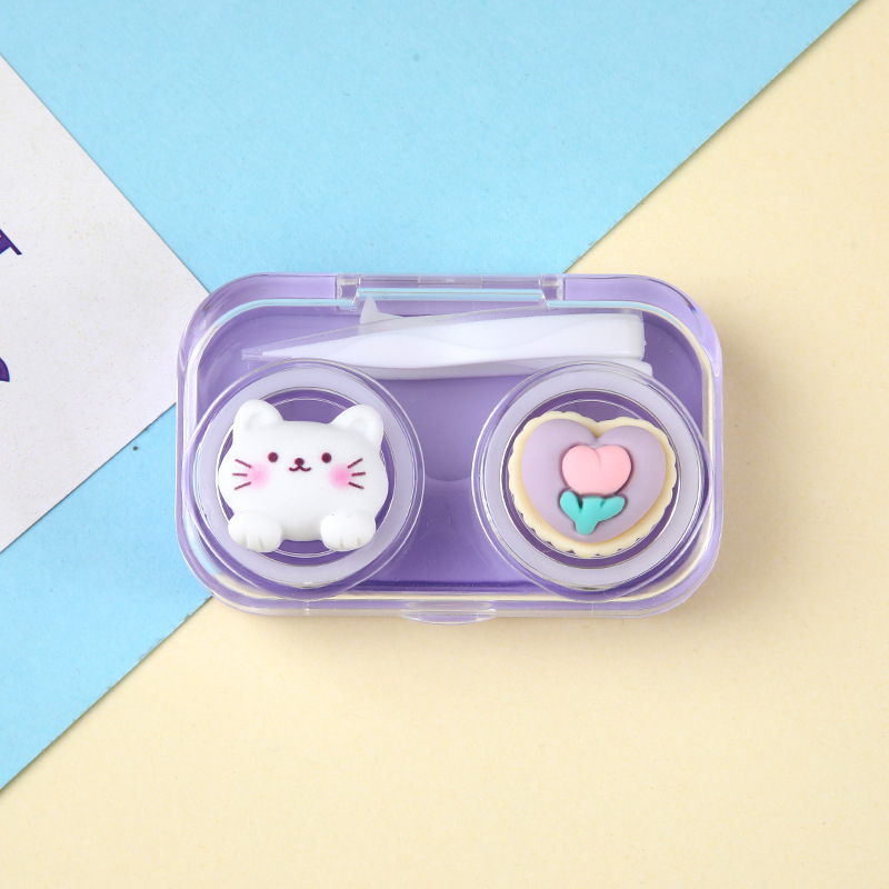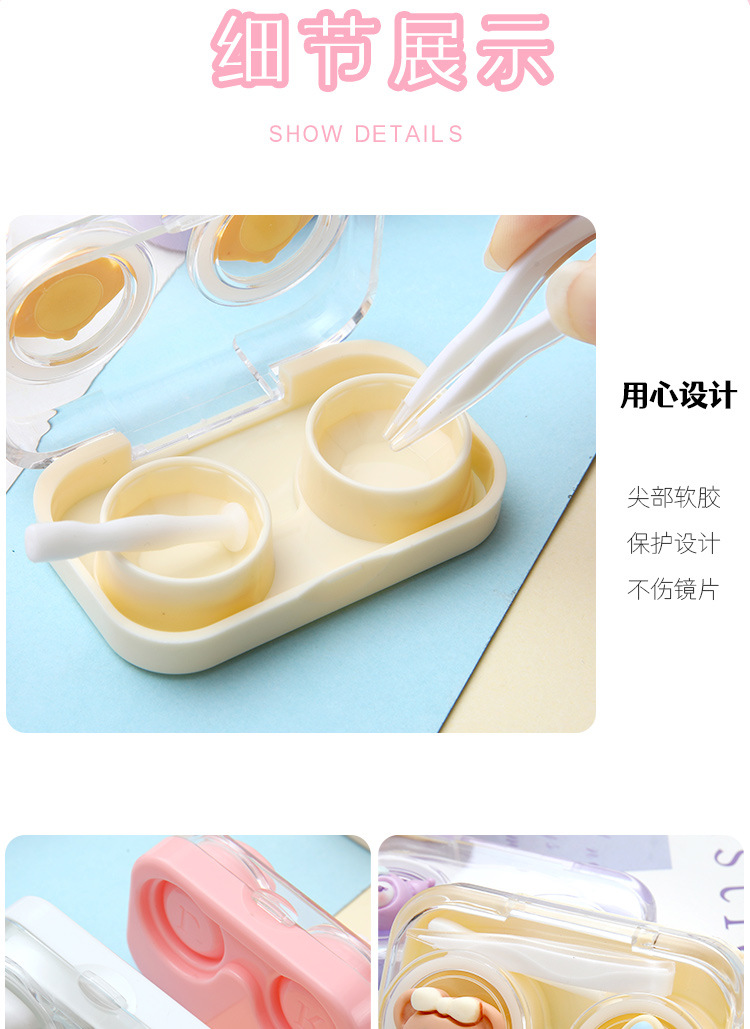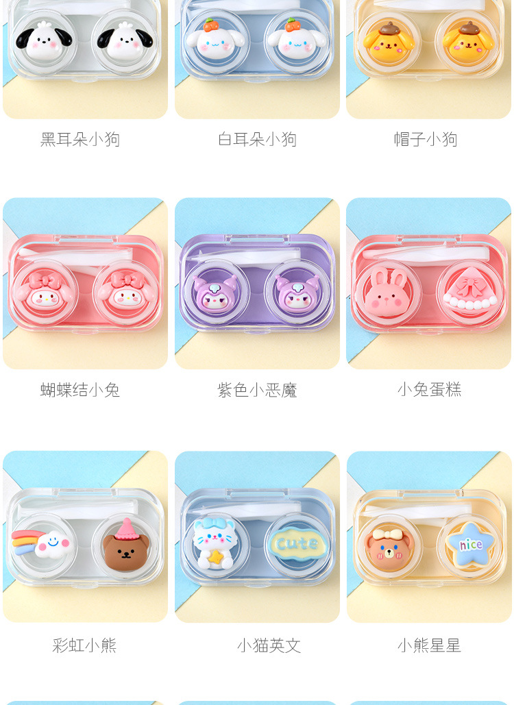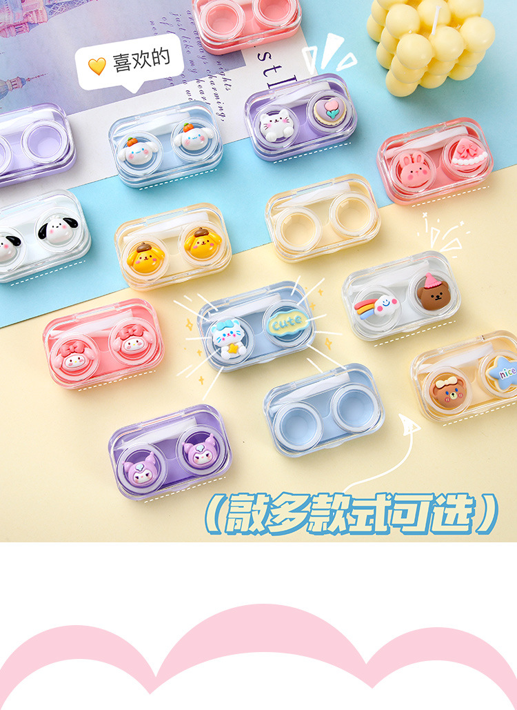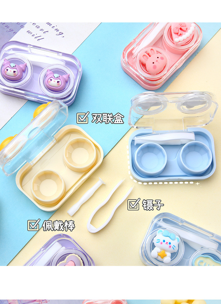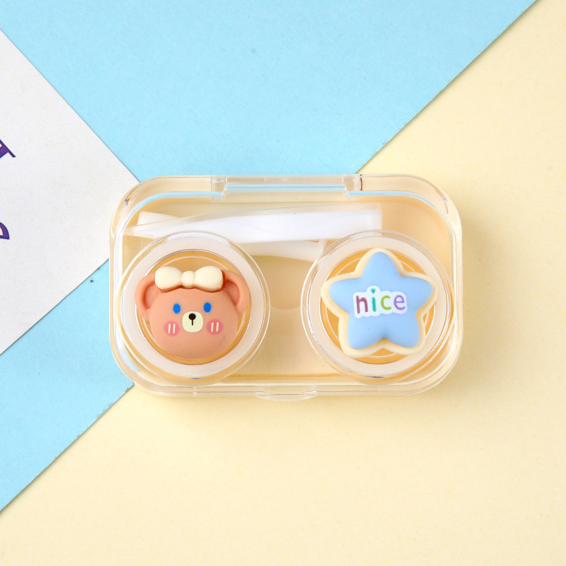美瞳隐形眼镜盒创意透明可视可爱卡通细闪立体装饰隐形眼镜伴侣盒