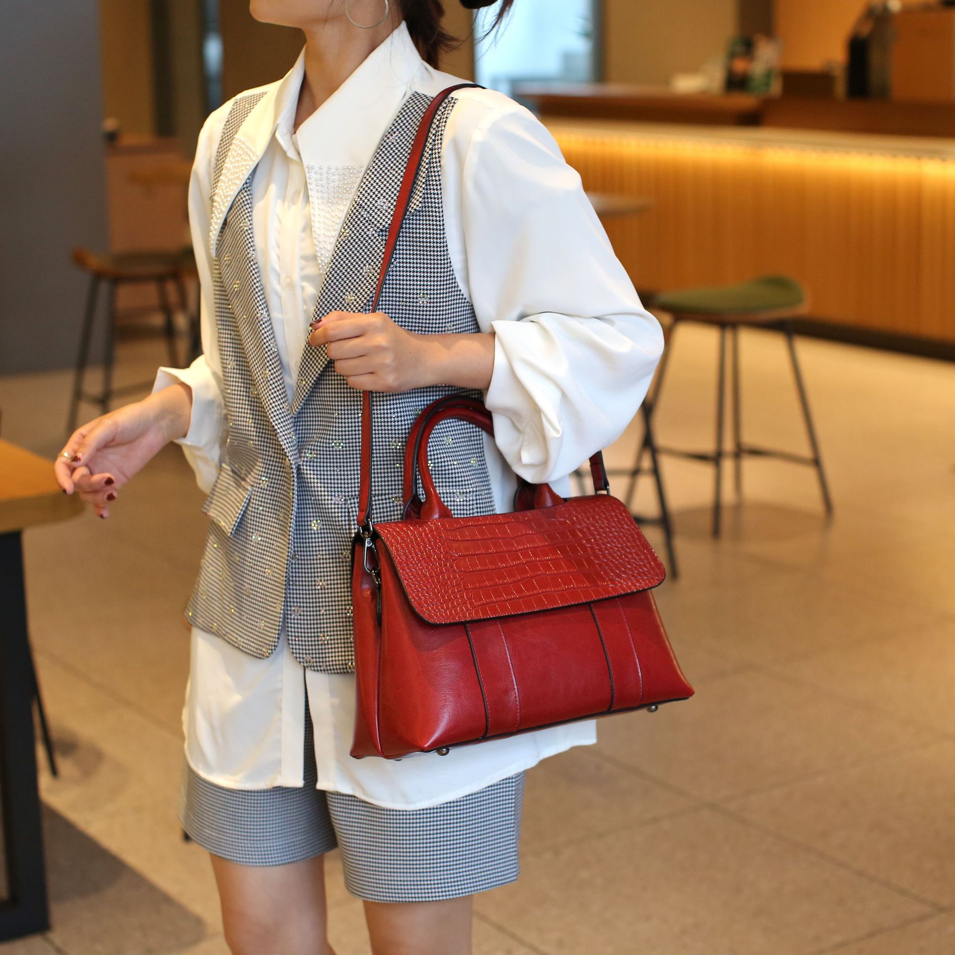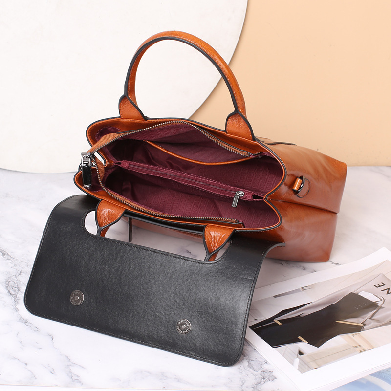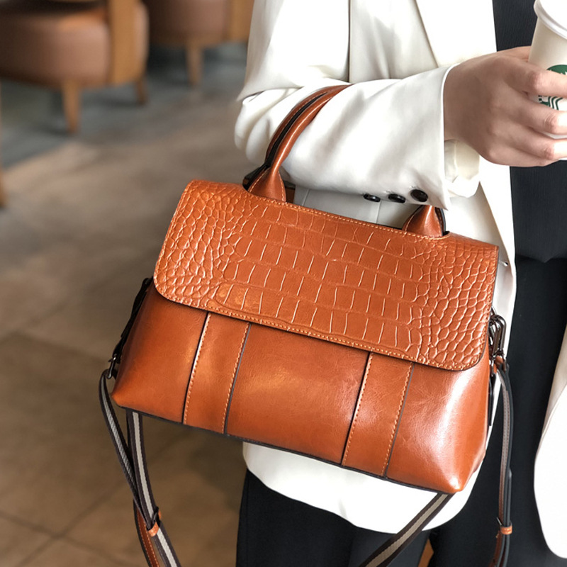 真皮手提包女高级感2022新款时尚单肩包大容量斜挎包妈妈款包包女